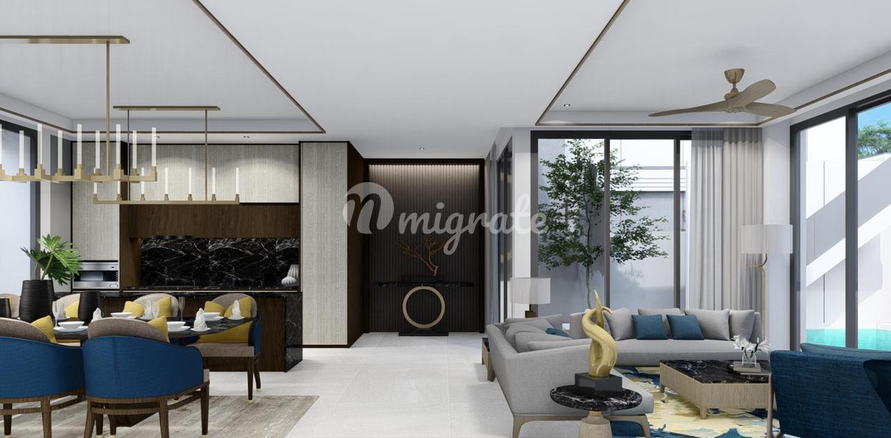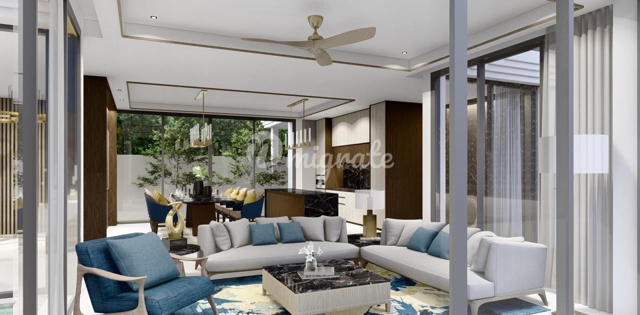 Эта роскошная вилла с пятью изолированными спальнями и шестью ванными комнатами расположена в живописном месте и предлагает комфортное проживание. Каждая спальня полностью изолирована и оснащена собственной гардеробной и ванной комнатой, обеспечивая максимальную приватность и комфорт. На первом этаже находится просторная гостиная, кухня со столовой зоной и две спальни. На втором этаже расположена мастер-спальня с гостиной и гардеробной комнатой, а также две спальни с собственными ванными. Мастер-спальня имеет выход на балкон с великолепным видом на бассейн и сад. Вилла также оборудована террасой у бассейна площадью 33 кв.м., где можно наслаждаться отдыхом, созерцая красивый вид на бассейн. Кроме того, на территории есть двухуровневая беседка, идеально подходящая для отдыха в тени или принятия солнечных ванн. Вилла оформлена в стильном современном дизайне и оборудована всем необходимым для комфортного проживания. Кухня оснащена современной техникой, включая духовку, микроволновую печь, плиту и посудомоечную машину. Полный мебельный пакет можно опционально заказать у застройщика или же оборудовать виллу по собственному дизайн-проекту. Также на территории комплекса расположится клаб-хаус общей площадью более 1.000 кв.м. с ресепшен 24/7, бассейном длиной 25 м, фитнес-центром и кафе. Эта вилла - идеальный выбор для большой семьи. Для тех, кто ищет роскошное и комфортное проживание в окружении природы и в 5 минутах езды от пляжа Банг Тао. На этом пляже находятся самые популярные пляжные клубы Пхукета, такие как Xana Beach Club, Dream Beach Club и Catch Club. Рядом с комплексом расположен гольф-клуб Лагуна, где проводятся турниры международного класса. В 5 минутах езды расположен торговый комплекс Boat Avenue со множеством магазинов, ресторанов и баров, супермаркетом европейских продуктов Villa Market. Современный торговый комплекс Porto De Phuket, с бесчисленным количеством ресторанов, супермаркетом Торs, бутиками и фудкортом, всего в нескольких минутах езды. Шумный тусовочный Патонг расположен в 25 минутах езды от комплекса. Дорога от аэропорта до комплекса займет около 20 минут.