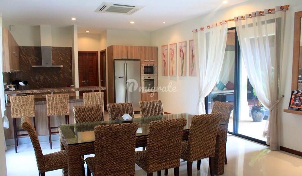 Эта роскошная вилла находится в тихом месте в раойне Rawai, всего в нескольких минутах езды от чудесного пляжа Nai Harn. Дизайн виллы выполнен в современном стиле по индивидуальному проекту. Одноэтажная вилла состоит из 5 спален с индивидуальными ванными комнатами, светлой просторной гостиной, большой столовой с кухней и уютной тайской салой в личном саду. Из каждой спальни виллы есть выход к бассейну. Частный бассейн 58,9 кв.м. оснащен шезлонгами. Все комнаты оснащены кондиционерами и вентиляторами, есть кабельное телевидение и беспроводной Интернет. Кухня оборудована всеми необходимыми бытовыми приборами и посудой, в подсобном помещении есть стиральная машина. По близости находится все самое необходимое для беззаботного отдыха – супермаркеты, магазины, рестораны и кафе.