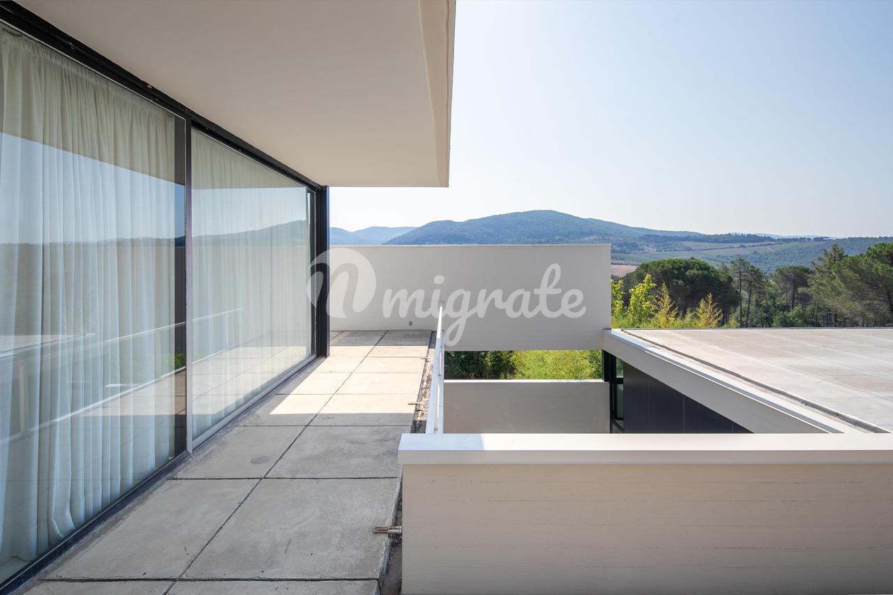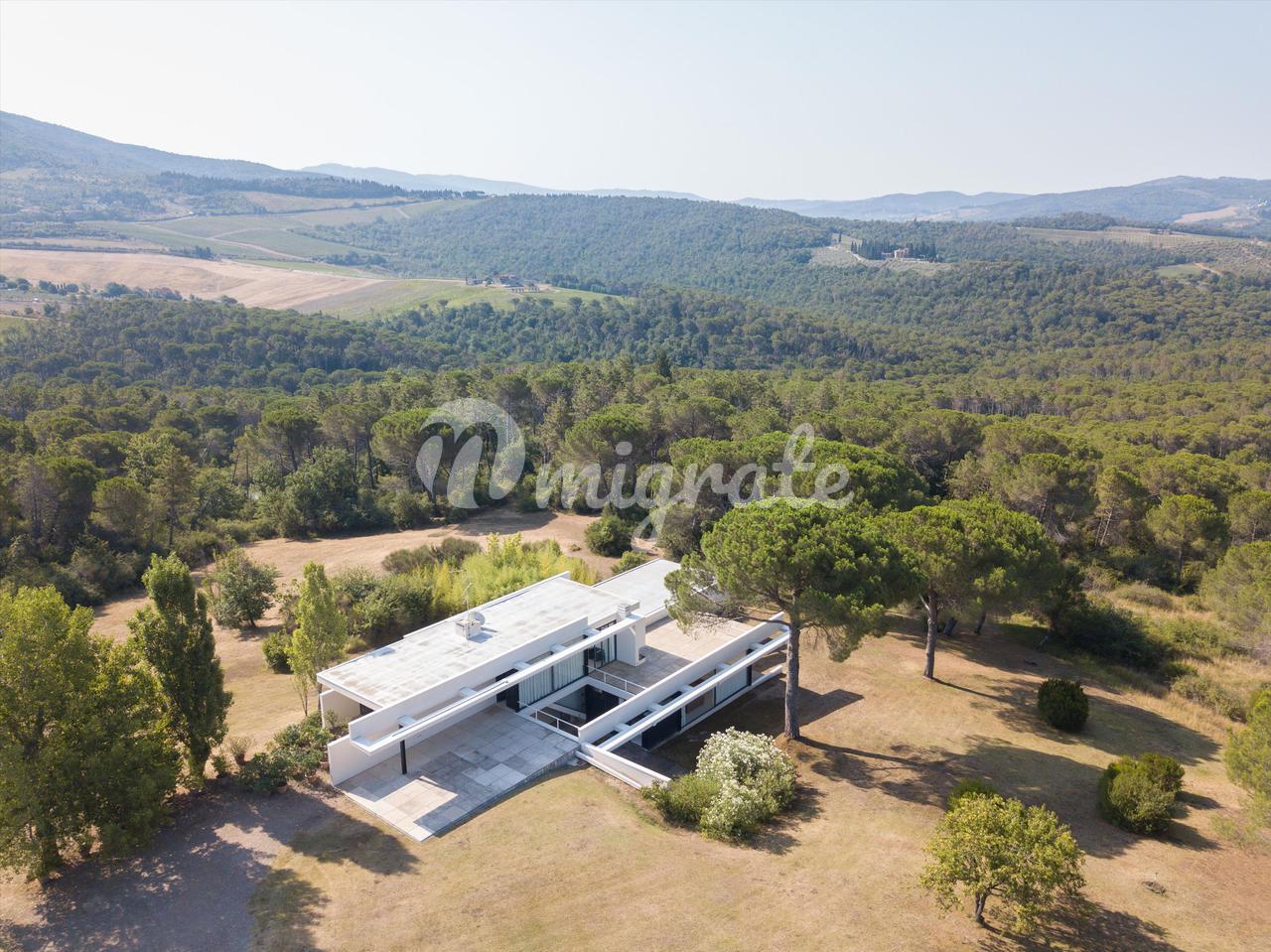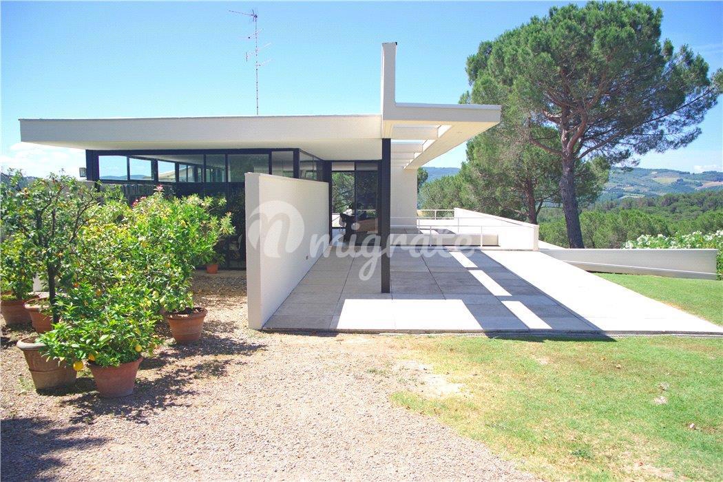 Спроектирован и построен Роберто Монсани, известным архитектором и дизайнером того времени знаменитых тосканских вилл, архив которого был запрошен архитектурным факультетом Флоренции. Роберто Монсани также был дизайнером интерьеров некоторых магазинов Salvatore Ferragamo. Этот красивый дом, расположенный в доминирующем положении на холмах Кьянти недалеко от Греве, упоминается в нескольких архитектурных изданиях и был провозглашен «редким примером почти нереального скульптурного совершенства». Вдохновленный школой Баухаус и модернистским движением, этот отель представляет собой серию светлых и открытых пространств; некоторые разделены встроенными мебельными отделениями с большими стеклянными «стенами», выходящими на сельскую местность, как если бы они были продолжением жилого помещения. Часть мебели разработана одним и тем же архитектором. Это необычное, яркое здание органично вписывается в склон холма, из него открывается вид на сосновый лес, окруженный травянистыми склонами и лужайками. Существует озеро с правом на воду для орошения, которого нет в собственности, а право на использование родниковой воды предоставляется при покупке. Также есть водопровод.