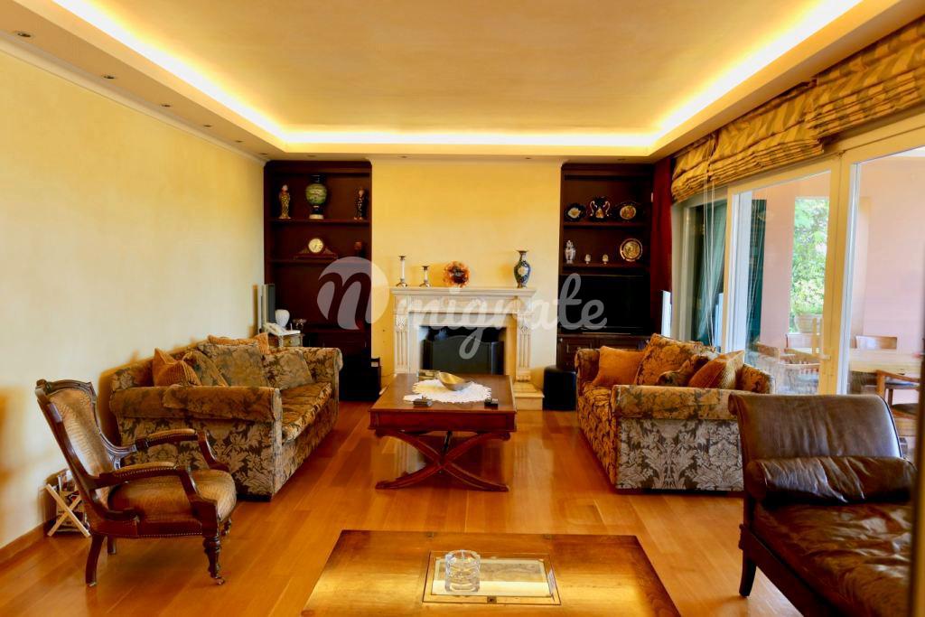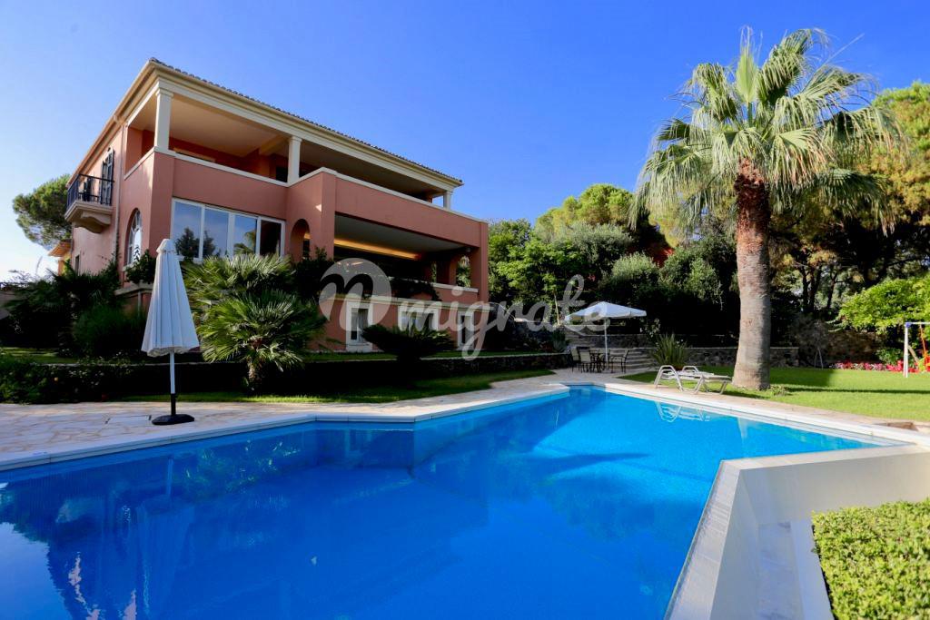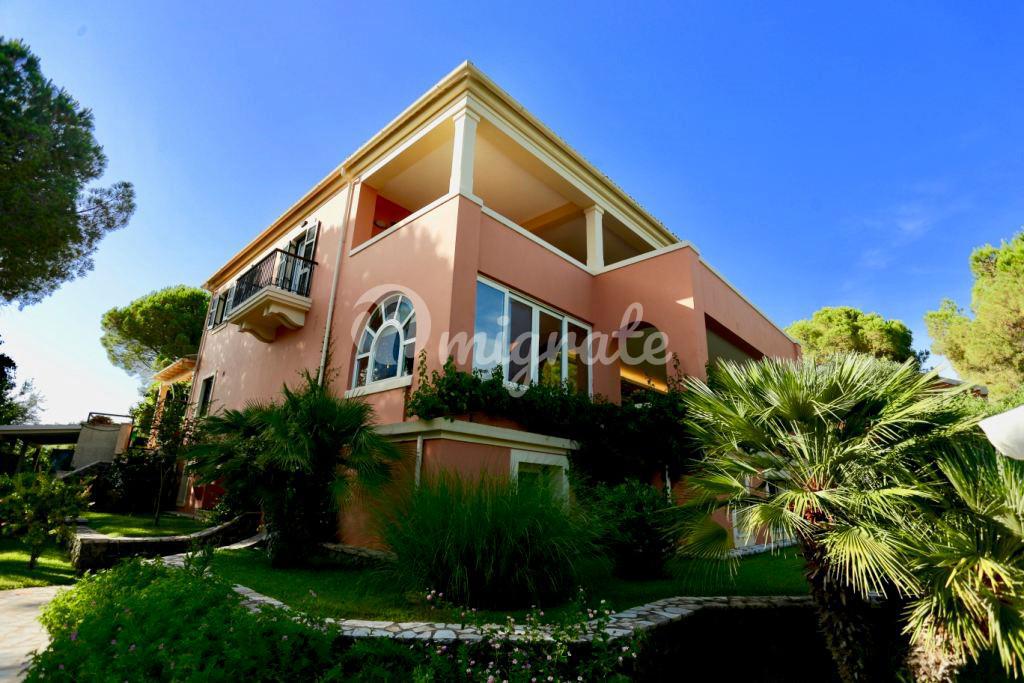 Вилла расположена на острове Корфу, всего в нескольких шагах от кристально голубых Ионических вод и в пяти минутах езды от пристани Гувия. На вилле разбиты роскошные ландшафтные сады, расположен бассейн с зоной отдыха и шезлонгами, терраса, зона барбекю. Вилла включает основную спальню с ванной комнатой, сауной, джакузи, гардеробной, 5 спален с просторными террасами и 7 ванных комнат.