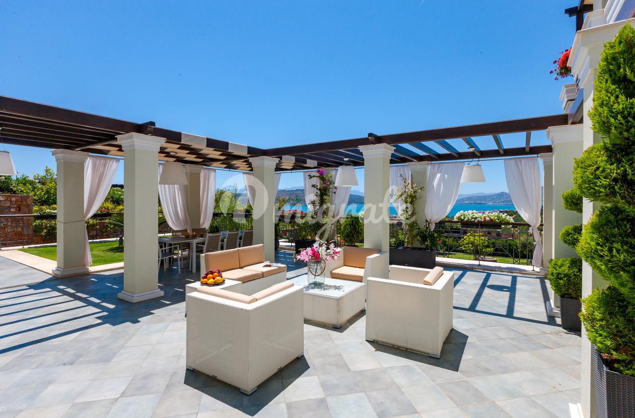 Современная вилла на берегу Средиземного моря, в нескольких шагах от собственного пляжа, с великолепными видами на морской залив, большим садом и панорамным бассейном. Это лучший выбор для тех, кто ищет место для жизни и отдыха у теплого моря, вдали от суеты и шума больших городов. На нижнем этаже светлой и просторной виллы расположена гостиная, совмещенная со столовой и кухней, и роскошная терраса, с которой открывается великолепный вид на залив Мирабелло. Также на нижнем этаже находятся 4 спальни (каждая с панорамным видом на море, ванной комнатой и гардеробной) и гостиная со столовой и кухней. Хозяйская спальня с террасой, джакузи и просторной зоной для отдыха расположена на втором этаже. В саду оборудован панорамный бассейн, окруженный просторной зоной для отдыха с летней кухней и обеденной зоной. В доме есть прачечная, кладовые, паркинг.