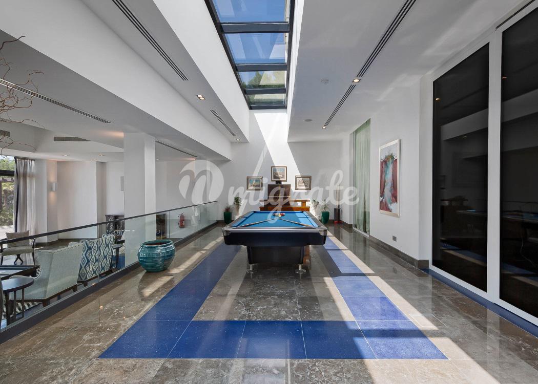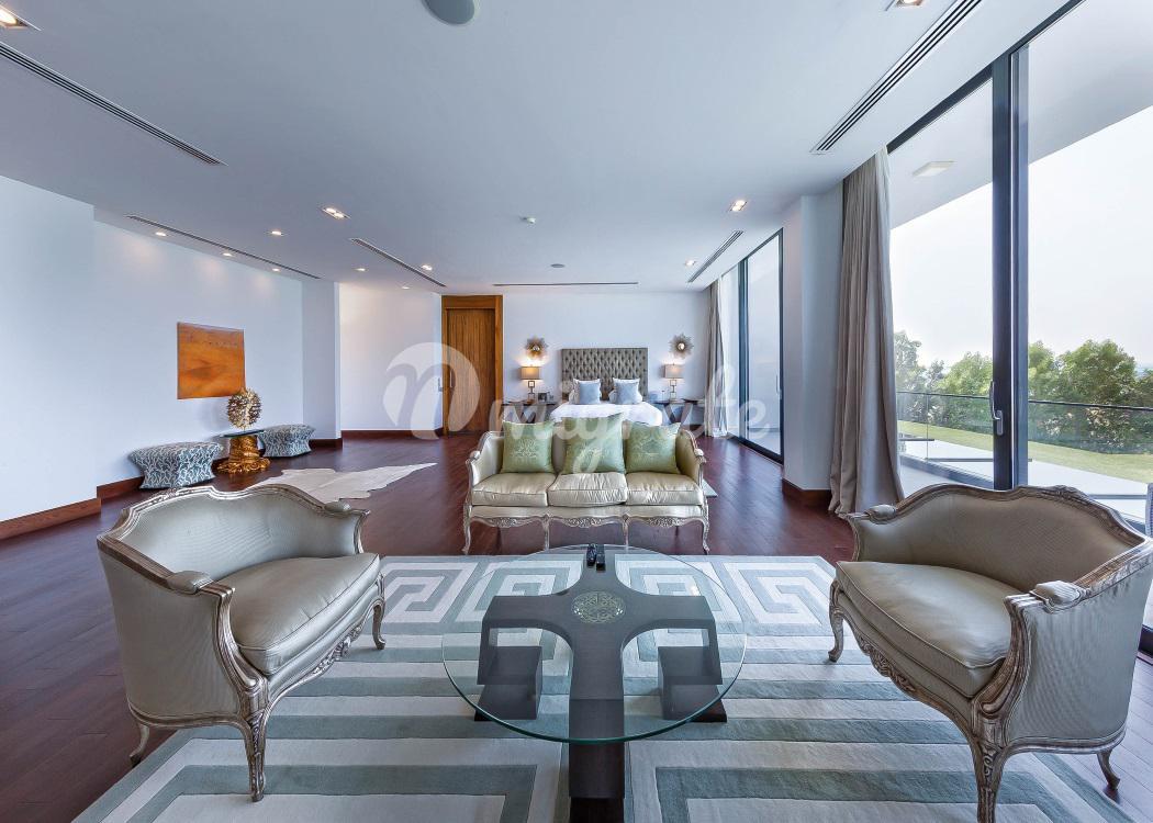 Вилла включает просторные и светлые гостиные и столовые с выходами к бассейну, профессионально оборудованную кухню, 6 роскошных спален с ванными комнатами, кабинет, лаунж, домашний кинотеатр, полностью оборудованный тренажерный зал, сад и частный пляж.