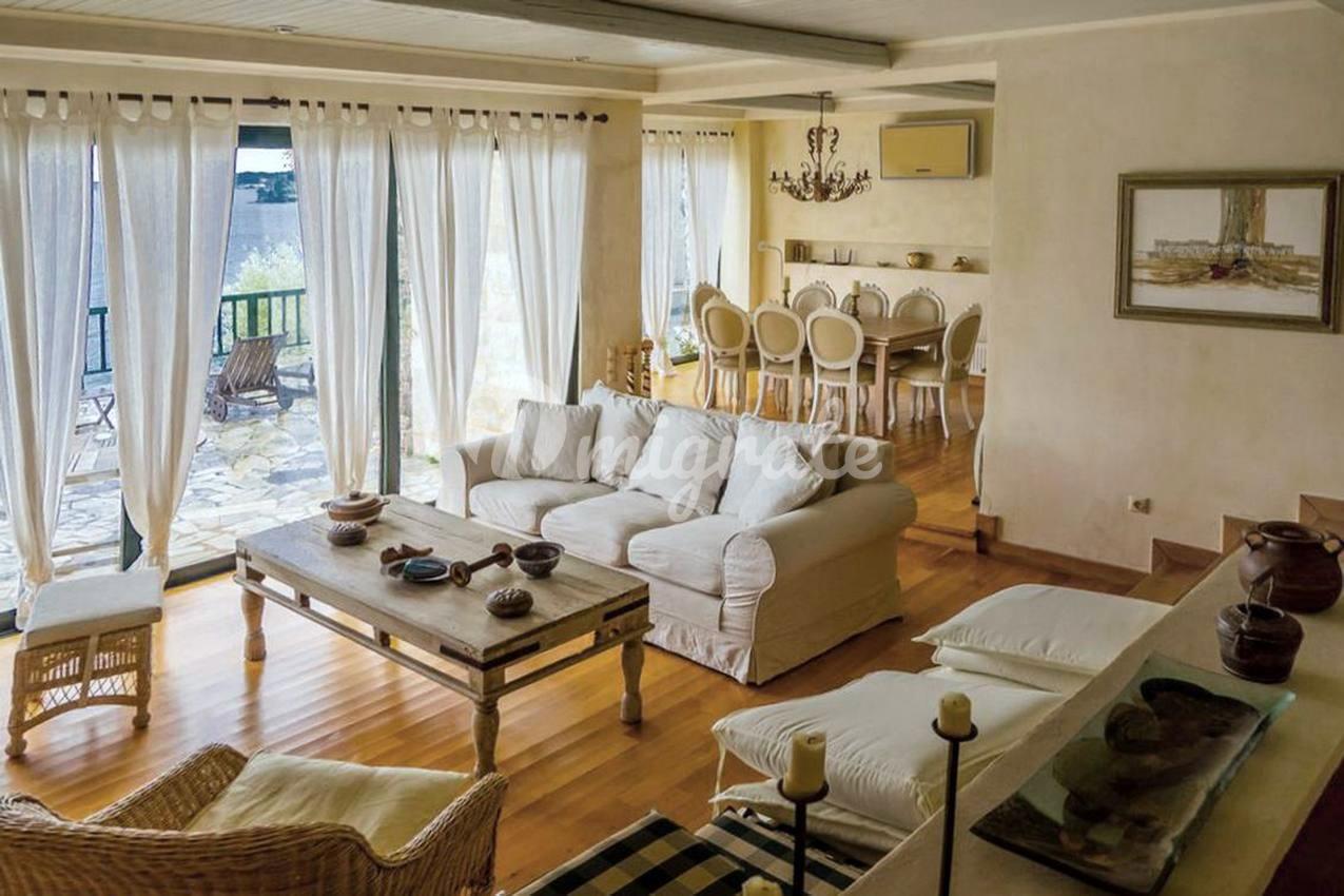 Вилла расположена в престижном пригороде города Корфу - Коммено, всего в 10 минутах езды от международного аэропорта и в непосредственной близости от пристани Гувия. На участке находятся два дома с 3 спальнями площадью 250 и 300 кв. м, бассейн, а также две квартиры на другом уровне, которые могут быть использованы, как апартаменты для персонала.