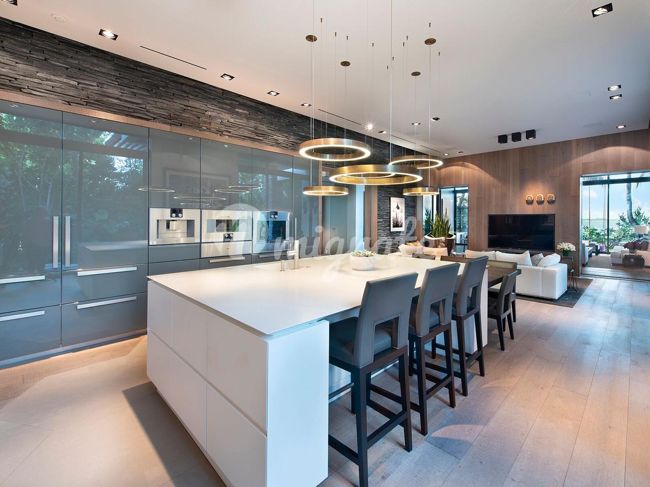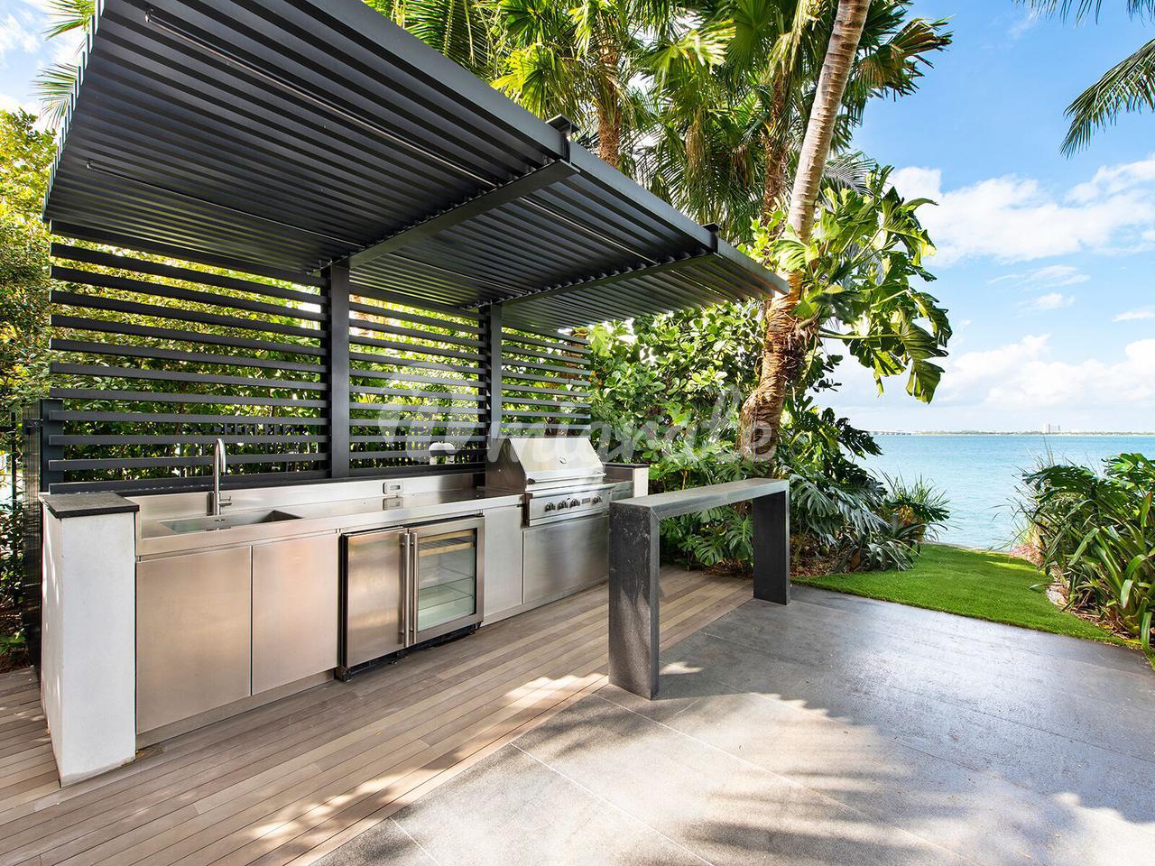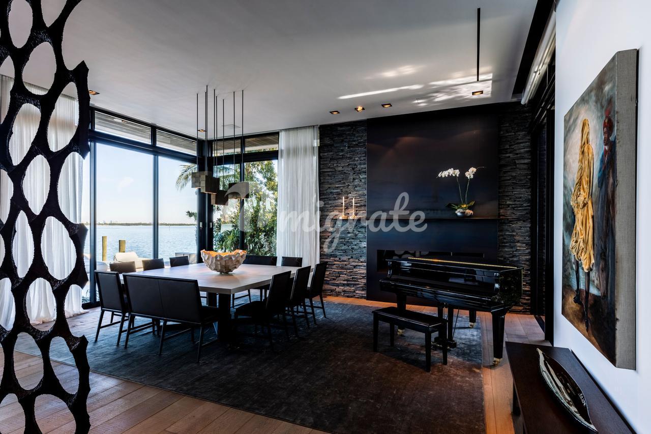 Роскошная вилла на Венецианских островах представляет собой шедевр современного искусства. Вилла расположена на самом берегу залива Бискейн и включает прямой выход к океану с собственного причала. Вилла состоит из 3 этажей. На крыше расположена просторная терраса с летней кухней. Вилла включает бассейн, гараж на 2 автомобиля, винный погреб.