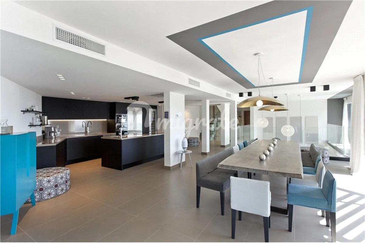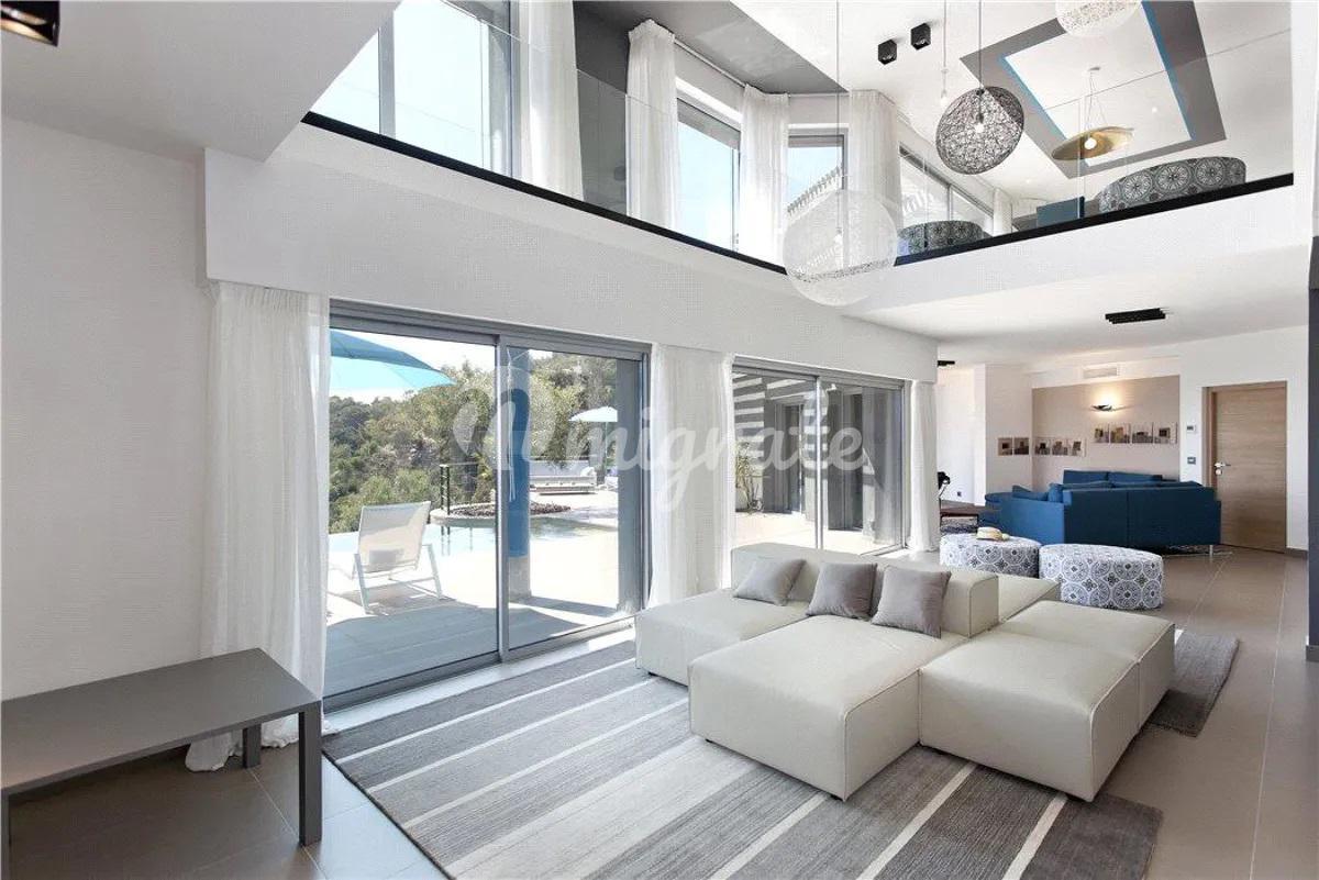 Вилла состоит из гостиной, полностью оборудованной кухни с видом на море, летней гостиной, ТВ-зала и 5 спален с собственными ванными комнатами. Оборудована лифтом.