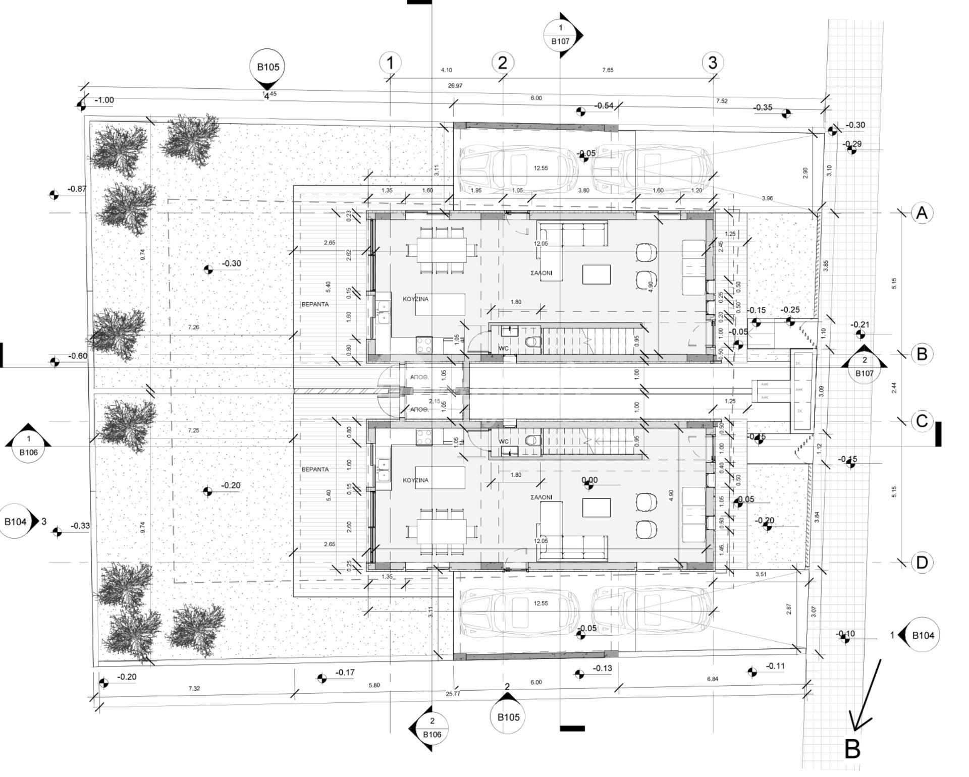 Две отдельные резиденции с тремя спальнями расположены в очень тихом жилом районе, подходящем для семейного отдыха. Расстояние до международного аэропорта Ларнаки составляет менее 6 км, что означает 5-6 минут езды на автомобиле. Основные преимущества: -Рядом с аэропортом и главными магистралями Никосия – Ларнака и Лимассол – Ларнака. -Недалеко от пляжа и Соленого озера. -Первый этаж состоит из двух просторных жилых зон. - На втором этаже расположены главная спальня с ванной комнатой, две спальни, зона для стиральной машины и веранда с видом на задний двор. -будет установлено фотоэлектрическое оборудование. Резиденция 01 или 02 Площадь участка: 264 м2 Внутренние помещения: 139 м2 Крытые веранды: 13 м2 Гараж: 19,5 м2 Машинное отделение: 3 м2 Энергоэффективность: A Сдача: МАРТ 2025
