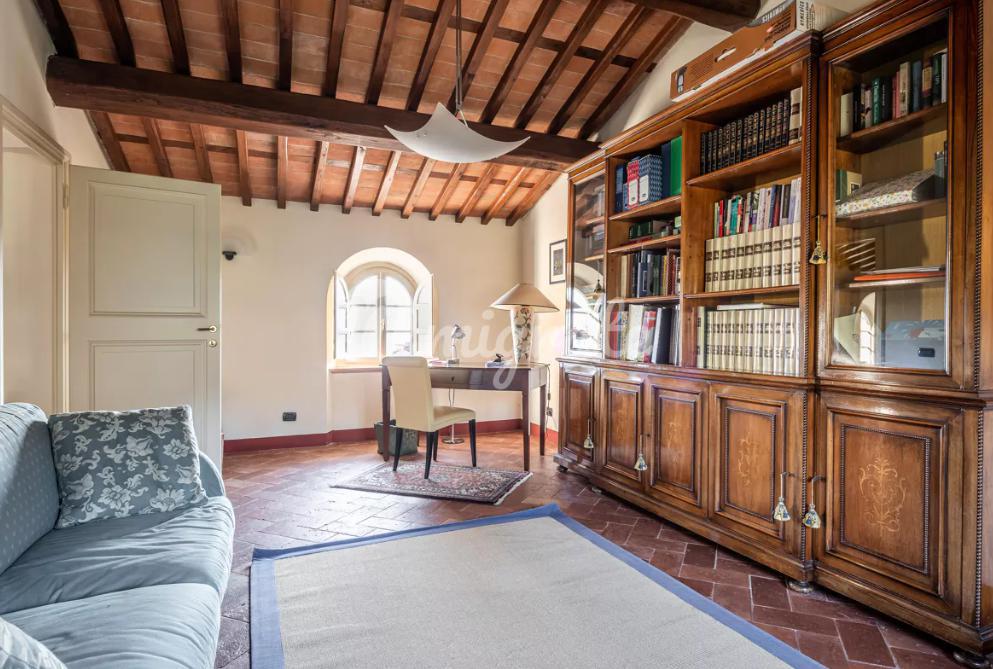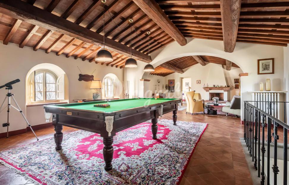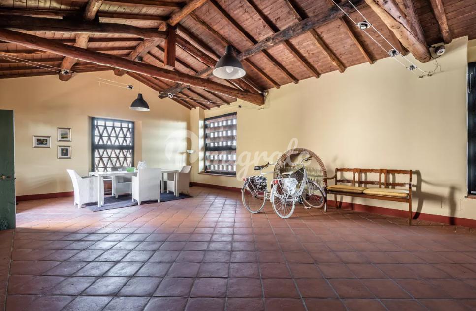 Он состоит из внушительной и элегантной каменной виллы площадью около 350 кв. м и красивой каменной пристройки (отдельно стоящей) площадью около 125 кв.м., а также земельный участок около 69 000 кв.м., часть из которых представляет собой ухоженный сад, образующий красивую естественную террасу с видом на долину, а часть засажена оливковыми рощами с ,примерно, 900 растениями. Вилла, датируемая XIV веком и построенная одной из самых влиятельных семей Лукки, была полностью отремонтирована в характерном тосканском стиле с каменными стенами, потолками с деревянными балками и терракотовыми полами. Возвышенный на трех этажах, он состоит на первом этаже из входа в большую гостиную с камином, столовую, современную кухню, кладовую, кладовую и ванную комнату. На первом этаже главная спальня с ванной комнатой и гардеробом, еще две спальни с двуспальными кроватями, каждая с ванной комнатой и кладовой, а на втором этаже просторная гостиная с камином, спальня с двуспальной кроватью, ванная комната и кабинет.