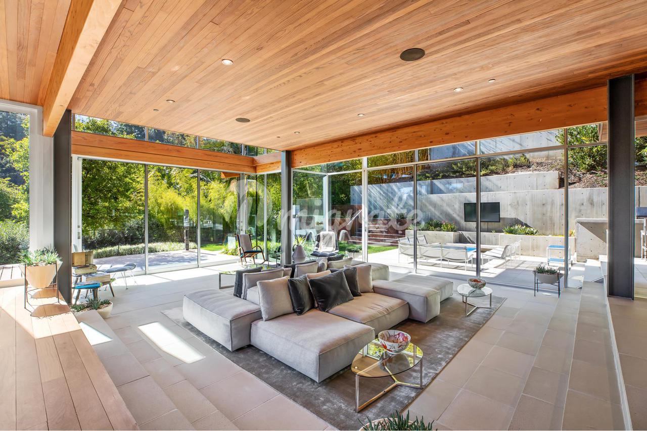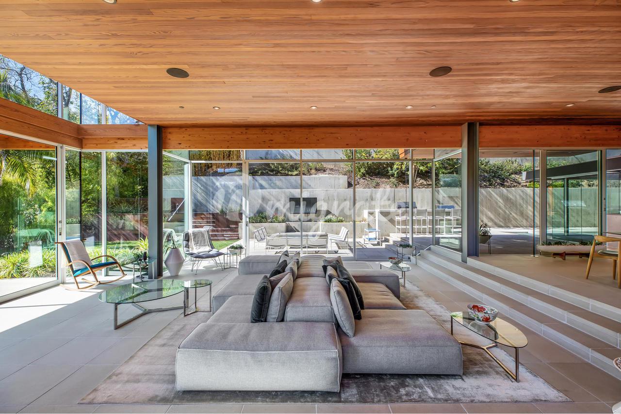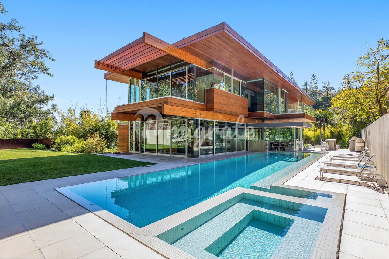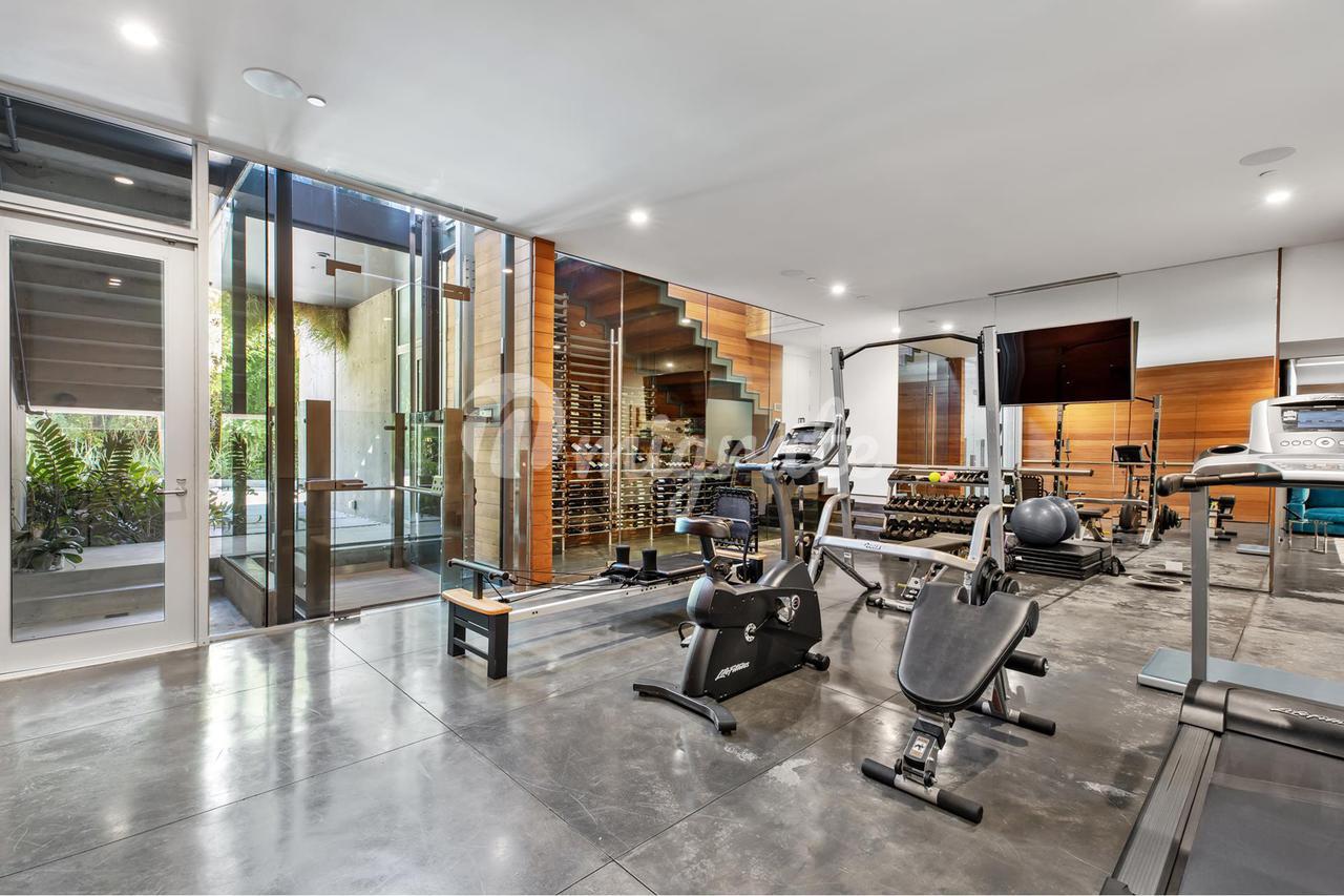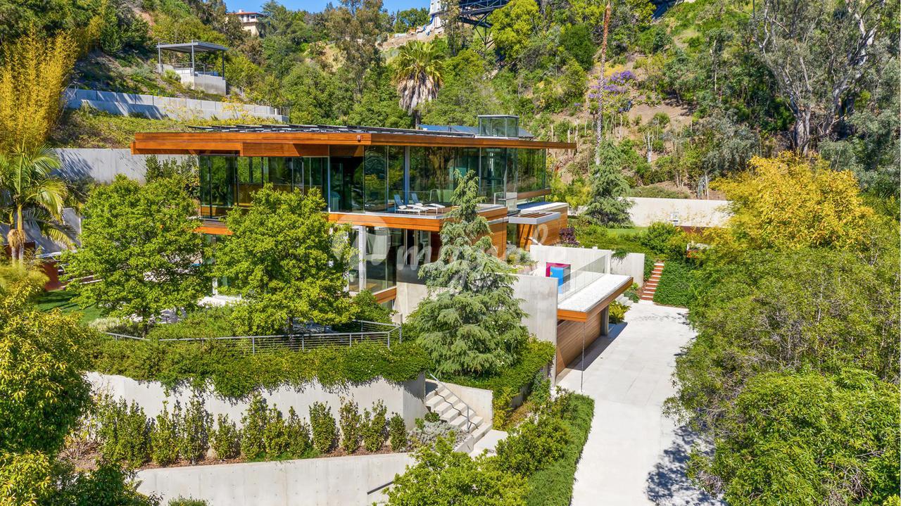 Вилла, спроектированная одним из самых великих калифорнийских архитекторов – Рейем Каппе, расположена на закрытой территории в Беверли-Хиллз. Вилла была построена в 2017 году и состоит из основного дома, гостевого дома и домика у бассейна. Основном дом включает гостиную, столовую, полностью оснащенную кухню, кабинет, кинотеатр, тренажерный зал и винный погреб.