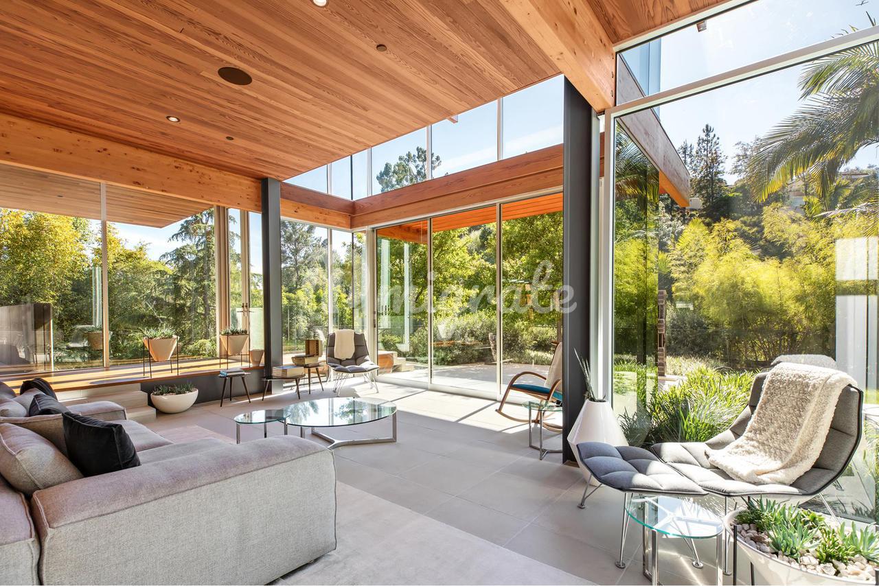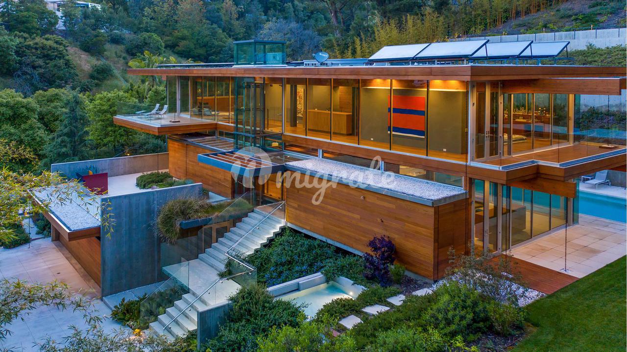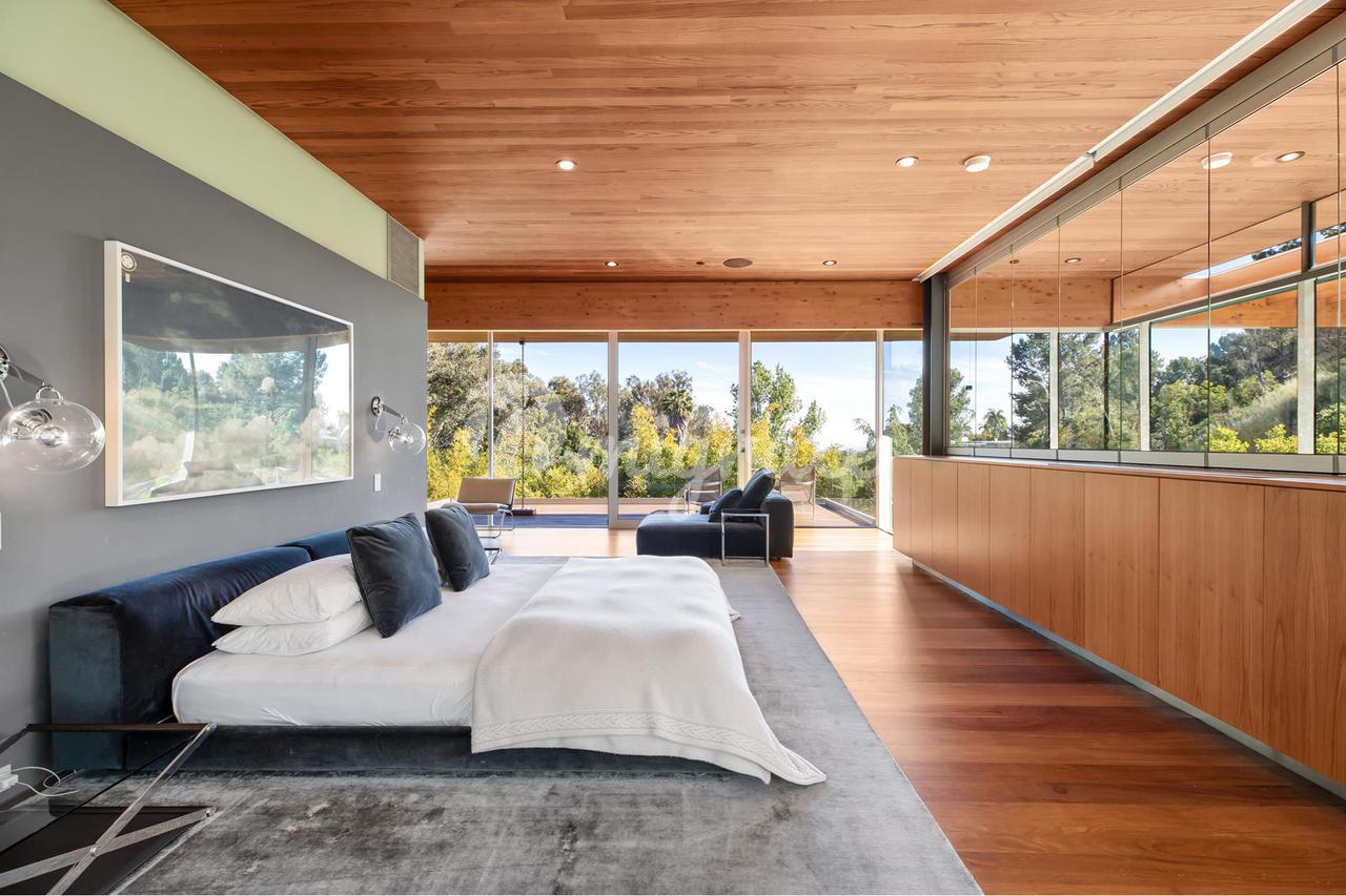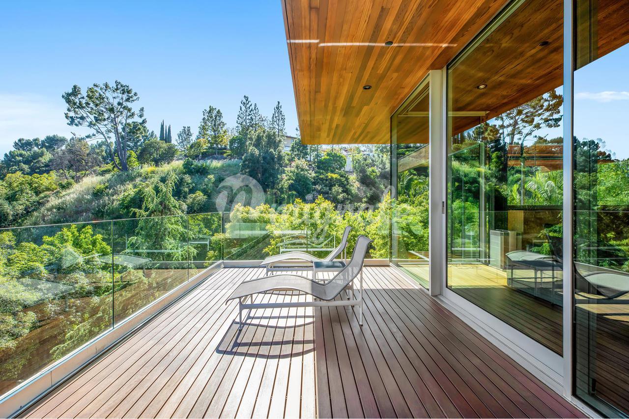 Вилла, спроектированная одним из самых великих калифорнийских архитекторов – Рейем Каппе, расположена на закрытой территории в Беверли-Хиллз. Вилла была построена в 2017 году и состоит из основного дома, гостевого дома и домика у бассейна. Основном дом включает гостиную, столовую, полностью оснащенную кухню, кабинет, кинотеатр, тренажерный зал и винный погреб.