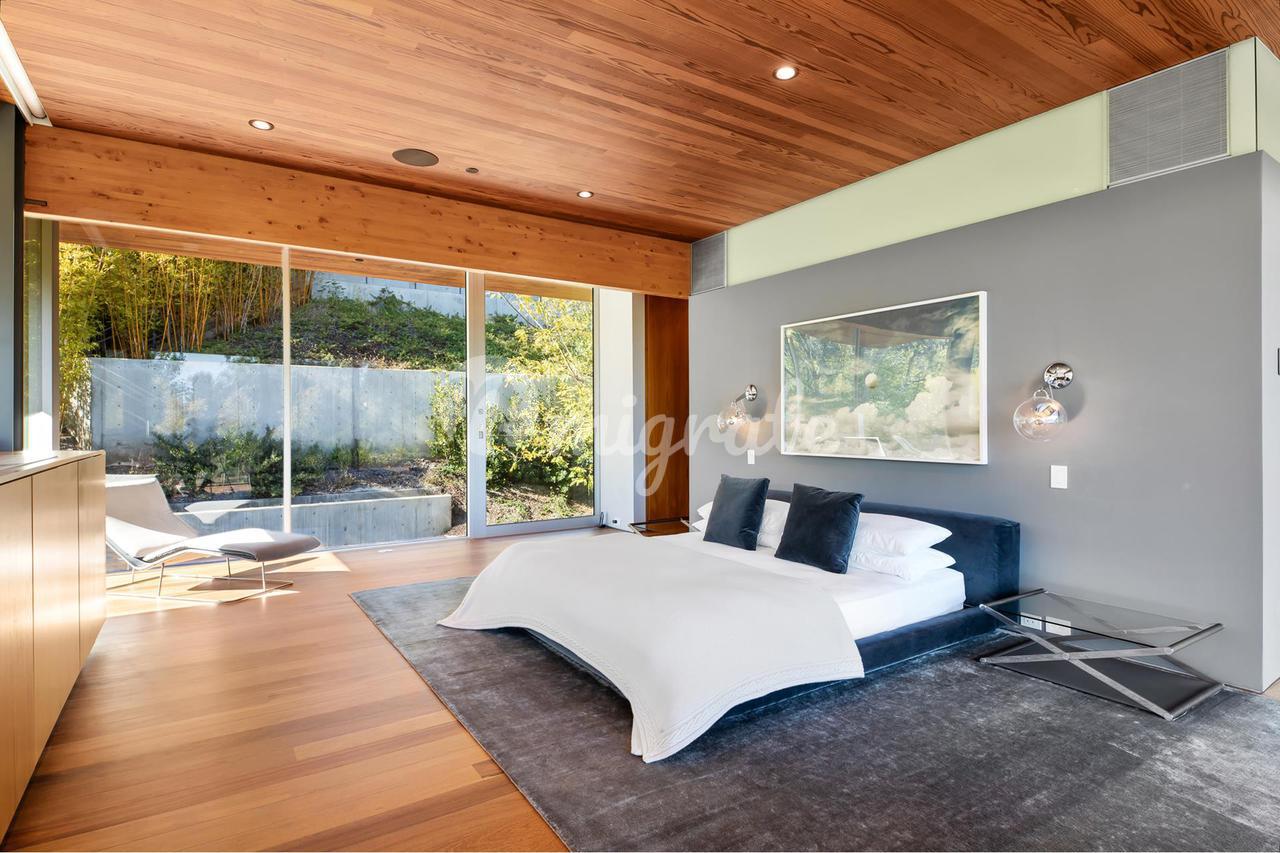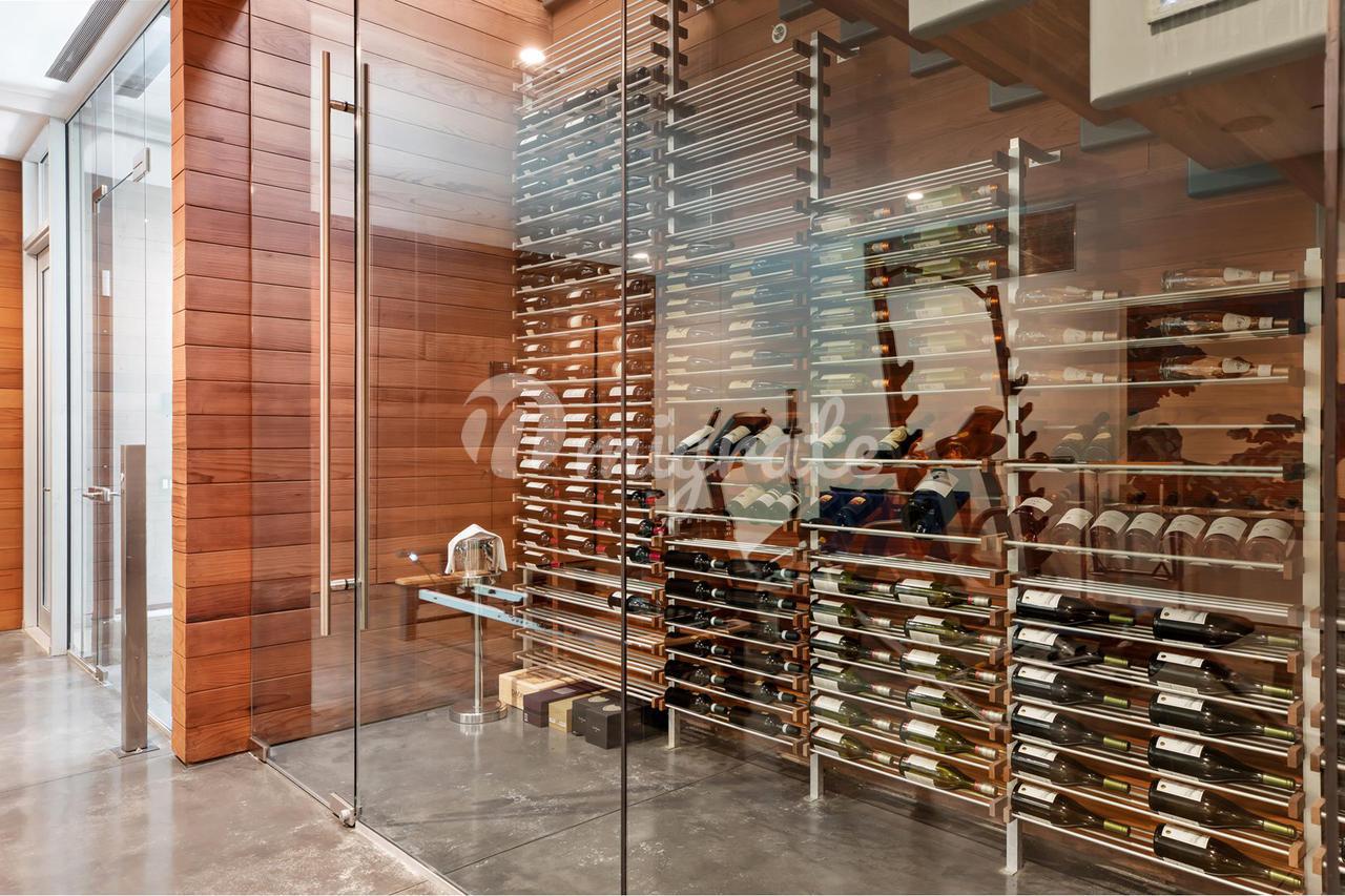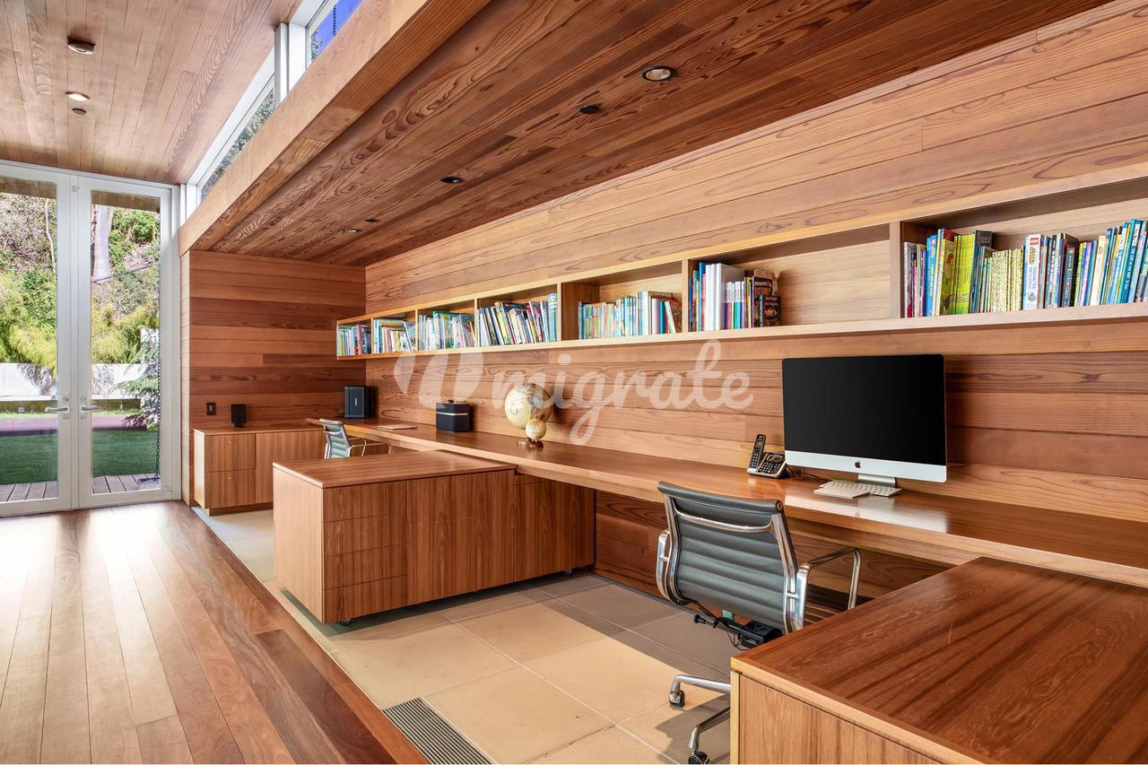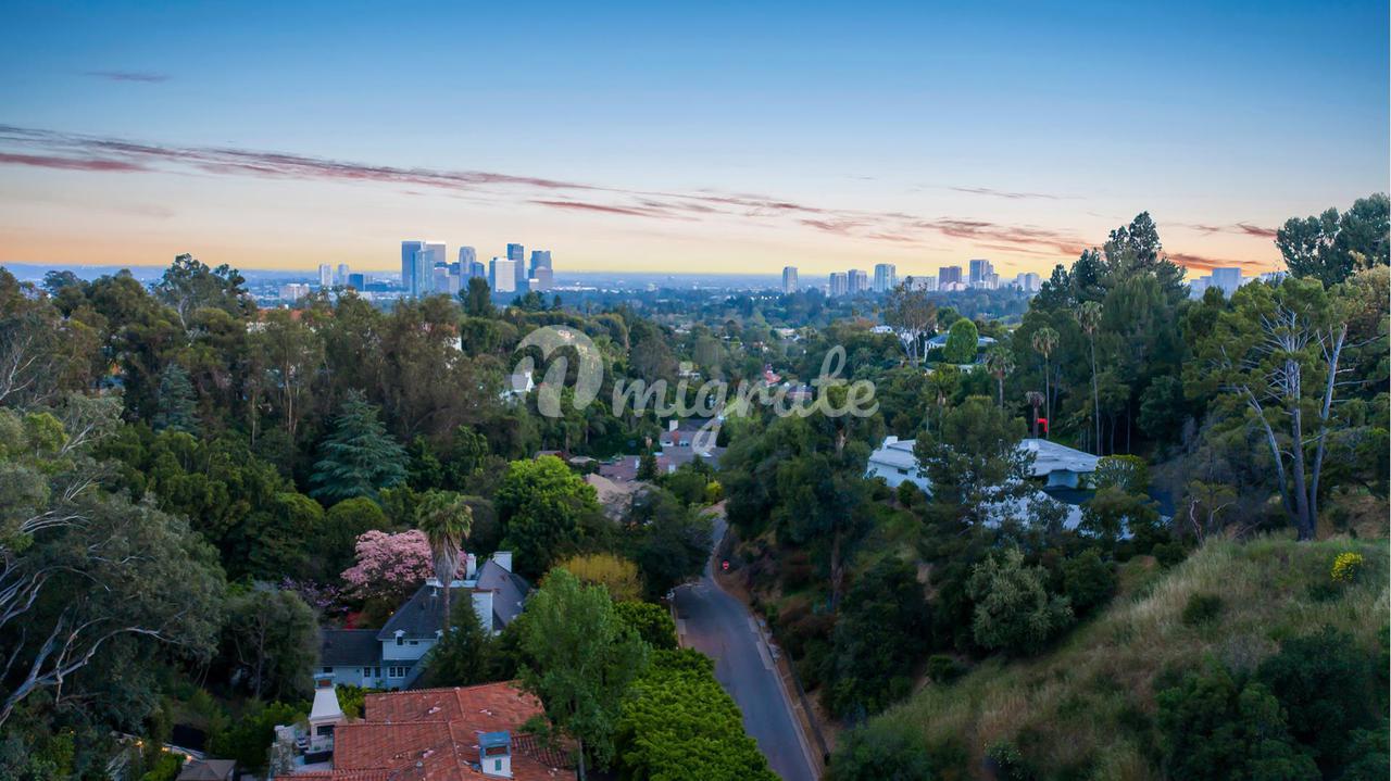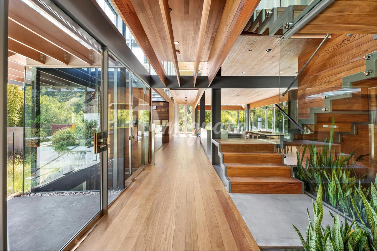 Вилла, спроектированная одним из самых великих калифорнийских архитекторов – Рейем Каппе, расположена на закрытой территории в Беверли-Хиллз. Вилла была построена в 2017 году и состоит из основного дома, гостевого дома и домика у бассейна. Основном дом включает гостиную, столовую, полностью оснащенную кухню, кабинет, кинотеатр, тренажерный зал и винный погреб.