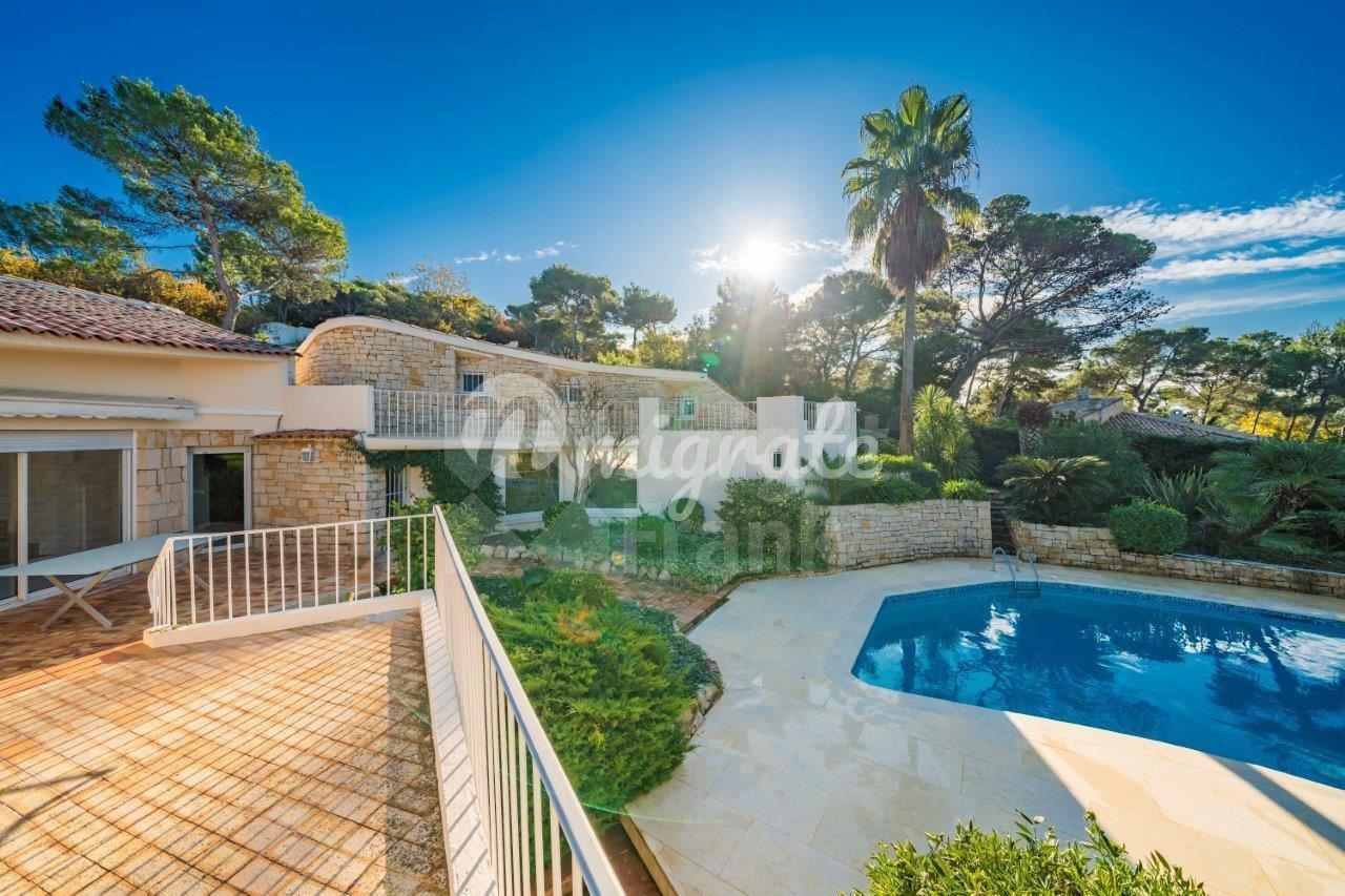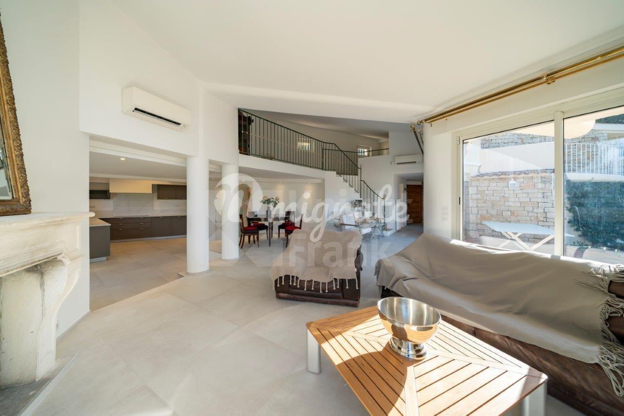 Вилла расположена в престижном жилом районе в Мужен. Вилла полностью отремонтирована. Вилла включает просторную гостиную, кухню открытого плана, 3 спальни с ванными комнатами, кабинет, а также отдельные апартаменты с гостиной, кухней и 1 спальней. В превосходном саду находится бассейн и домик у бассейна Техническое оснащение включает кондиционирование, систему орошения, уличное освещение, сигнализацию и электрические ворота.