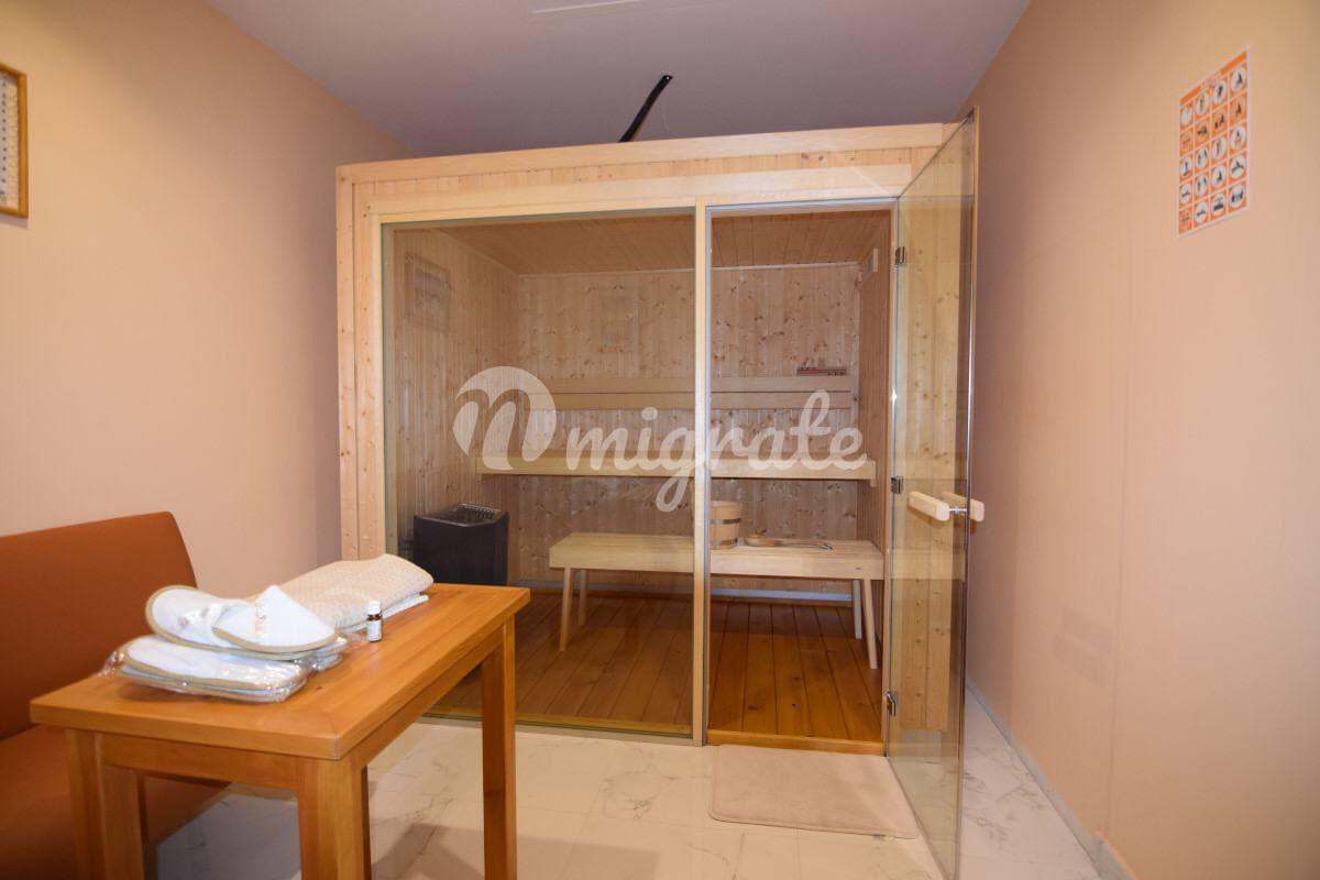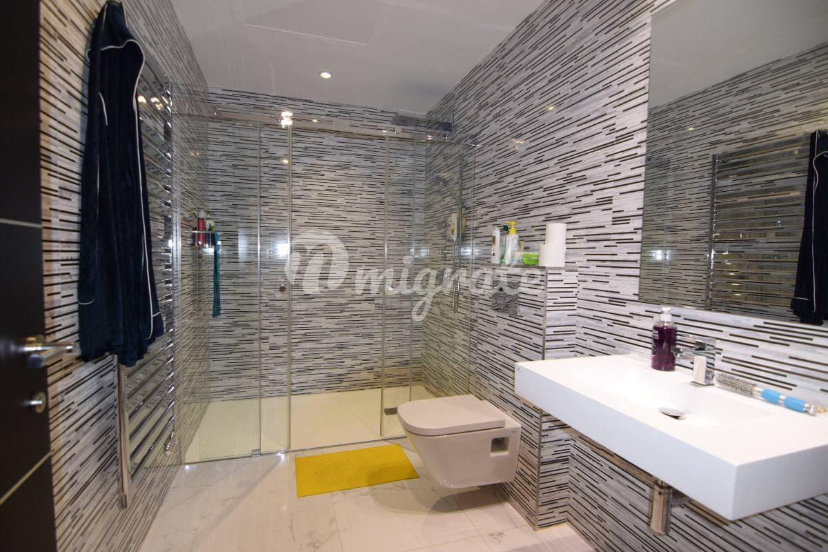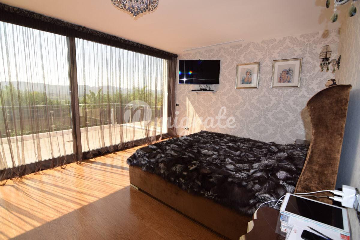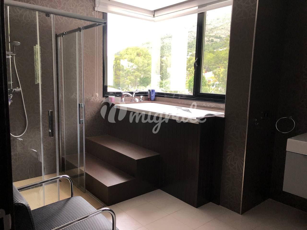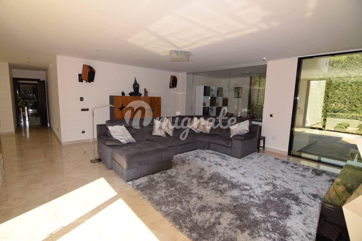 На вилле имеется лифт, ведущий из гаража и подвала на 1, 2 этаж, а также на эксплуатируемую крышу. Вилла оборудована системой «умный дом», солнечными панелями, системой кондиционирования, подогревом полов и встроенным пылесосом во всем доме. Панорамные тонированные окна открывают великолепный вид на горы и долину.