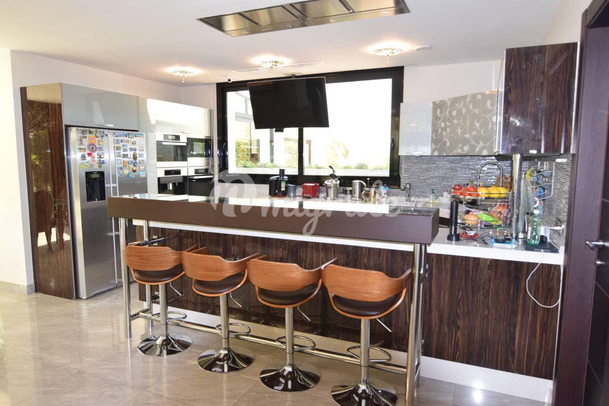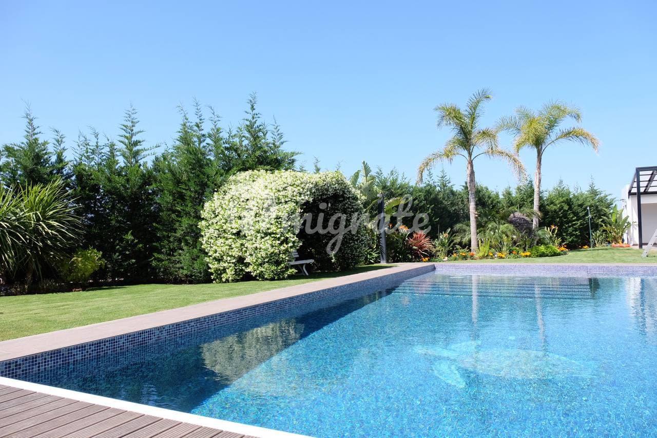 На участке площадью 3000 кв. м расположен большой красивый сад, просторный бассейн с подогревом, барбекю с зоной отдыха, собственная скважина, гараж на 2 автомобиля и крытый паркинг на 2 автомобиля.