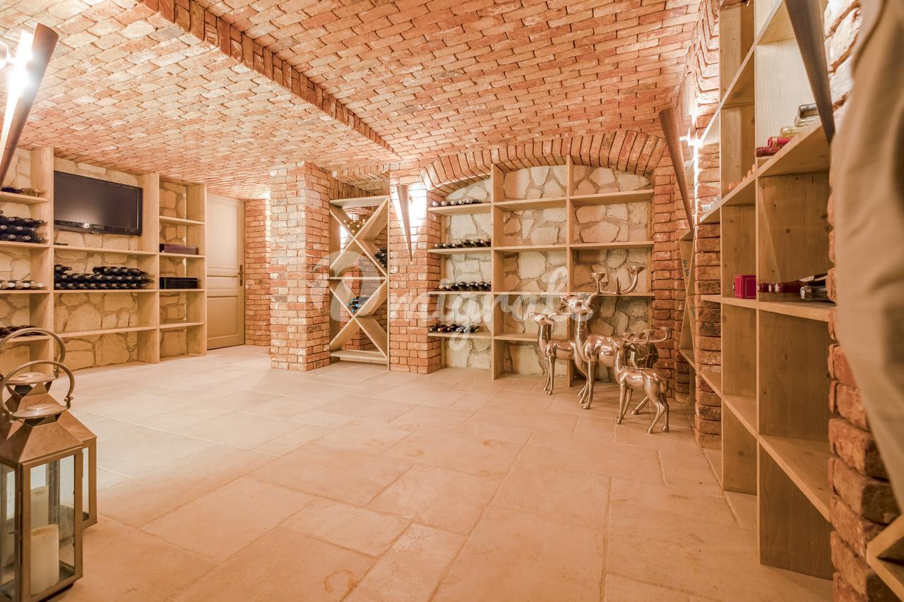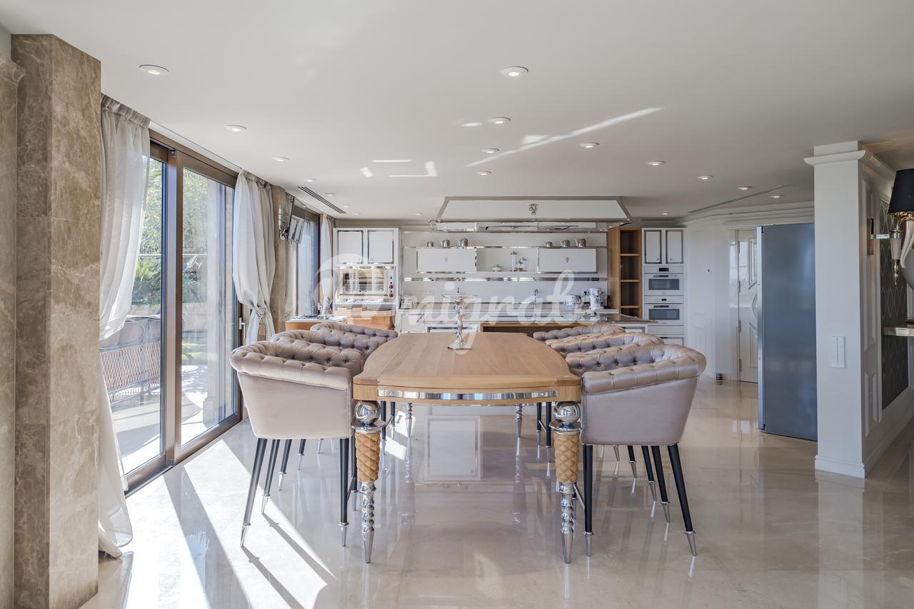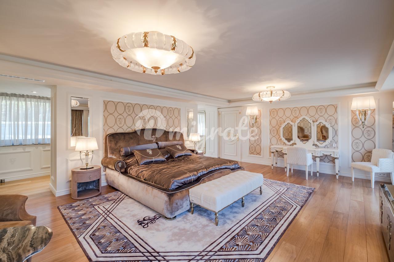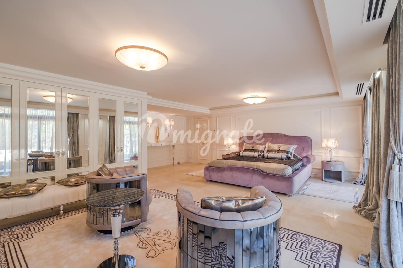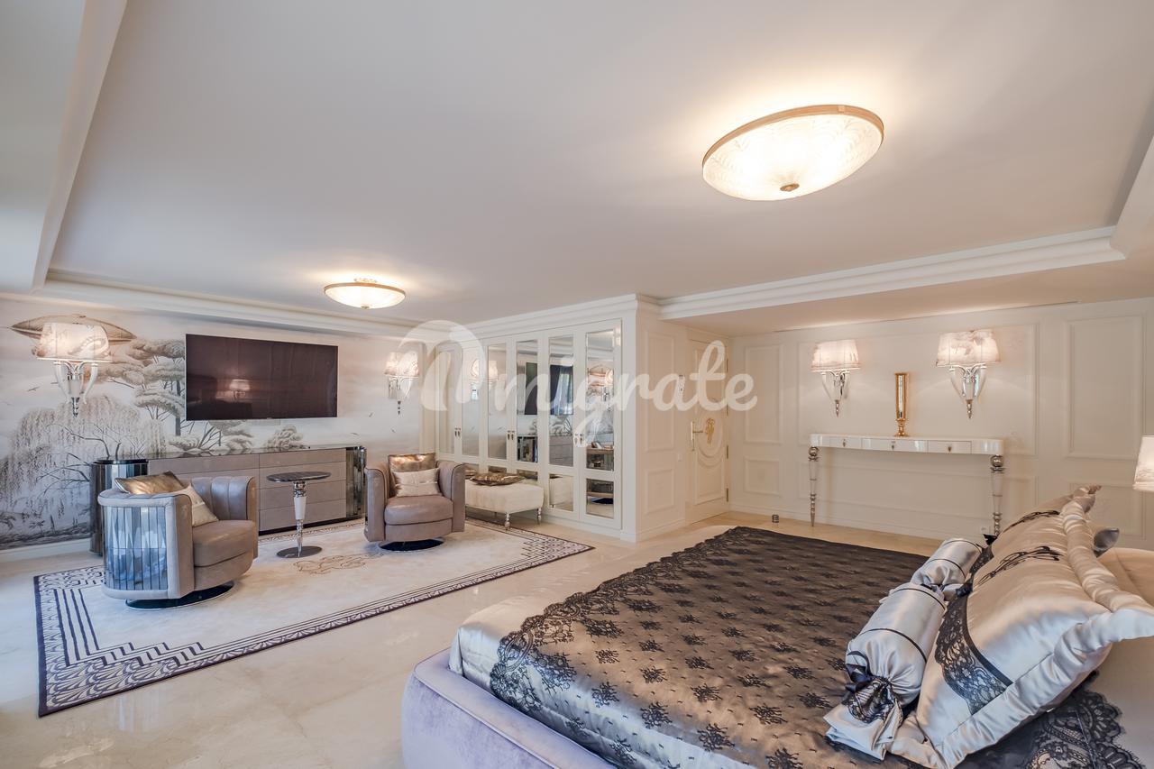 Главный дом с открытыми планировками включает: гостиную, кухню-столовую, основную спальню и 7 дополнительных гостевых спален, винный погреб, кинотеатр, спа, подземный гараж.