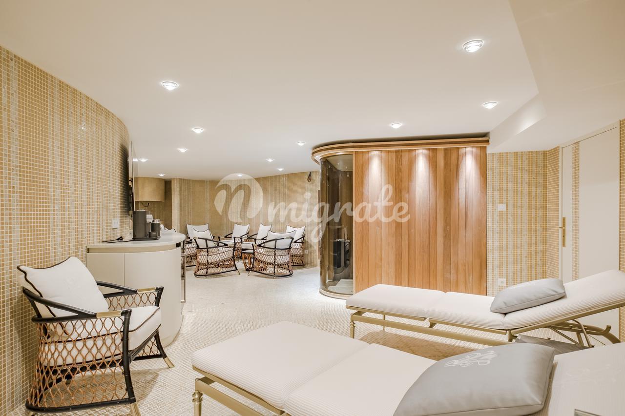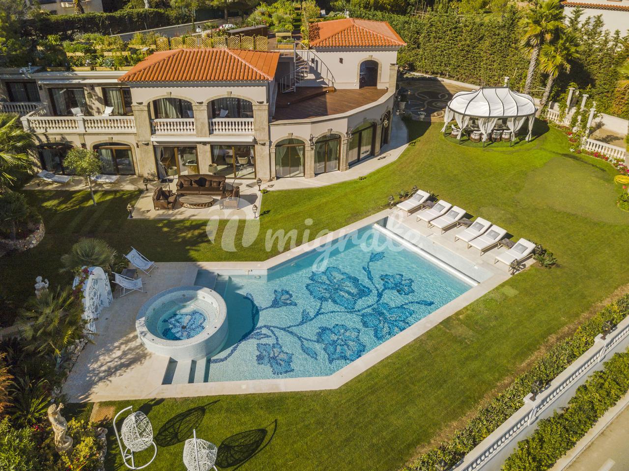 На территории виллы имеется сад с экзотическими растениями, а также скульптуры, фонтаны и каскады. Также на территории находится открытый бассейн с подогревом и джакузи.