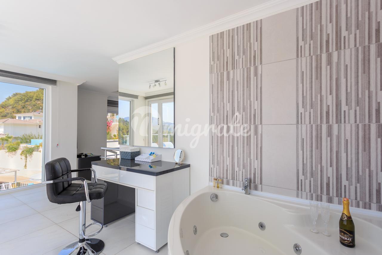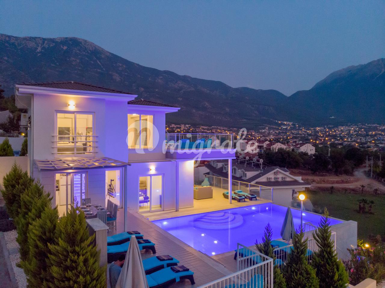 Вилла с панорамным видом на горы - 4 спальни и 1 гостиная и кухня. На территории виллы: большая терраса у бассейна, 3 ванные комнаты, большой пейзажный бассейн, гардероб на первом этаже, джакузи в главной спальне, частный сад, автостоянка. Инфраструктура: 250 метров до главной дороги и местного транспорта, 6 км. до Олюдениза (голубая лагуна), 2 км. до центра Хисароню, 10 км. до центра Фетхие. Вся мебель и кухонное оборудование включены в стоимость.