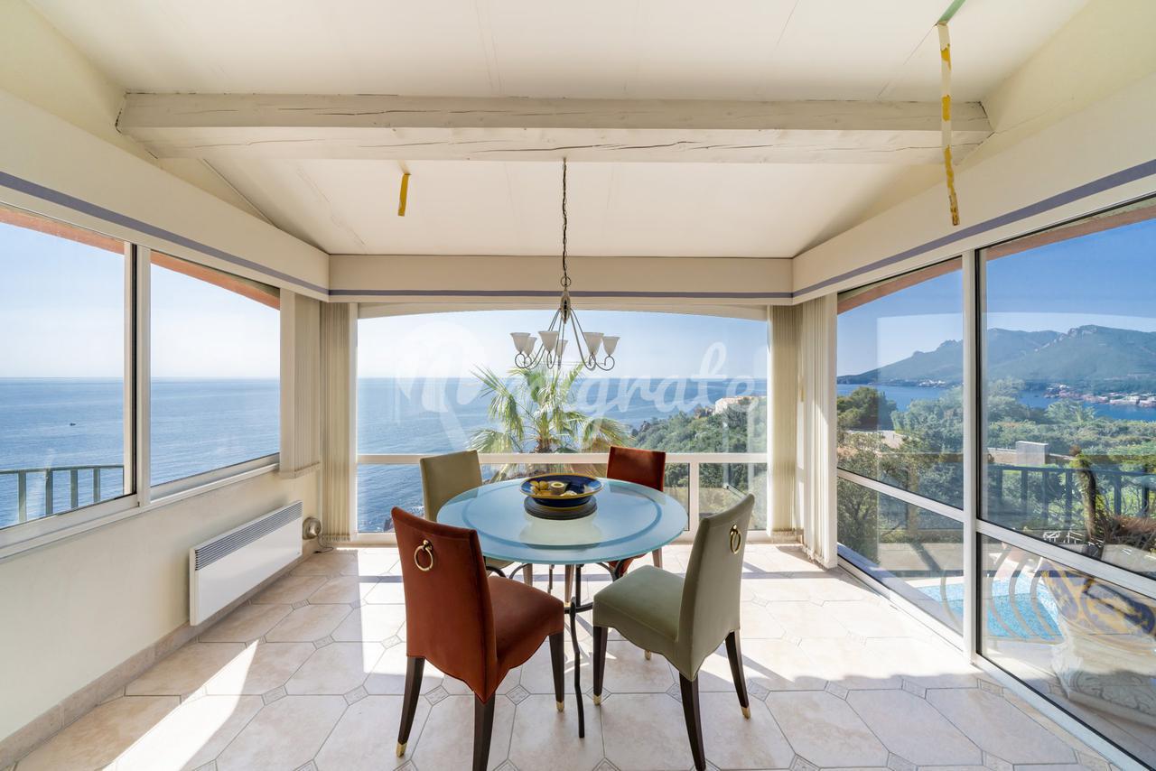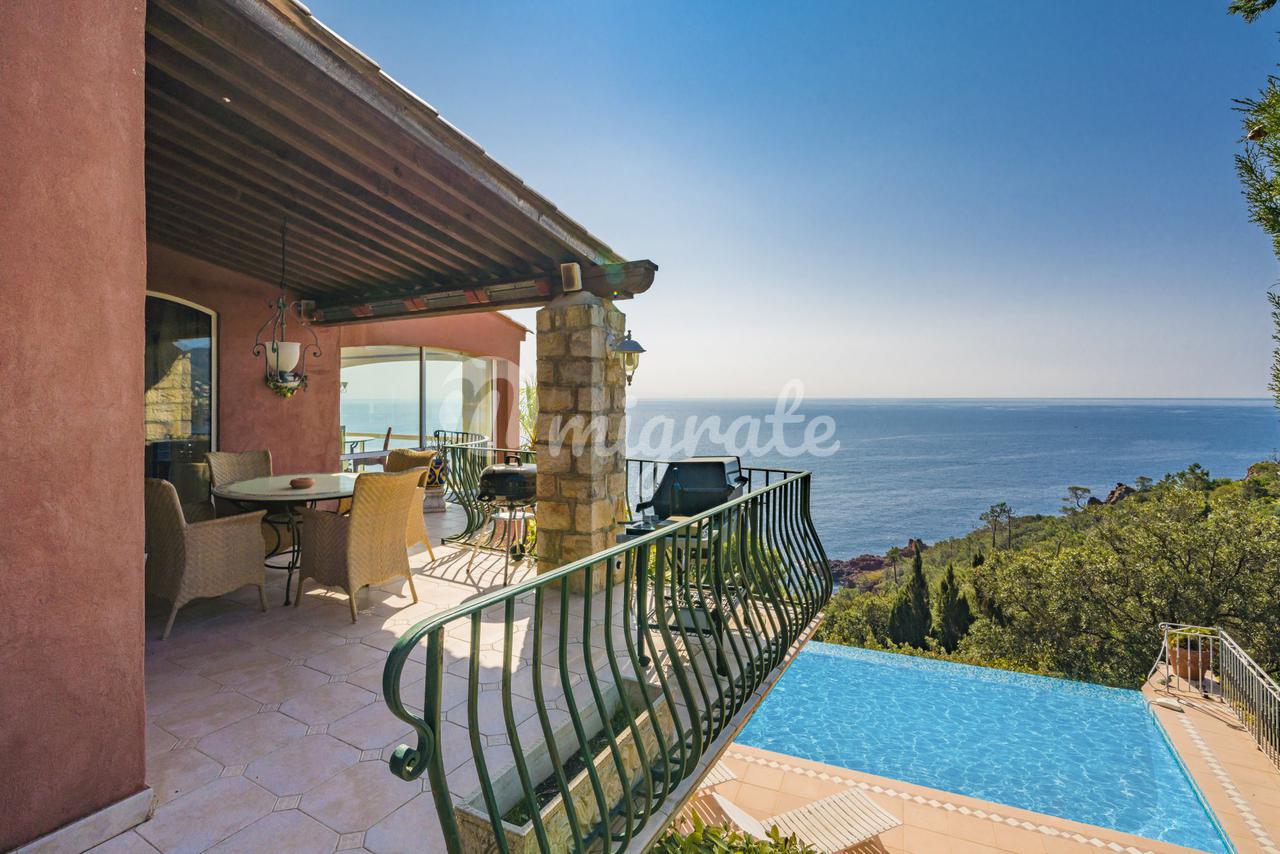 Вилла с захватывающими панорамными видами на море расположена в закрытом охраняемом жилом комплексе на Лазурном побережье в Теуль-Сюр-Мер. Вилла включает гостиную с камином, полностью оснащенную кухню, 2 спальни на первом этаже. На цокольном этаже находятся апартаменты с гостиной, кухней и двумя спальнями.