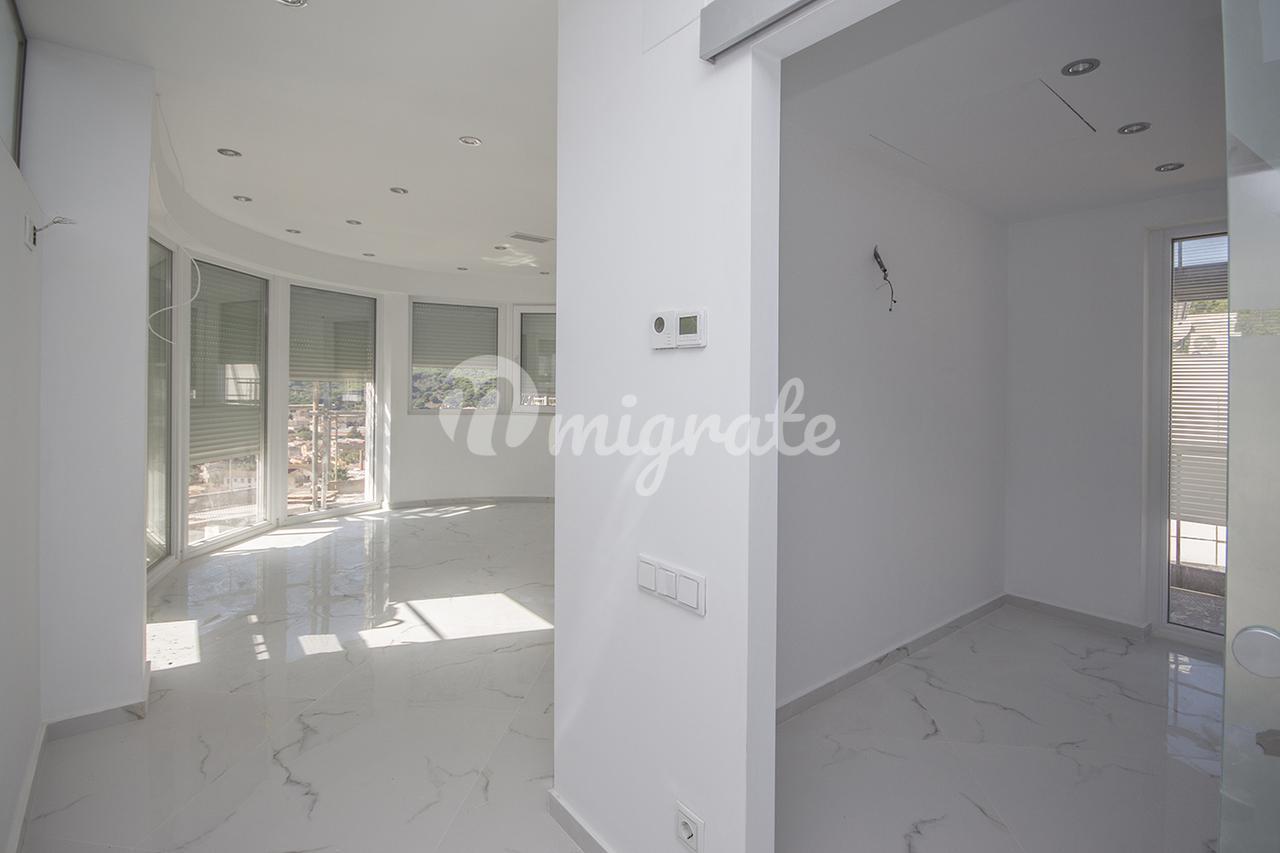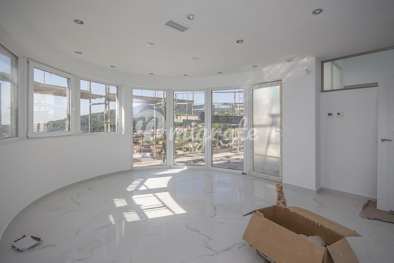 Вилла состоит из гостиной с камином и панорамным видом; кухни открытой планировки; кладовой; гостевого туалета; четырех просторных спален, одна из которых с ванной комнатой и гардеробной; ванной комнаты с джакузи и душем; террасы с захватывающим видом на Средиземное море. Также на вилле расположен открытый СПА с бассейном и водопадом, джакузи и барбекю на открытом воздухе. Большой гараж на две машины с дополнительными местами для хранения вещей и полностью оборудованной ванной комнатой.