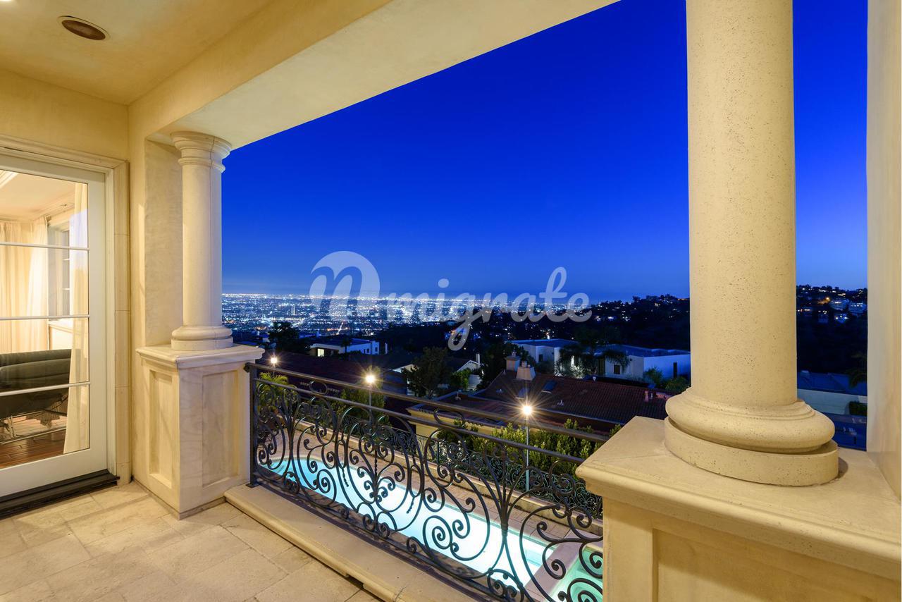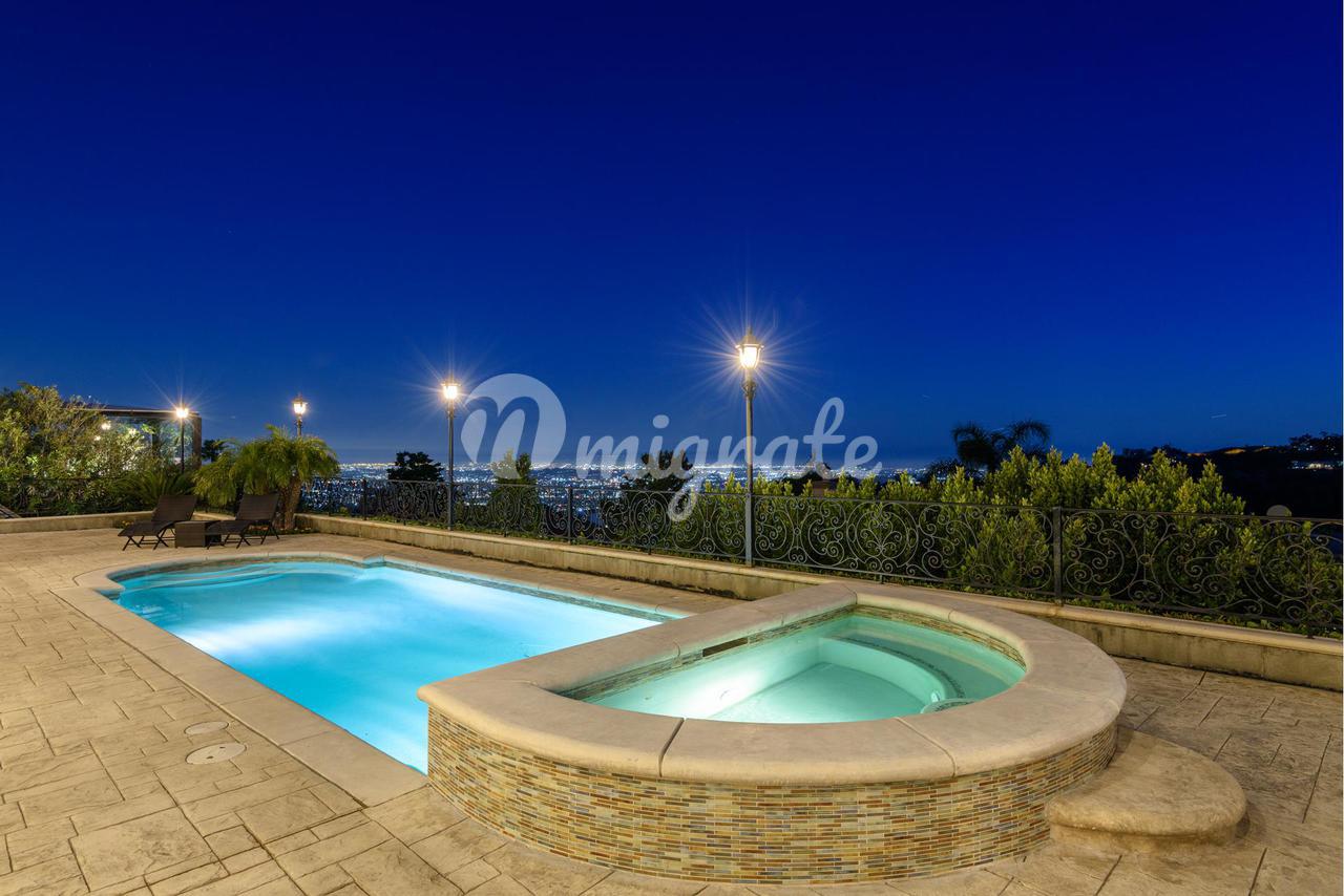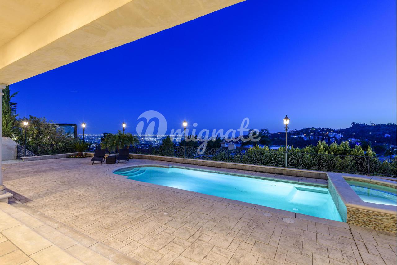 Вилла расположена на престижных Голливудских холмах в Калифорнии, на закрытой территории. Вилла включает 5 спален с гардеробными, 6 ванных комнат, 2 кухни, столовую, бильярдную. Изо всех окон открываются виды на океан, город и горы. На участке расположен бассейн и гараж на 4 автомобиля.