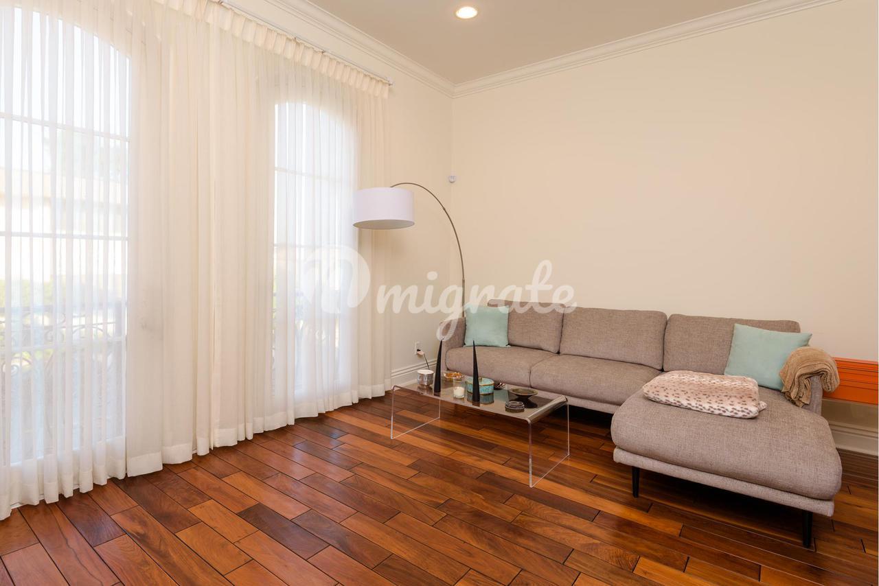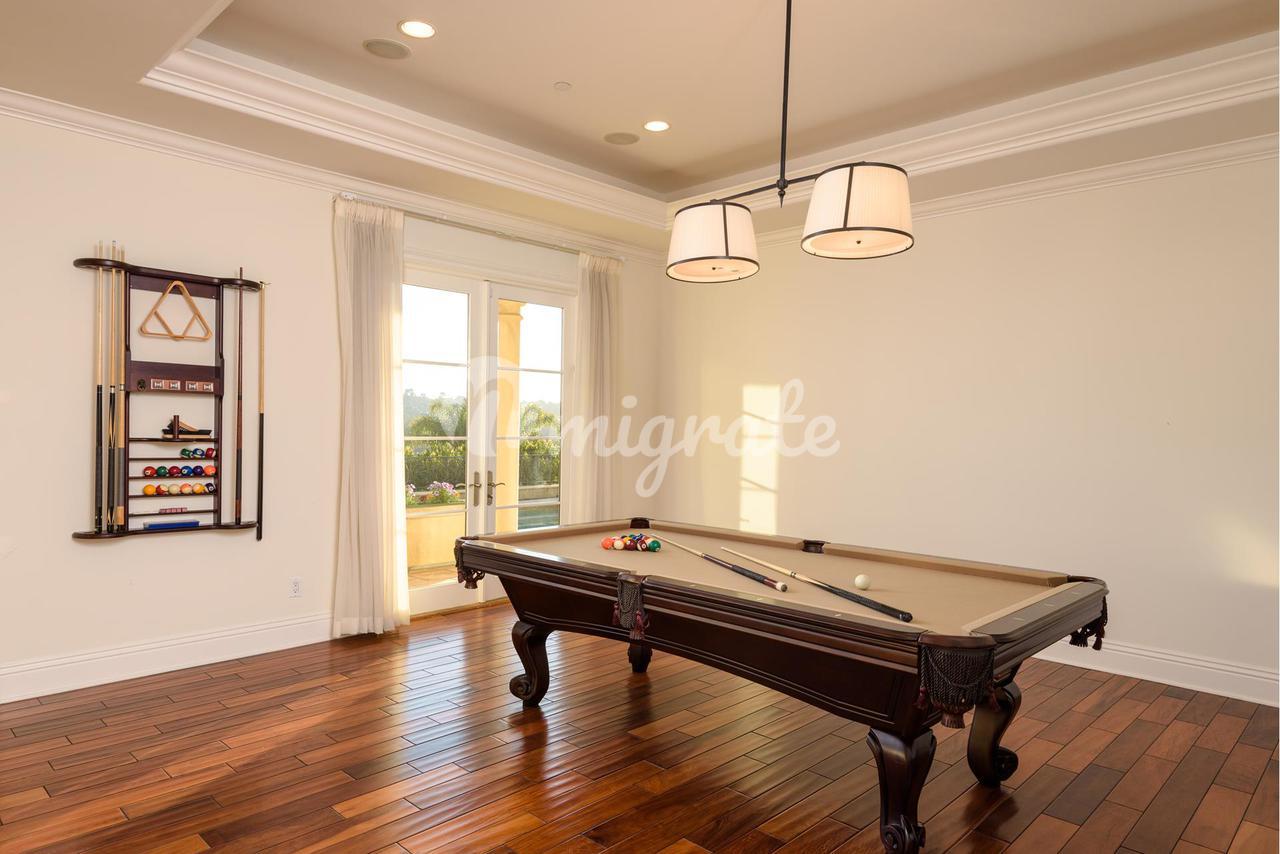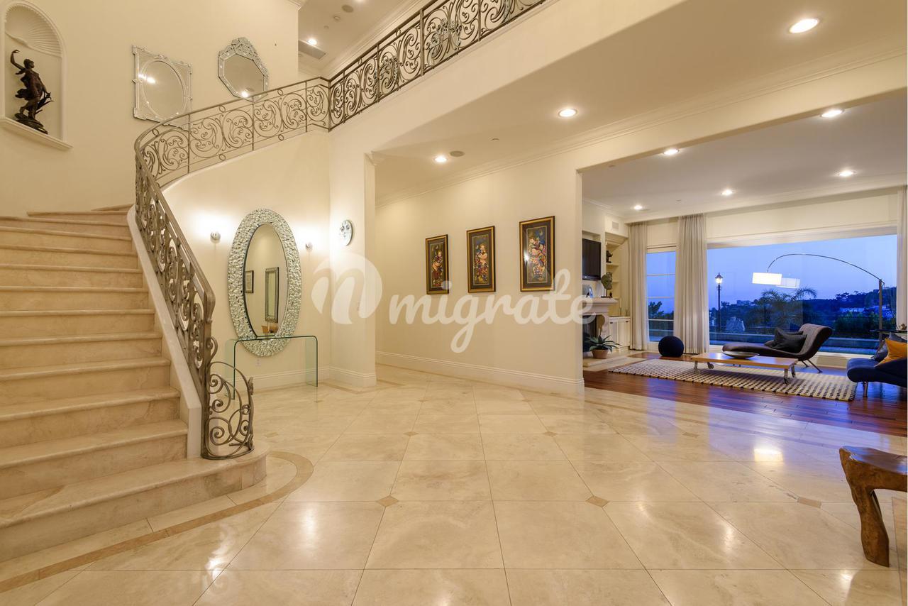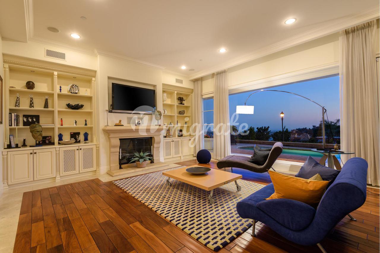 Вилла расположена на престижных Голливудских холмах в Калифорнии, на закрытой территории. Вилла включает 5 спален с гардеробными, 6 ванных комнат, 2 кухни, столовую, бильярдную. Изо всех окон открываются виды на океан, город и горы. На участке расположен бассейн и гараж на 4 автомобиля.