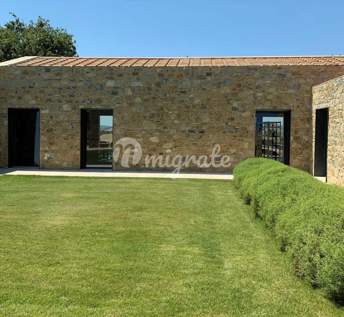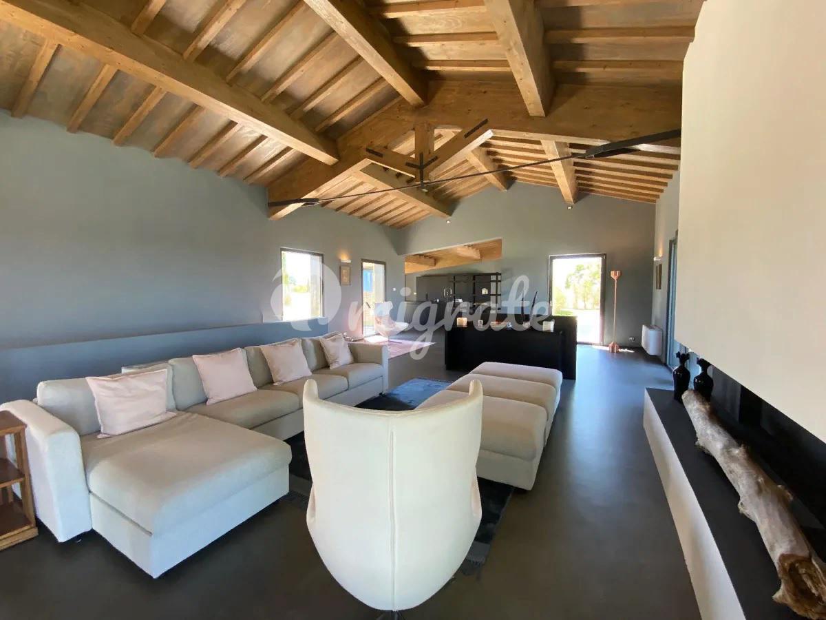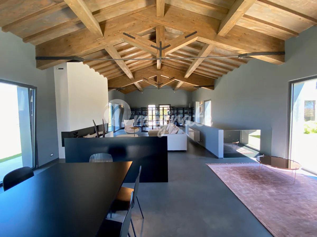 Удобно расположенный в основном на одном уровне, дом состоит из современной кухни, гостевой ванной комнаты, прекрасной просторной гостиной с большим камином и 5 спален с ванными комнатами, все из которых имеют выход в сад. На нижнем уровне находится медиа-зал. Снаружи находится красивый пейзажный бассейн, обращенный к морю, а внизу, на немного более низком уровне, расположен еще один небольшой бассейн, который можно подогревать, чтобы наслаждаться видом на море и в прохладные месяцы. В техническом помещении бассейна расположены раздевалка и туалет. Площадь земельного участка составляет около 27 га, которые включают 1,5 га виноградников, производящих вина категории IGT (Мерло, Верментино и Пти Вердо) и 5 га оливковых рощ с около 1000 семилетних оливковых деревьев, а также 12 га пахотных земель и 7 га леса. На участке есть колодец, снабжающий водой как для орошения, так и для бассейна. Коммунальные услуги включают солнечные батареи и фанкойлы, ЖК-видеодомофон, Wi-Fi и спутниковое телевидение.
