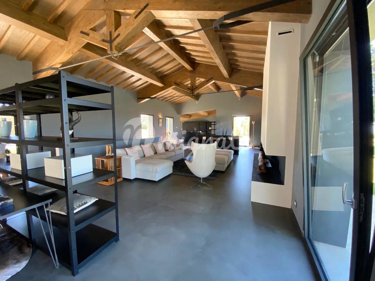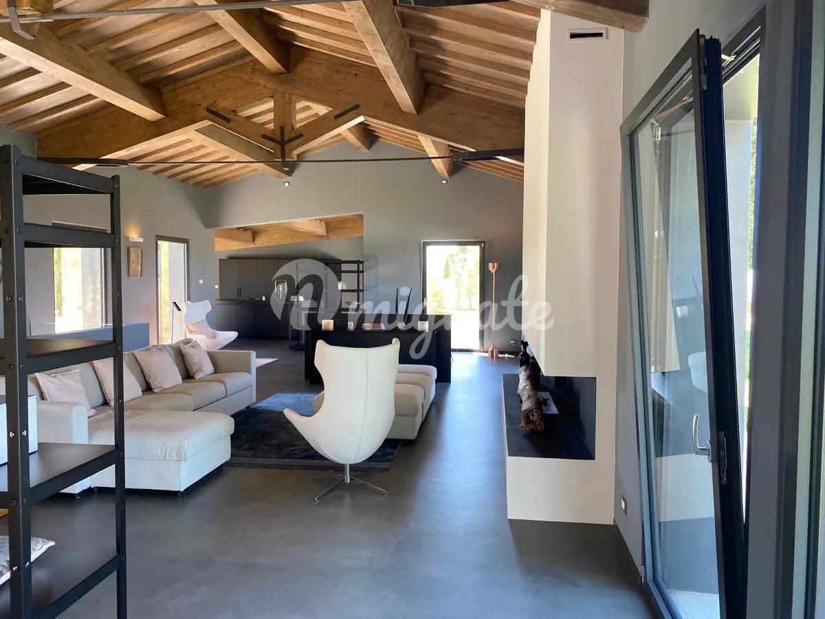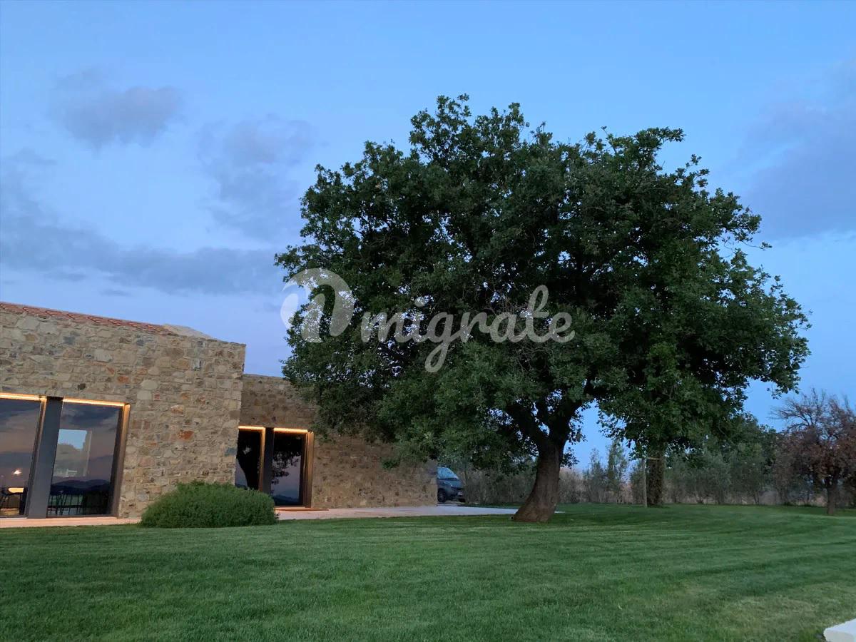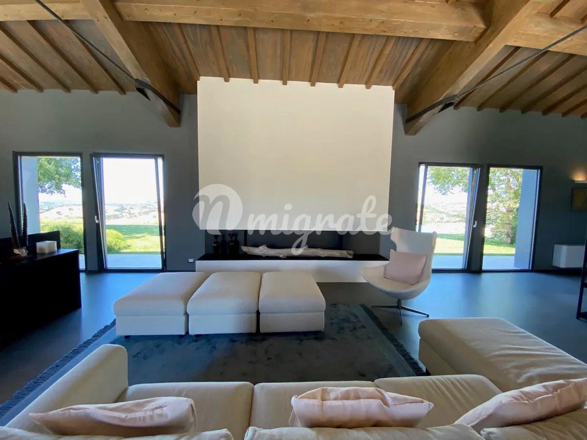 Удобно расположенный в основном на одном уровне, дом состоит из современной кухни, гостевой ванной комнаты, прекрасной просторной гостиной с большим камином и 5 спален с ванными комнатами, все из которых имеют выход в сад. На нижнем уровне находится медиа-зал. Снаружи находится красивый пейзажный бассейн, обращенный к морю, а внизу, на немного более низком уровне, расположен еще один небольшой бассейн, который можно подогревать, чтобы наслаждаться видом на море и в прохладные месяцы. В техническом помещении бассейна расположены раздевалка и туалет. Площадь земельного участка составляет около 27 га, которые включают 1,5 га виноградников, производящих вина категории IGT (Мерло, Верментино и Пти Вердо) и 5 га оливковых рощ с около 1000 семилетних оливковых деревьев, а также 12 га пахотных земель и 7 га леса. На участке есть колодец, снабжающий водой как для орошения, так и для бассейна. Коммунальные услуги включают солнечные батареи и фанкойлы, ЖК-видеодомофон, Wi-Fi и спутниковое телевидение.