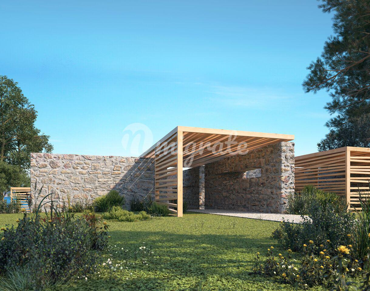 В саду обустроен бассейн, оборудована столовая и зона для отдыха, есть крытая парковка.