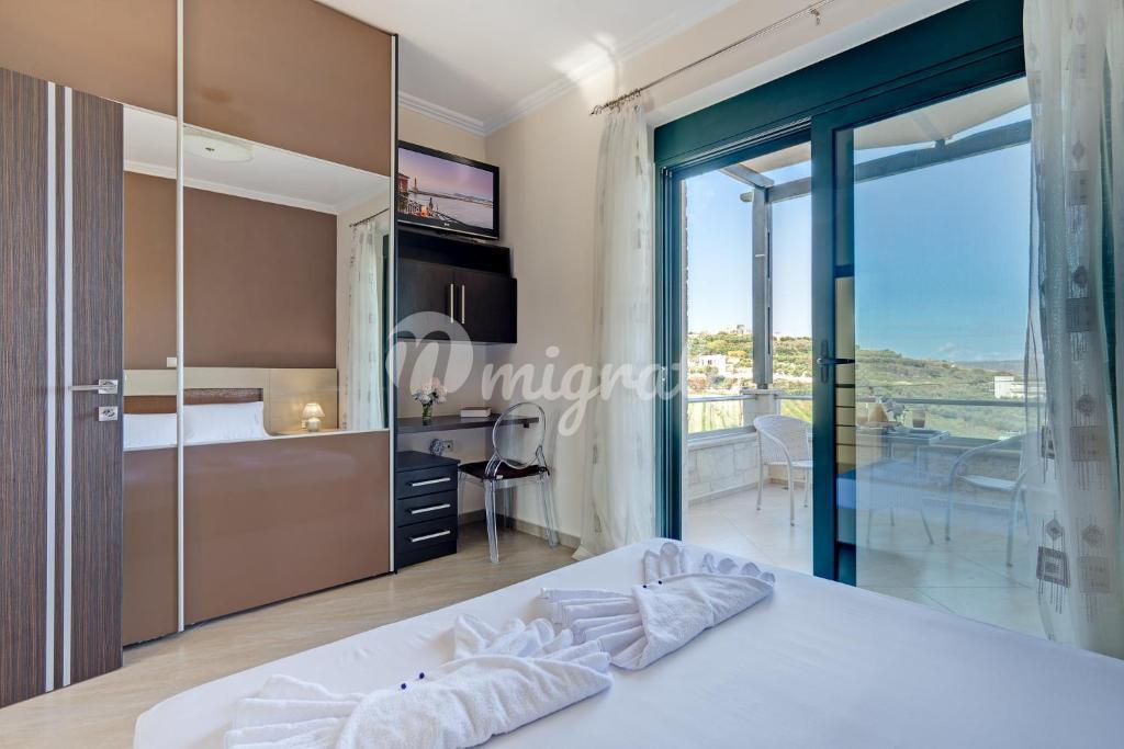 Роскошная современная вилла расположена между прибрежными поселками Каливес и Альмирида в муниципалитете Ханья на острове Крит. С территории виллы открывается захватывающий вид на залив Суда и полуостров Акротири. Резиденция состоит из 4 спален, 2 полностью оборудованных кухней, 5 ванных комнат и 2 гостиных. На первом этаже находятся просторная гостиная с обеденной зоной и современной кухней, а также ванная комната с душевой. На втором этаже расположены 3 спальни с выходами на террасы с видом на море и горы. Цокольный этаж представляет собой отдельные апартаменты с кухней, спальней, двумя санузлами, отдельным входом, гостиной и прачечной.
