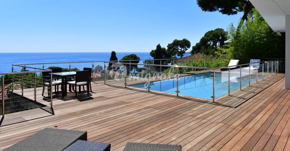 Вилла с панорамными видами на море расположена в коммуне Эз на Лазурном побережье. Вилла площадью 260 кв. м включает бассейн, гараж.