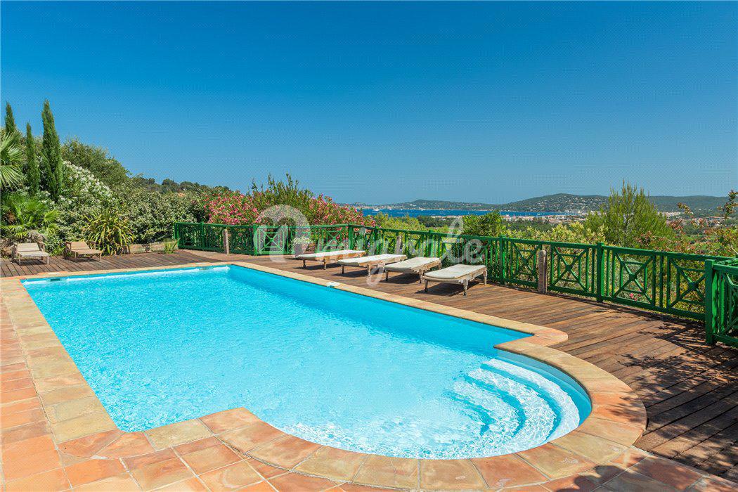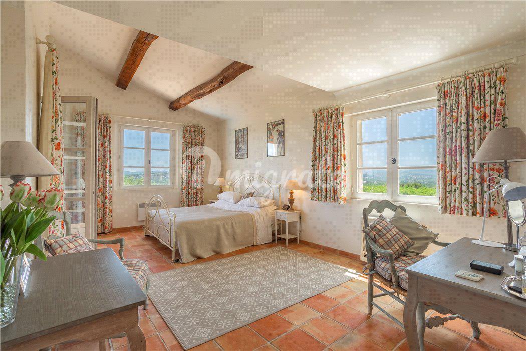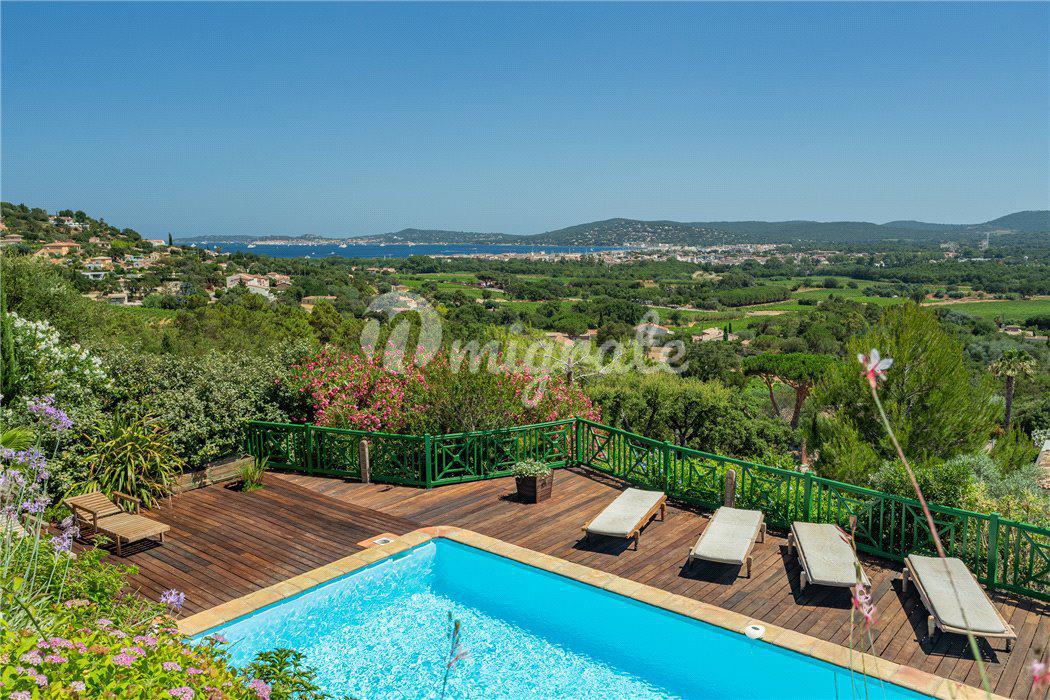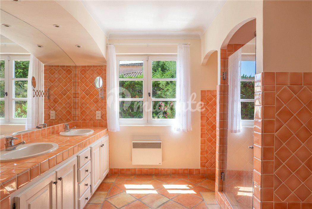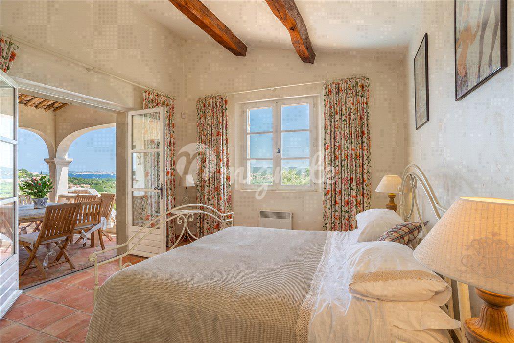 Прованская вилла с видами на море и побережье Сен-Тропе расположена в Гримо. Вилла площадью 232 кв. м состоит из двух этажей. Первый этаж включает прихожую, просторную гостиную, отдельную кухню, столовую, гостевой санузел, две спальни с ванными комнатами и душевую. На втором этаже находятся три спальни и две ванные комнаты.