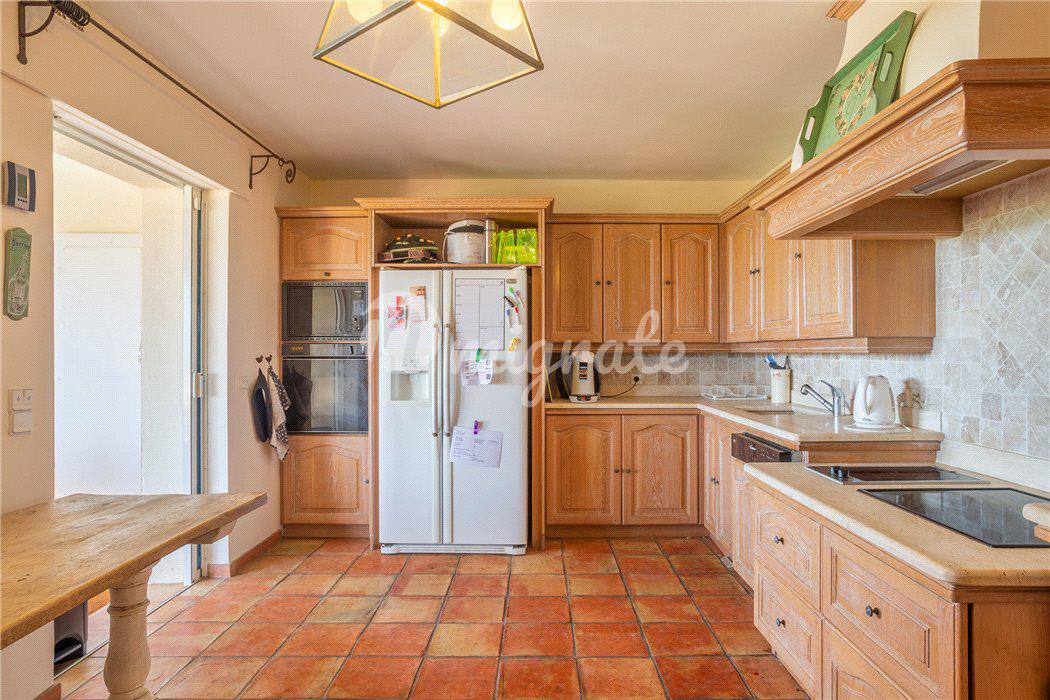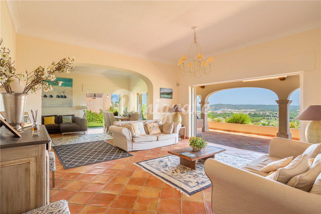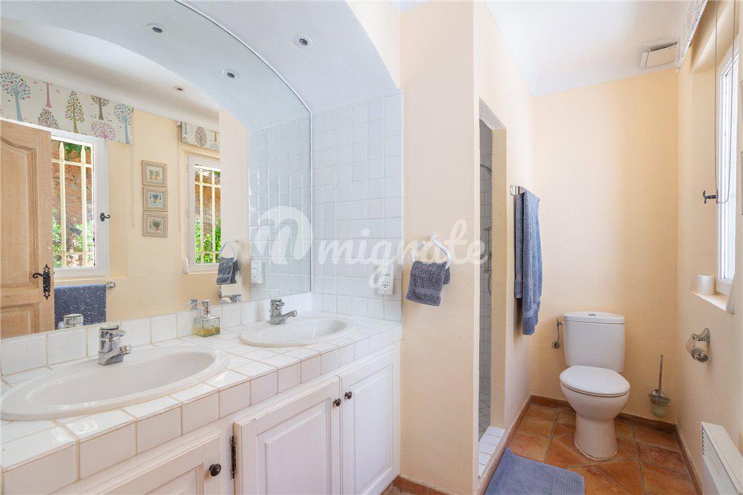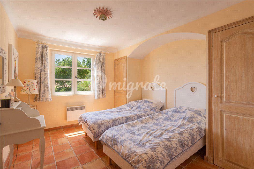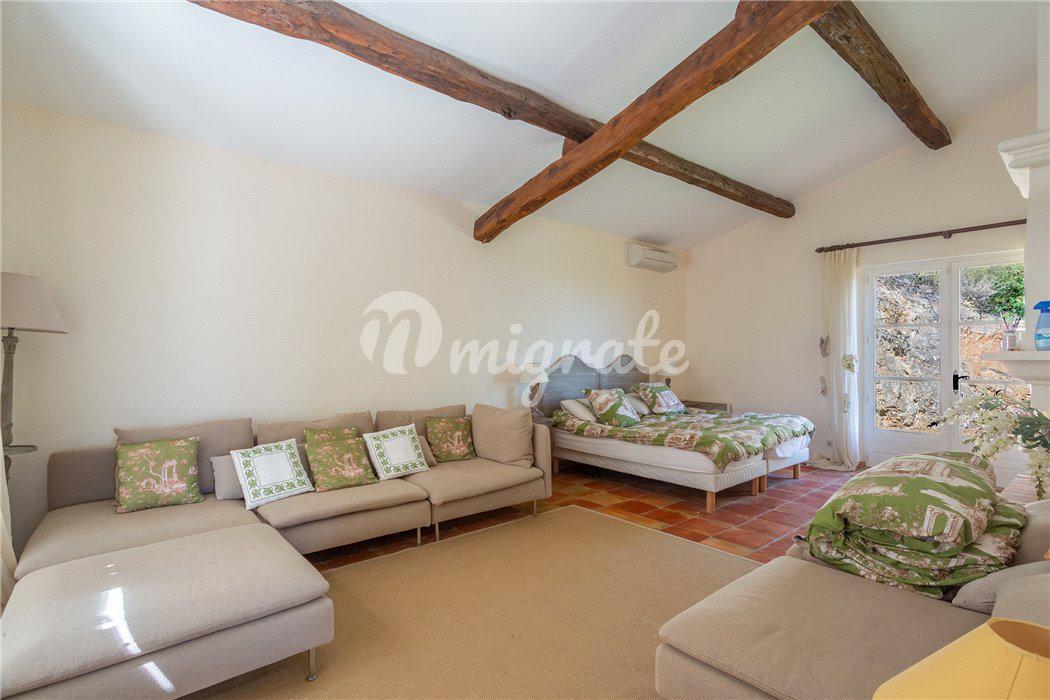 Прованская вилла с видами на море и побережье Сен-Тропе расположена в Гримо. Вилла площадью 232 кв. м состоит из двух этажей. Первый этаж включает прихожую, просторную гостиную, отдельную кухню, столовую, гостевой санузел, две спальни с ванными комнатами и душевую. На втором этаже находятся три спальни и две ванные комнаты.