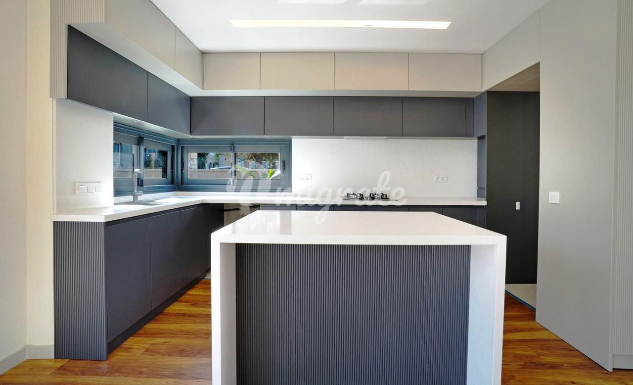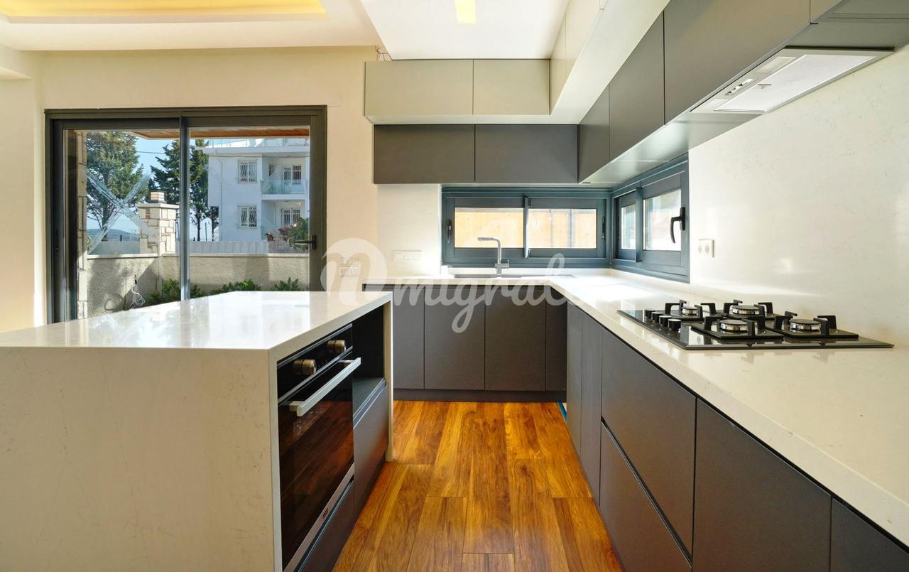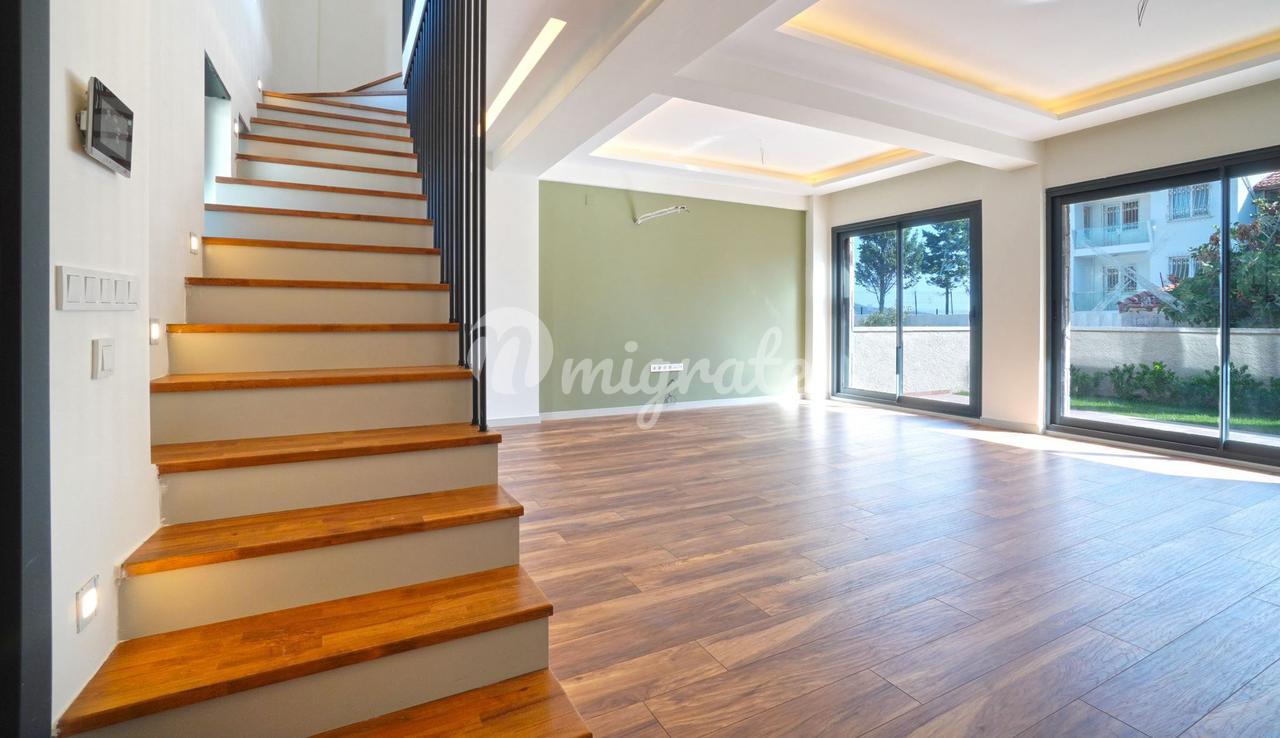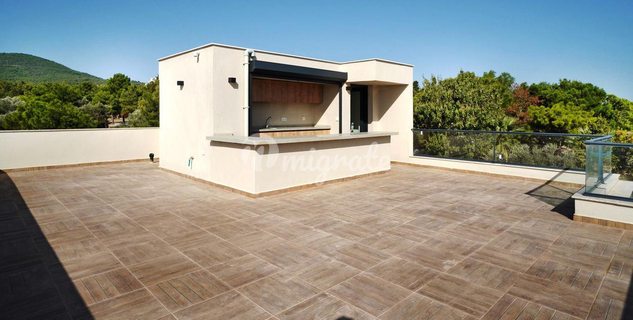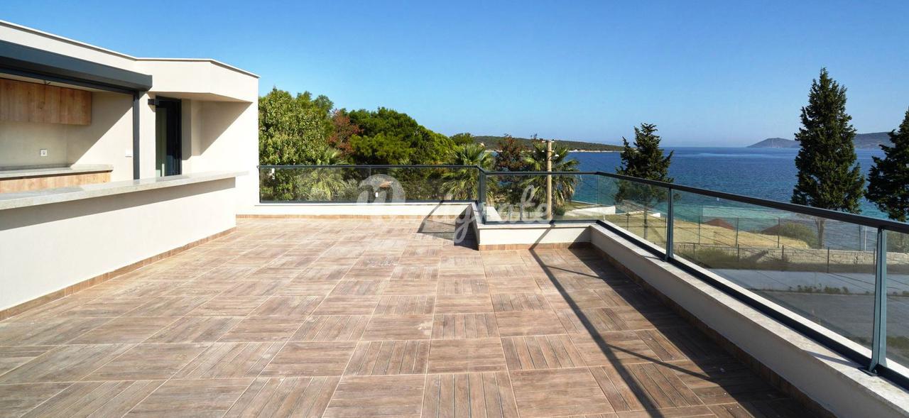 Дуплекс с 3 спальнями, 1 гостиной и кухней, и 2 ванными комнатами. Характеристики: частный сад, бассейн, 50 метров от моря, подогрев полов, инфраструктура кондиционирования (охлаждение/обогрев), полный вид на море, большая терраса на крыше с собственным баром, электрические жалюзи, автоматическая система полива сада, 2 балкона, 1 терраса в саду. Инфраструктура: 7 км до центра Искеле, 11 км до центра Урла, 54 км до аэропорта Измира, 60 км до Чешме, 42 км до центра Измира.