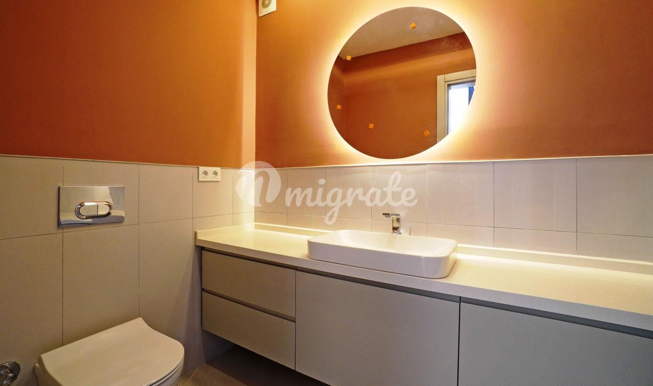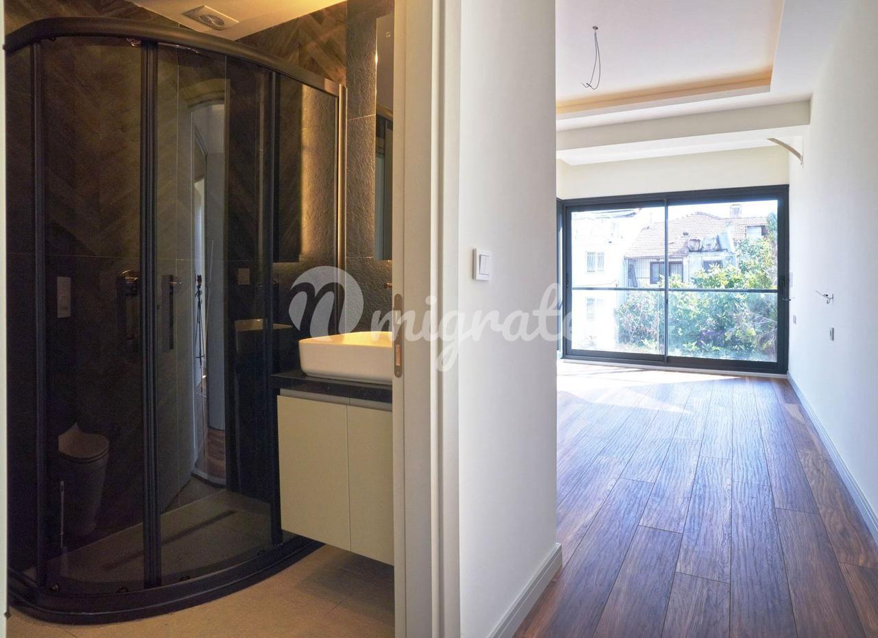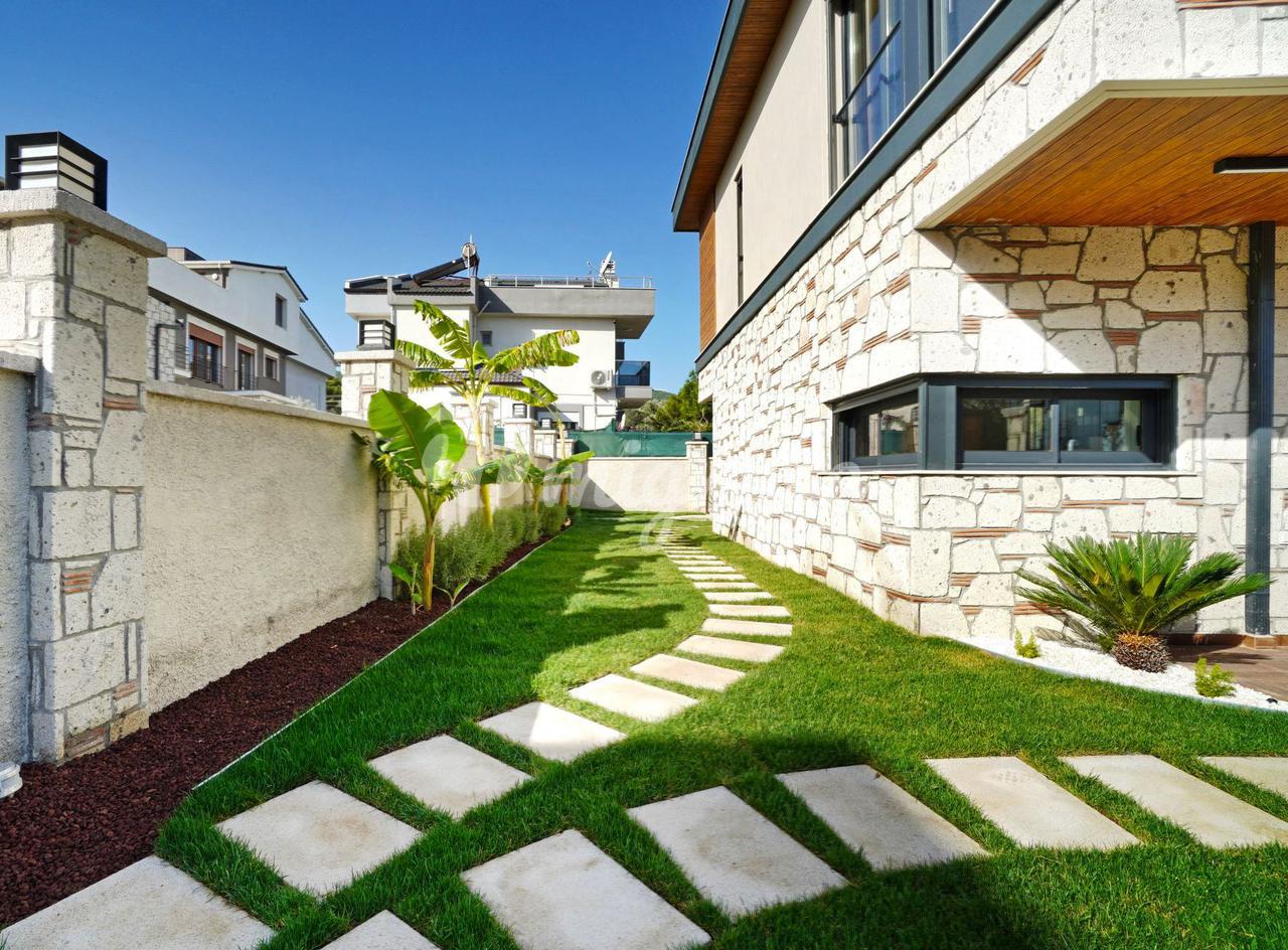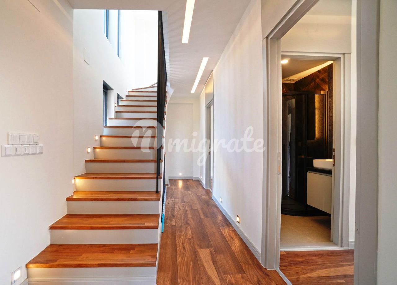Дуплекс с 3 спальнями, 1 гостиной и кухней, и 2 ванными комнатами. Характеристики: частный сад, бассейн, 50 метров от моря, подогрев полов, инфраструктура кондиционирования (охлаждение/обогрев), полный вид на море, большая терраса на крыше с собственным баром, электрические жалюзи, автоматическая система полива сада, 2 балкона, 1 терраса в саду. Инфраструктура: 7 км до центра Искеле, 11 км до центра Урла, 54 км до аэропорта Измира, 60 км до Чешме, 42 км до центра Измира.