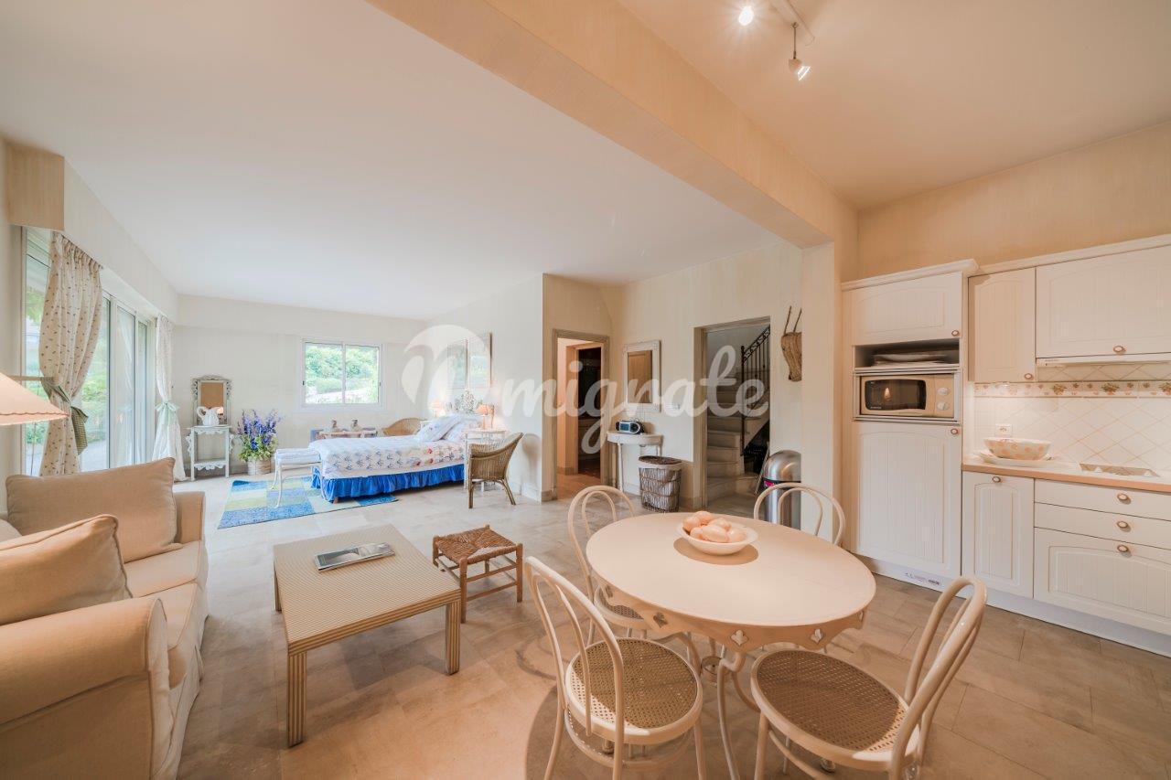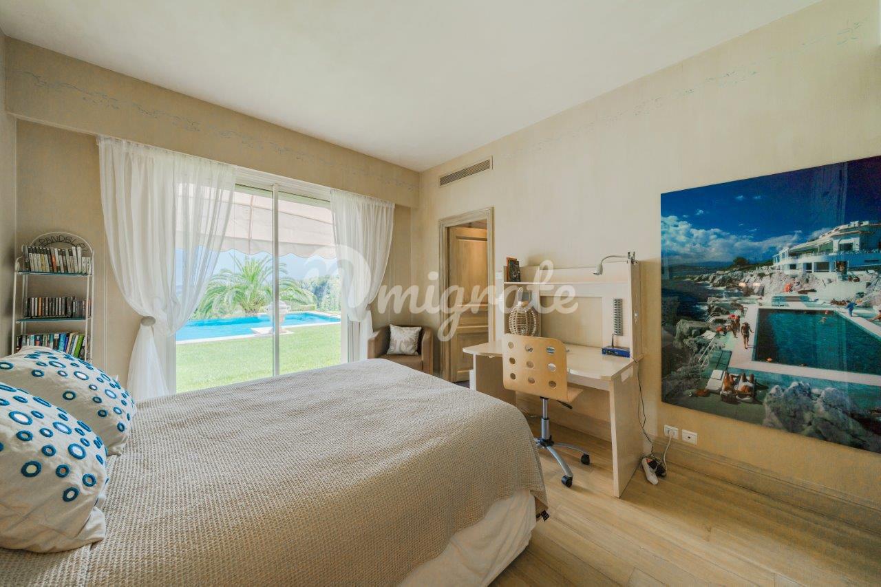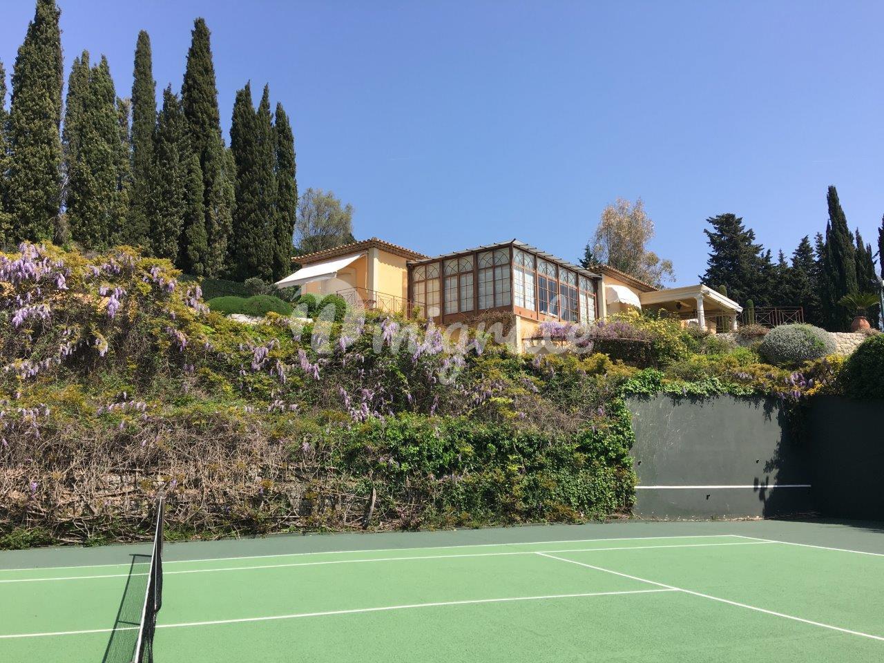Роскошная вилла с видом на море и собственным теннисным кортом расположена в городке Мужен. На первом этаже расположена прихожая, гостевой санузел, гостиная с камином, просторная столовая, полностью оснащенная кухня, основная спальня с гардеробной и ванной комнатой, тренажерный зал и 3 гостевые спальни.