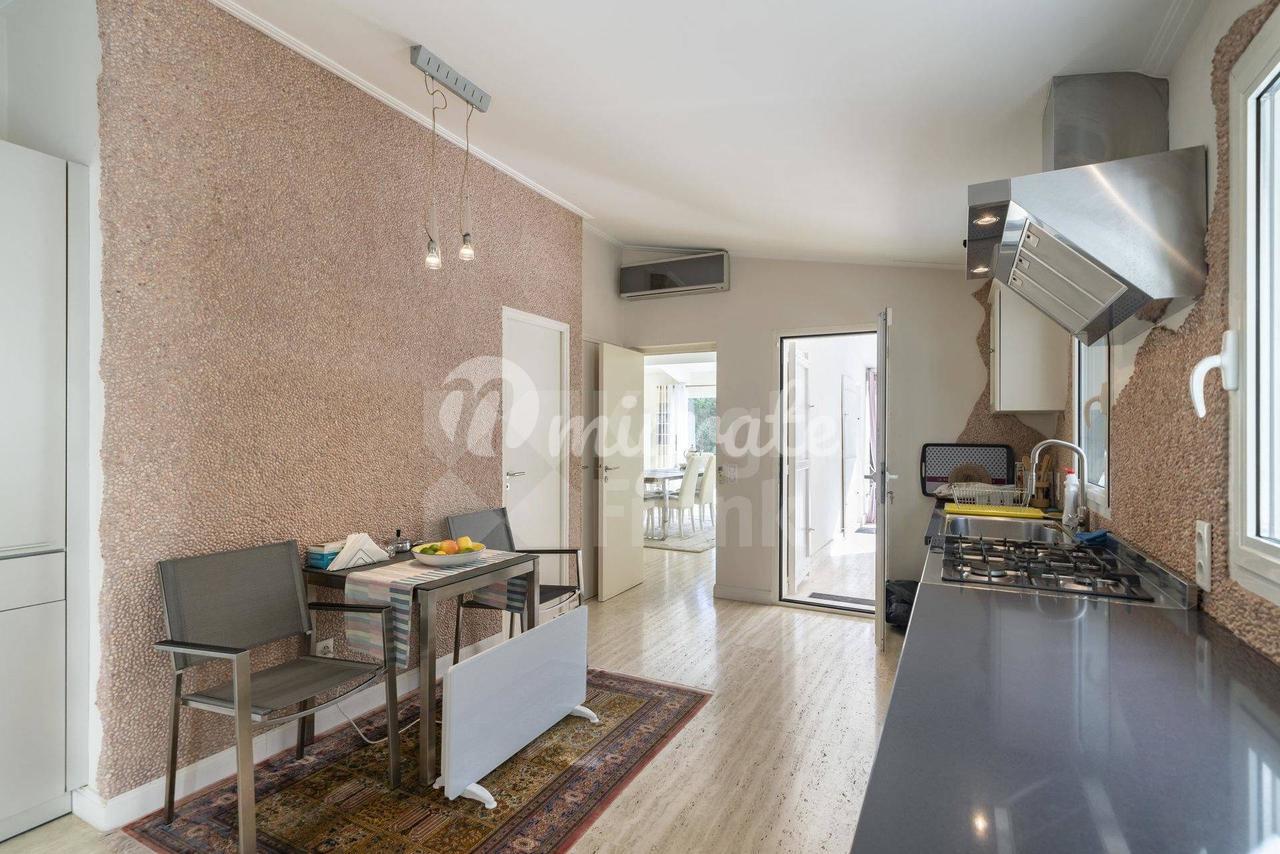 На территории виллы площадью 3558 кв. м расположен ухоженный сад с оливковыми деревьями и средиземноморской растительностью, бассейн и 2 гаража на 6 автомобилей.