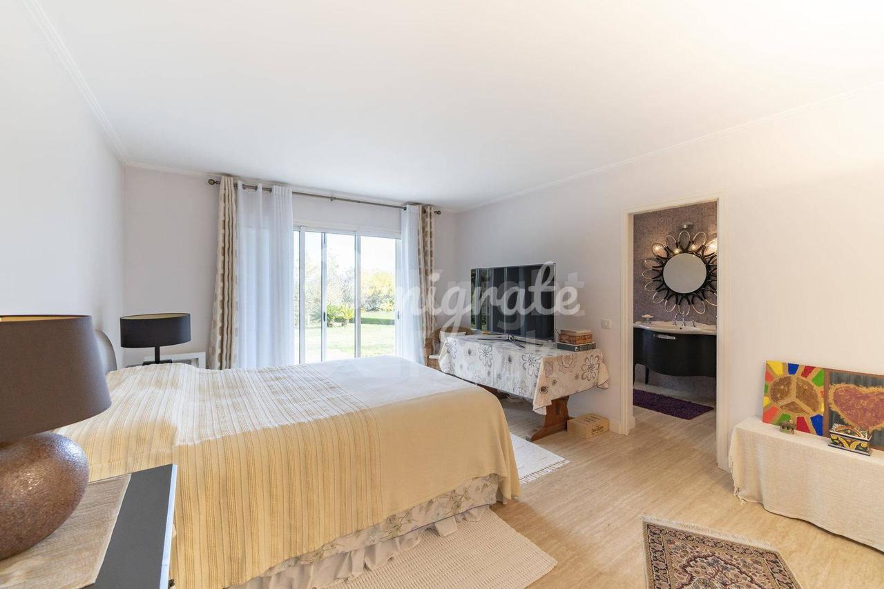 Планировка виллы: Этаж на уровне сада: 3 спальни с 2 ванными комнатами, большая гардеробная, прачечная и кладовое помещение. 2 этаж: гостиная с камином, столовая, полностью оборудованная кухня с видом на сад и бассейн, главная спальня с ванной комнатой.