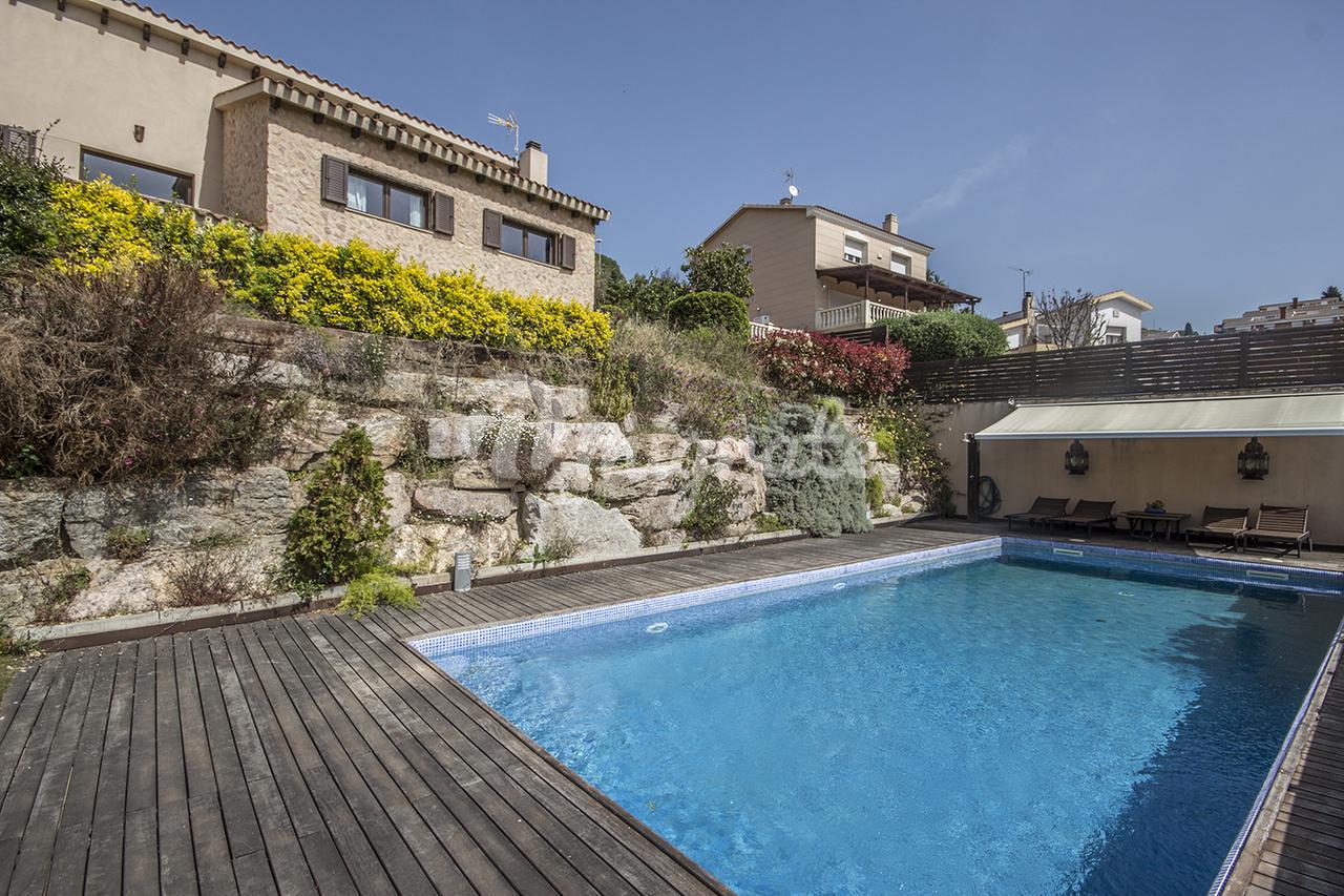 На цокольном этаже находится гостиная с камином и с выходом на крытую террасу и в сад, полностью оборудованная кухня с обеденной зоной, спальня, ванная комната и кладовая. На участке разбит сад с бассейном с подогревом воды и зоной для принятия солнечных ванн. Техническое оснащение включает солнечные панели для горячей воды в доме и нагрева воды в бассейне, оконные рамы ПВХ с двойным остеклением, теплые пoлы во всем доме, центральный пылесос, сигнализацию и оптоволоконный интернет.