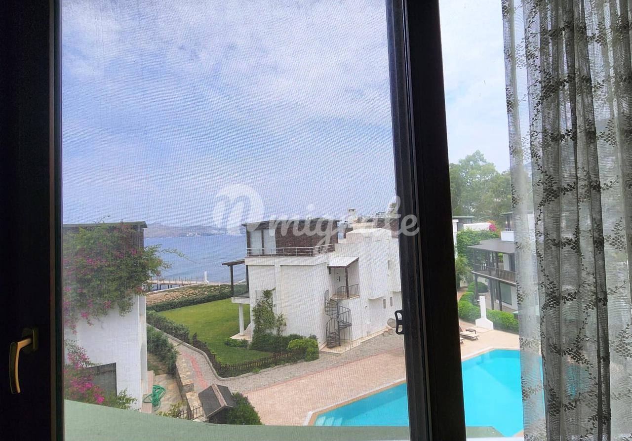 Полуотдельная вилла - 4 спальни - 1 гостиная и кухня - 3 ванные комнаты - 1 гостевой туалет - Общий бассейн - Частный пляж для комплекса - Частный пирс / пристань для принятия солнечных ванн - Сад - Открытая автостоянка - Ворота и охрана - Большая терраса - 7 км до пристани Ялыкавак и яхт-клуба.
