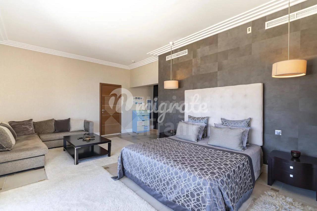 На верхних этажах расположена главная зона отдыха, состоящая из просторной спальни с ванной комнатой, выполненной из высококачественных материалов, и гостиной с телевизором. Также здесь находятся остальные 5 спален, каждая с собственной ванной комнатой.
