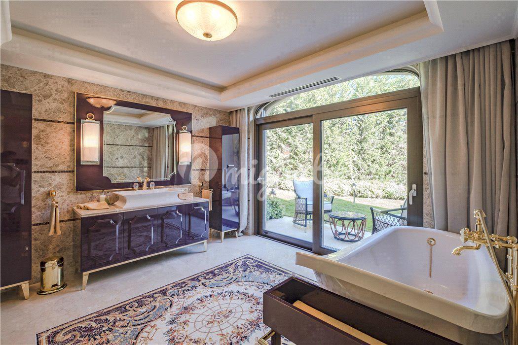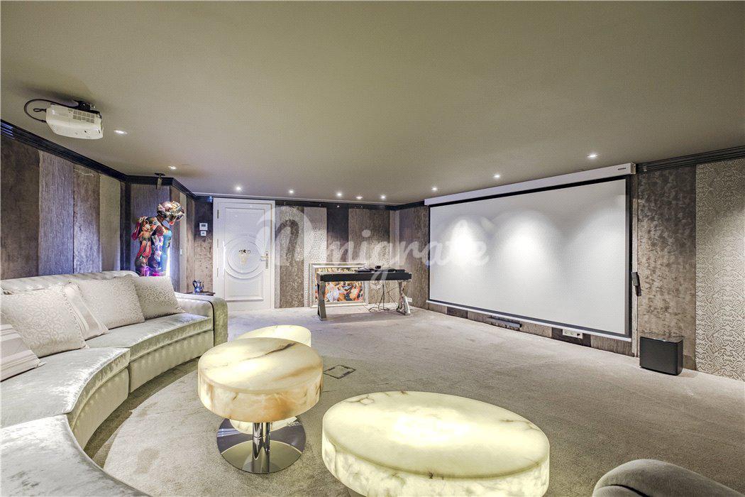 Вилла включает 7 просторных спальных комнат с личными ванными комнатами, гардеробными и террасами. Имеется дополнительная 8-ая спальная комната с ванной, которая может быть использована как кабинет. Также на вилле есть спальня, ванна и кухня для персонала. Вилла включает спа с сауной, паровой комнатой, комнатой со снегом и арома-душем, домашний кинотеатр / ночной клуб, винный погреб, очень просторный гараж на 6-8 машин и комнату видеонаблюдения. На территории виллы разбит роскошный сад и есть частный пляж с барной зоной, зоной для загара с лежаками, паровой комнатой и душем. Техническое оснащение включает лифт, соединяющий все этажи.