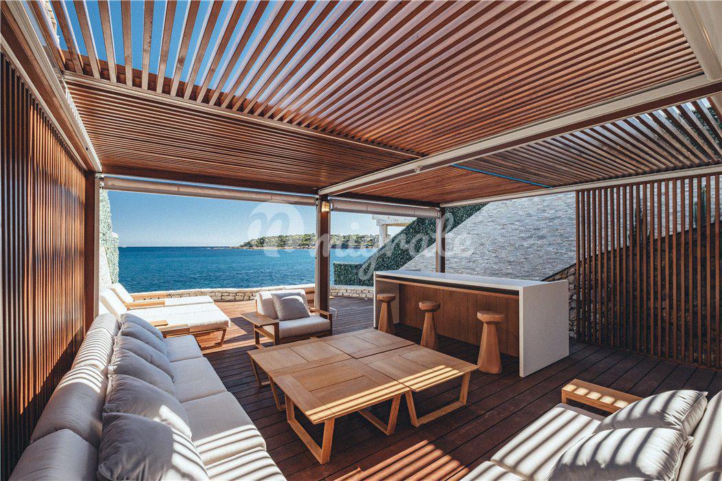 Новая эксклюзивная вилла на берегу моря с личным частным пляжем находится в Антибе, в двух минутах ходьбы от ресторанов и пляжей. Вилла состоит из огромного зала открытого плана, гостиной с камином, столовой и кухни. Все комнаты имеют доступ к открытой террасе, бассейну с подогревом, джакузи, зоне отдыха и застекленной веранде. Также имеется вторая кухня на цокольном этаже, с отдельным доступом для персонала.