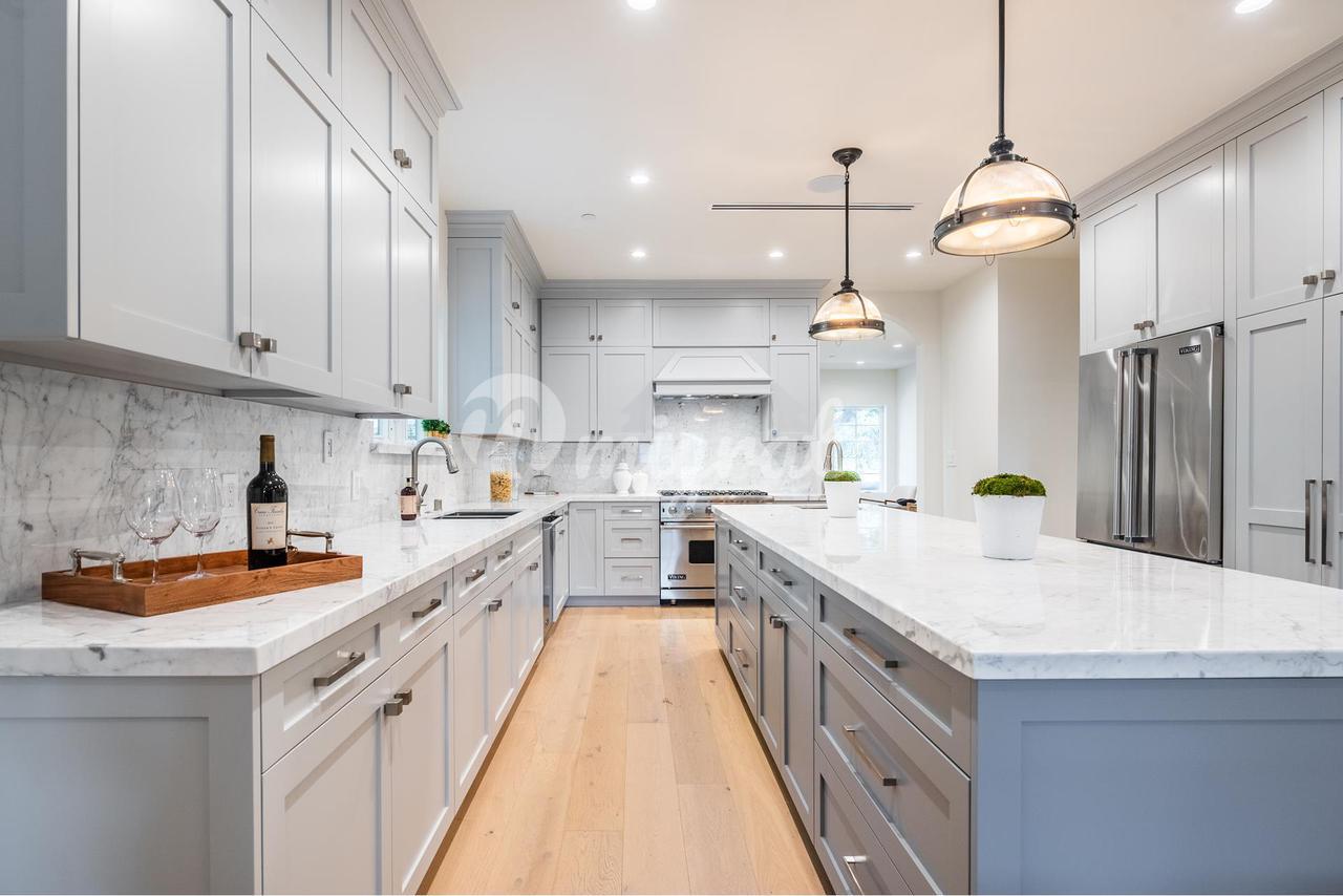 На заднем дворе находится живописный ландшафтный сад, бассейн, спа, летняя кухня.