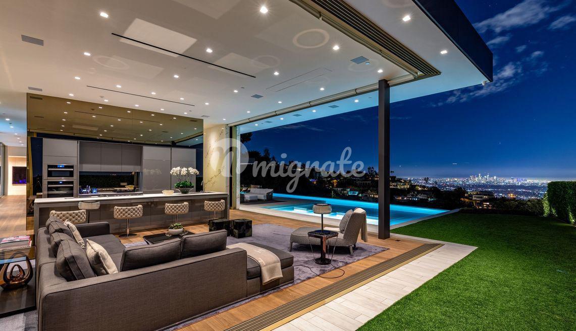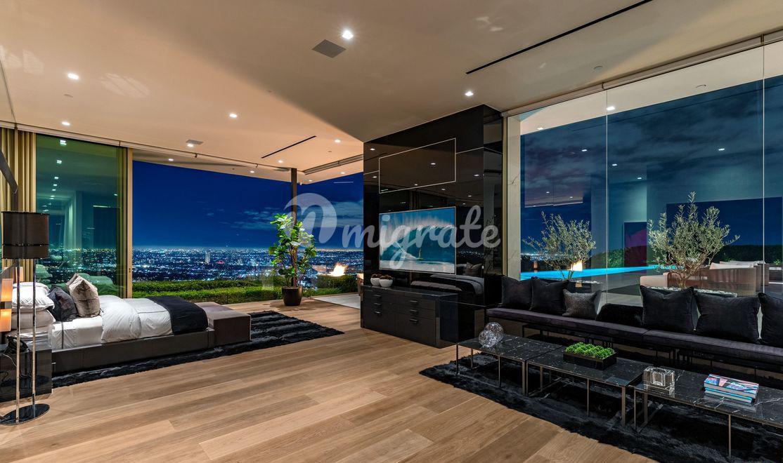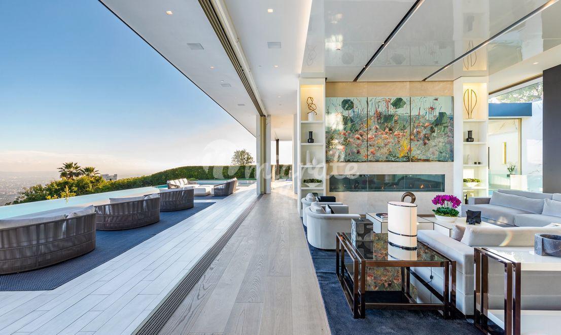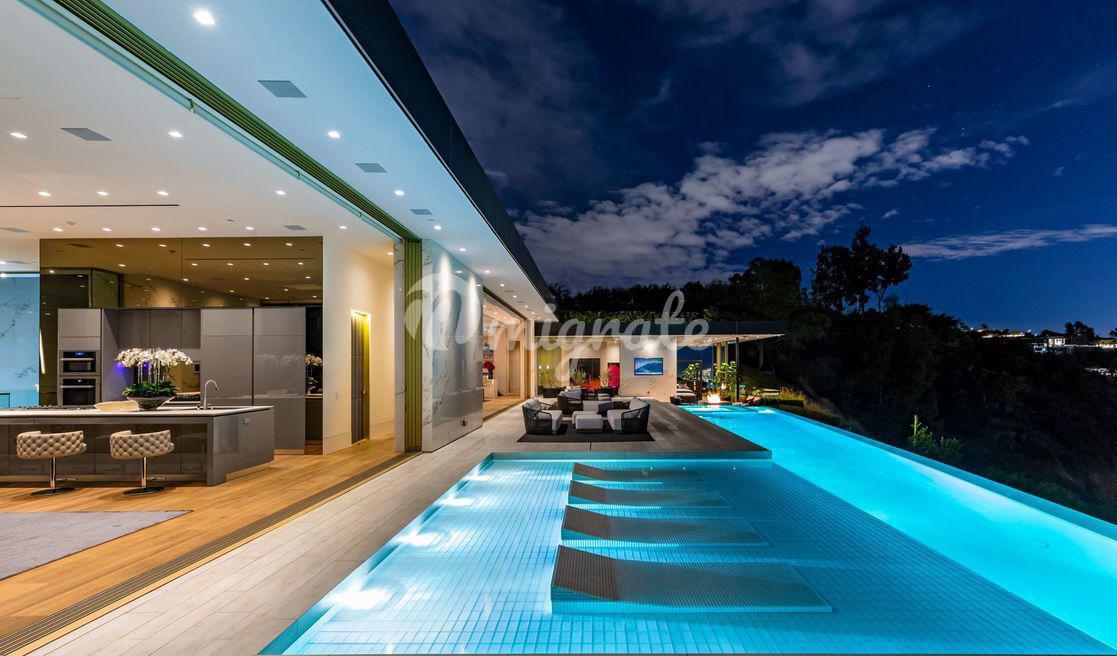 Эта вилла - самый впечатляющий современный дом, когда-либо построенный в престижном районе Беверли-Хиллз. С виллы открываются самые завораживающие виды на Лос-Анджелес. Парящая над 50-ярдовой линией города Ангелов, вилла предлагает лучшее из обоих миров, развлечения легендарной Сансет Стрип и лучшие удобства 90210 и Родео Драйв.