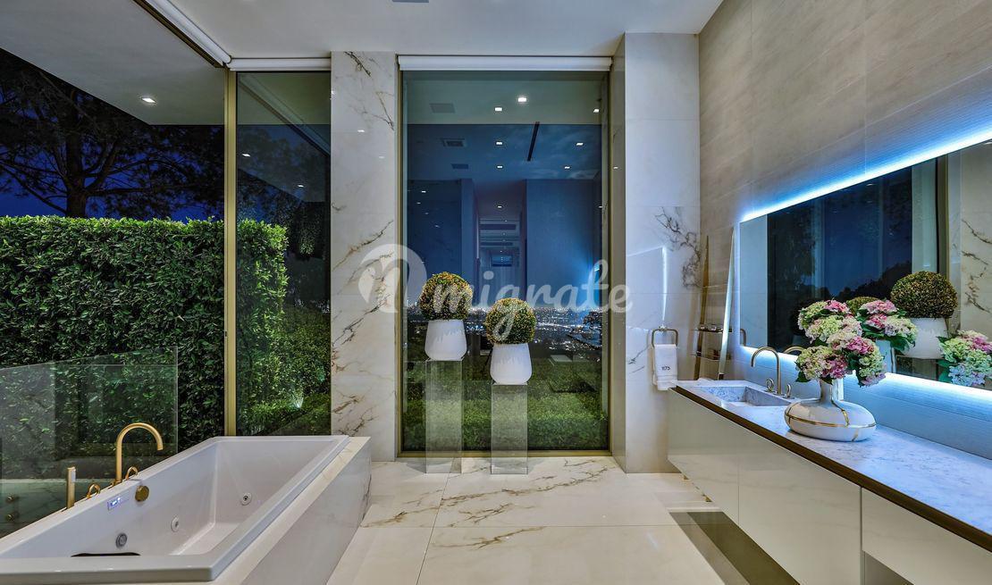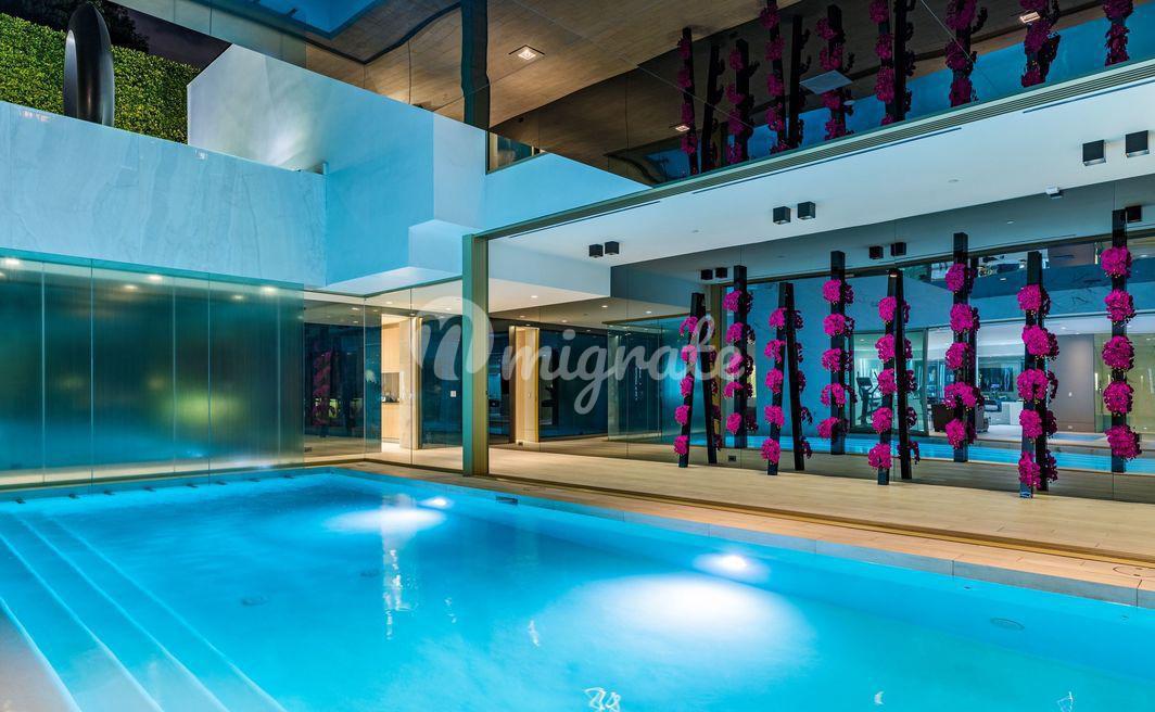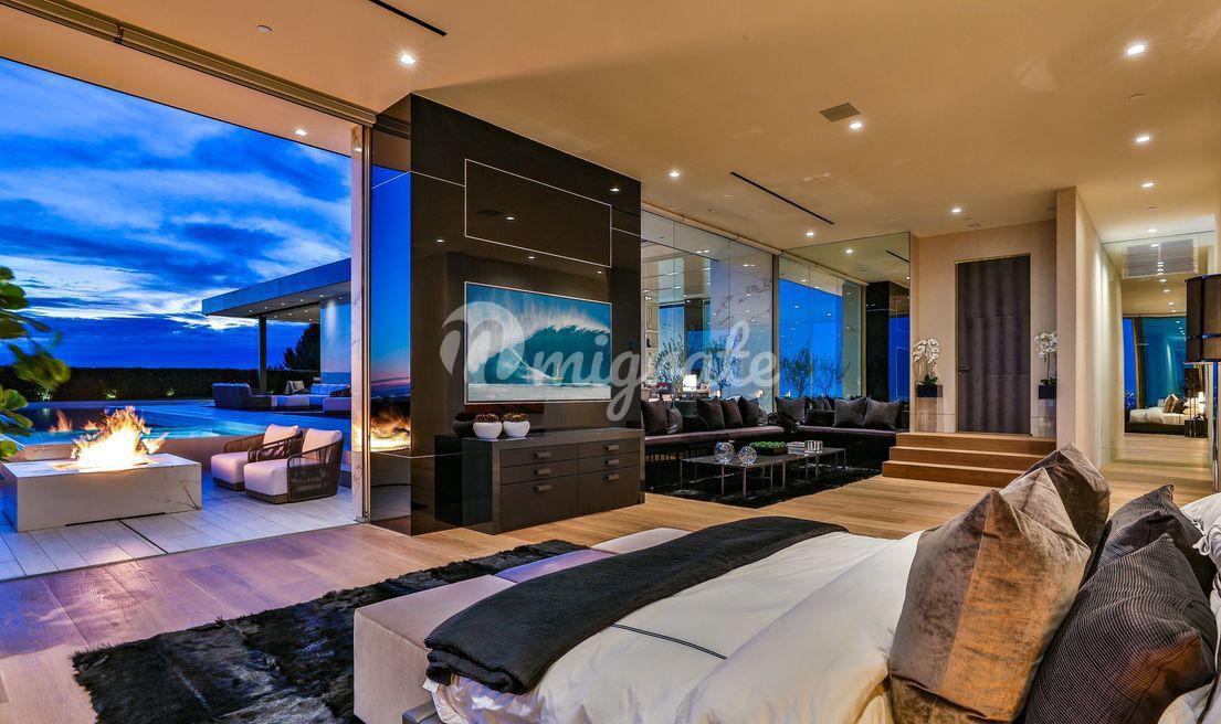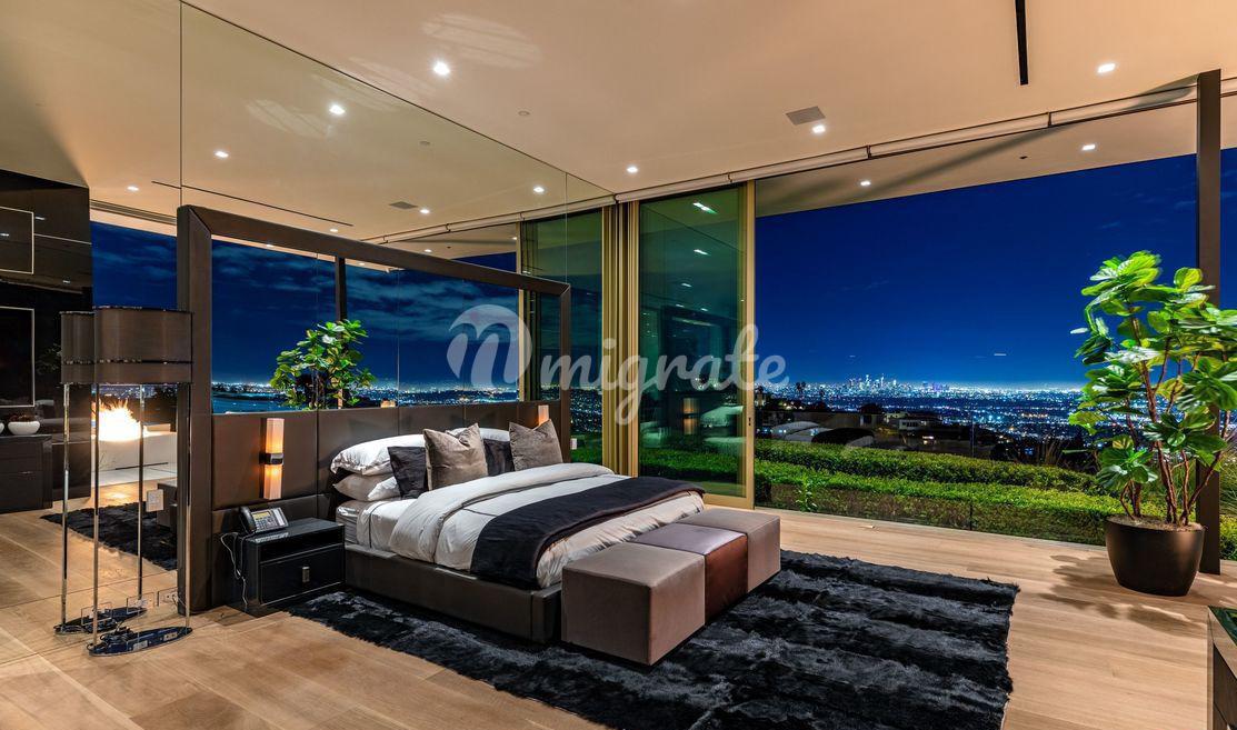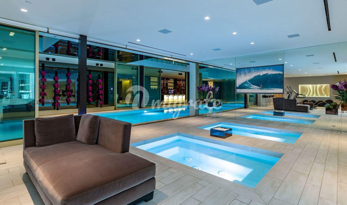 Эта вилла - самый впечатляющий современный дом, когда-либо построенный в престижном районе Беверли-Хиллз. С виллы открываются самые завораживающие виды на Лос-Анджелес. Парящая над 50-ярдовой линией города Ангелов, вилла предлагает лучшее из обоих миров, развлечения легендарной Сансет Стрип и лучшие удобства 90210 и Родео Драйв.