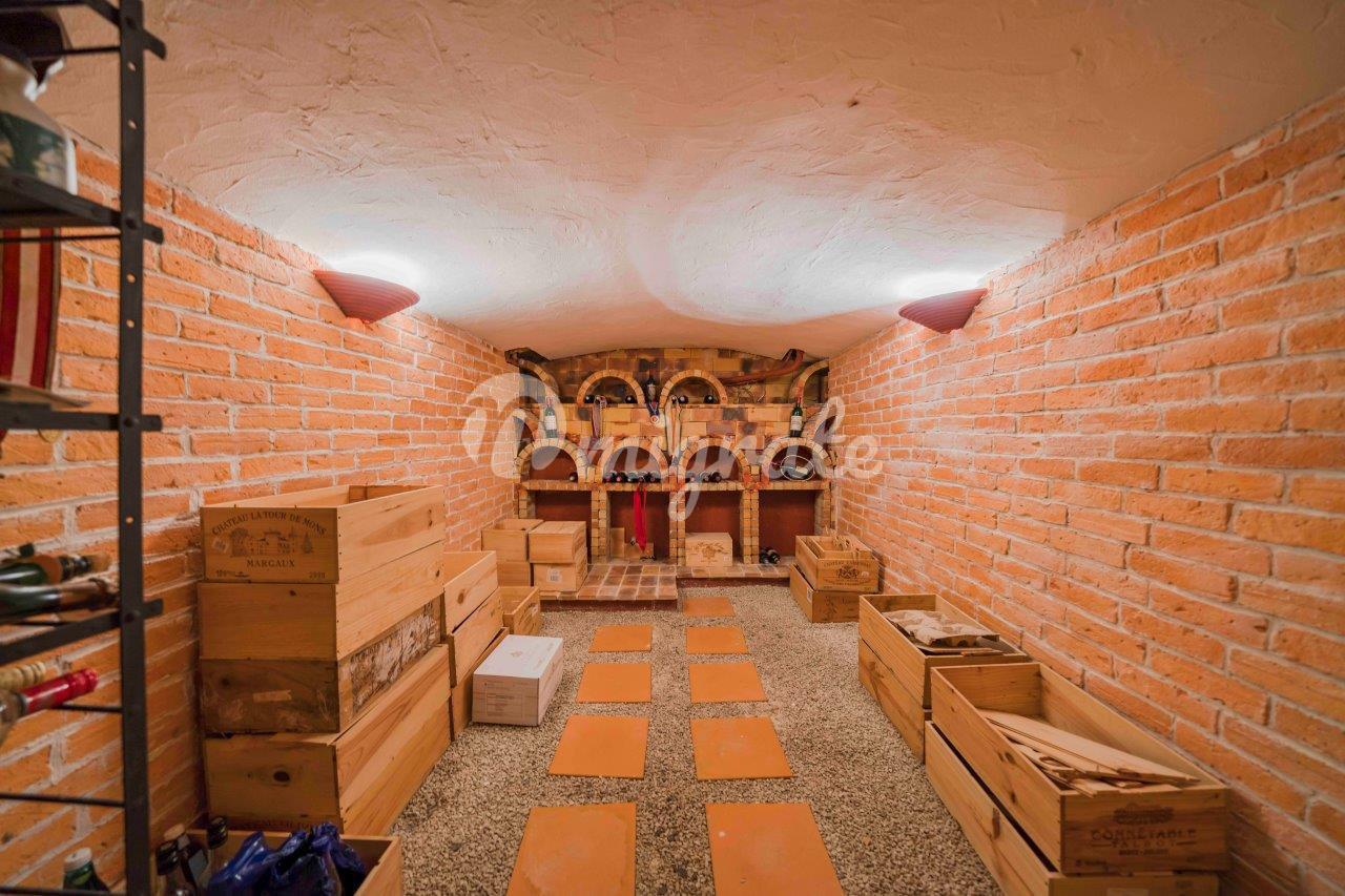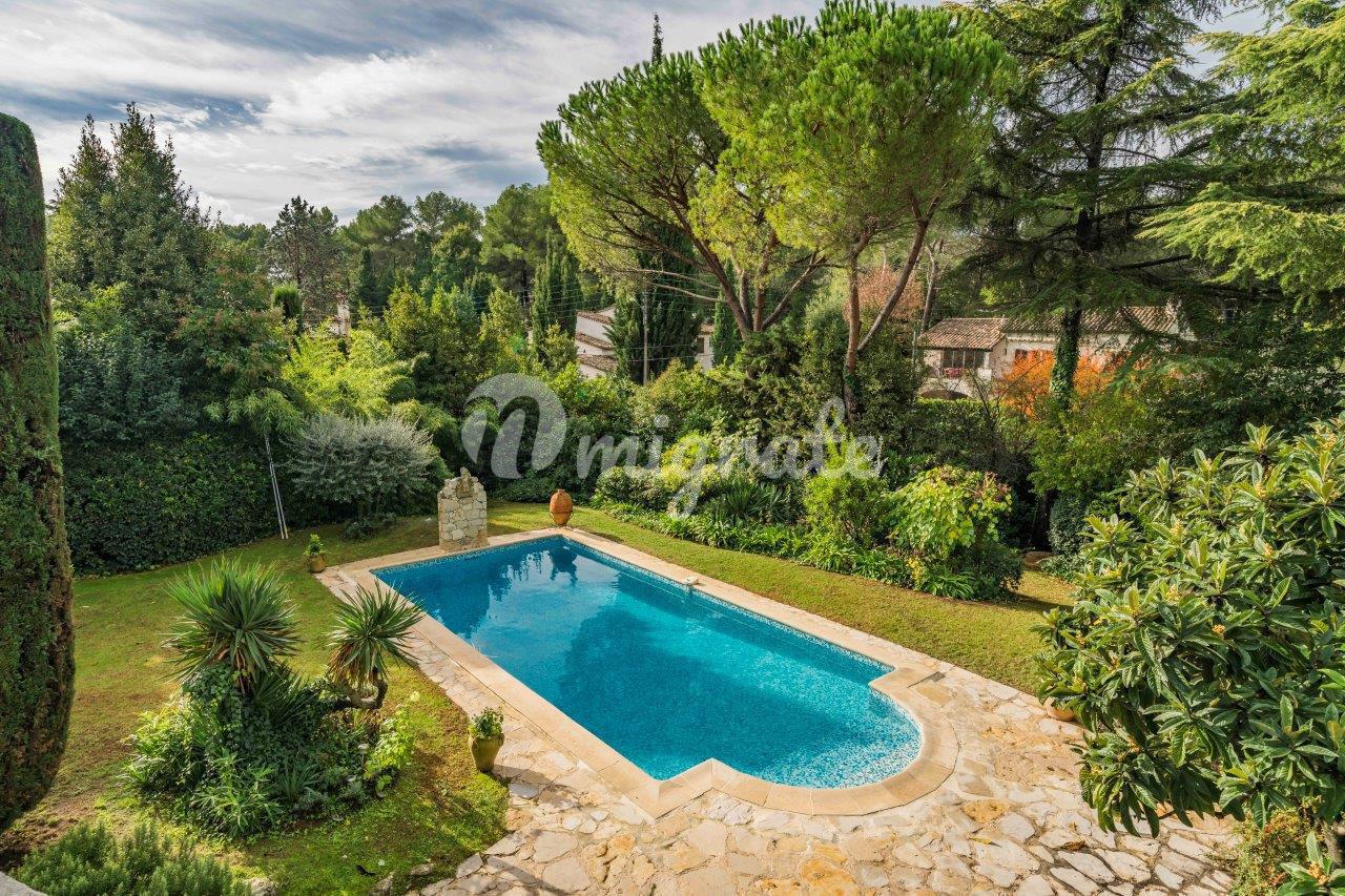 Вилла расположена в охраняемом жилом районе в городе Мужен. Вилла включает гостиную с камином, полностью оснащенную кухню, 4 спальни и 3 ванные комнаты. На цокольном этаже расположена прачечная и винный погреб. В ландшафтном саду находится бассейн, зона барбекю. Вилла также включает гараж на два автомобиля.