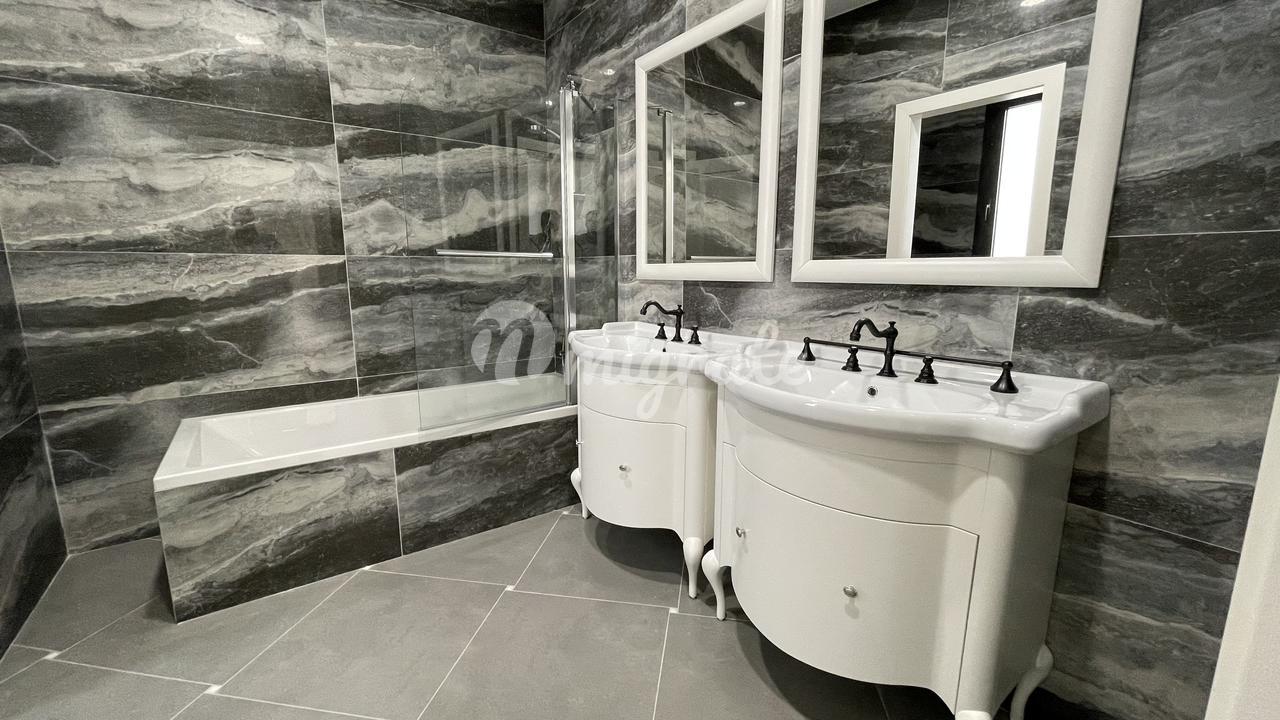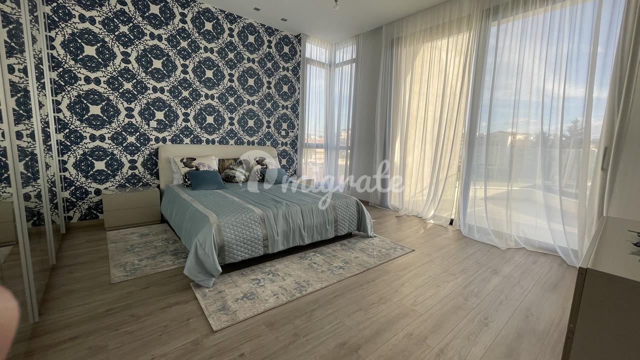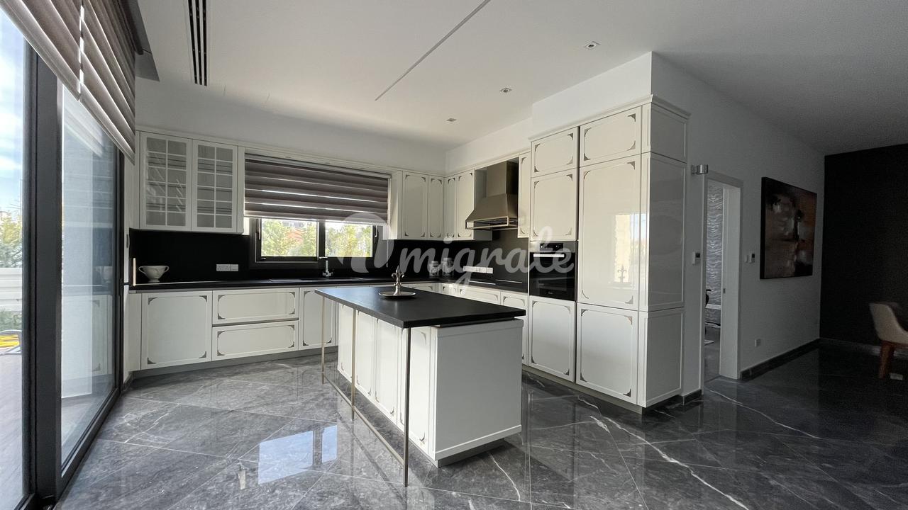 Вилла площадью около 600 кв. м располагается на 3 уровнях, соединенных лифтом. На первом уровне расположена просторная гостиная с роялем, обеденная зона с кухней, кабинет и красивый коридор с панорамными окнами. Второй уровень включает 4 большие спальни с гардеробными и собственными ванными комнатами, главная спальня имеет выход на лоджию. На крыше находится большая терраса с зоной для отдыха и садом. На цокольном этаже расположен гараж на 3 автомобиля, спальня с санузлом для прислуги, постирочная комната и технические помещения. На территории виллы расположен переливной бассейн и живописные ландшафтные сады.