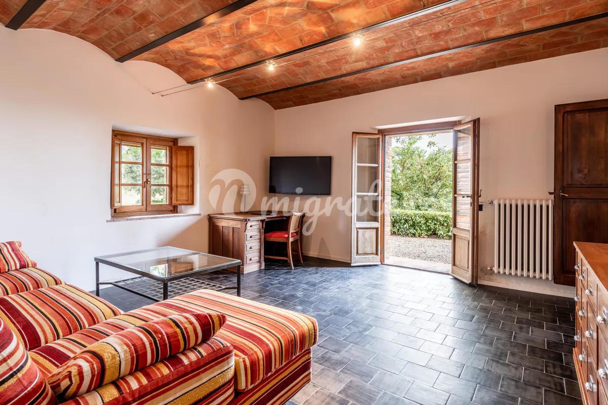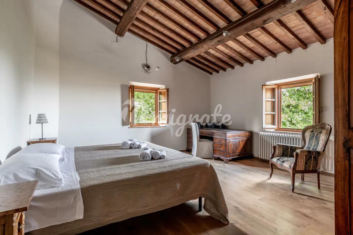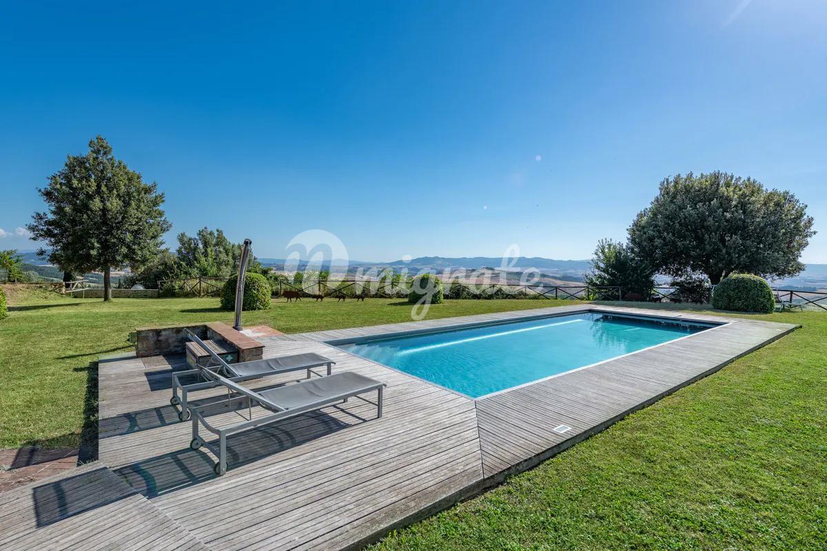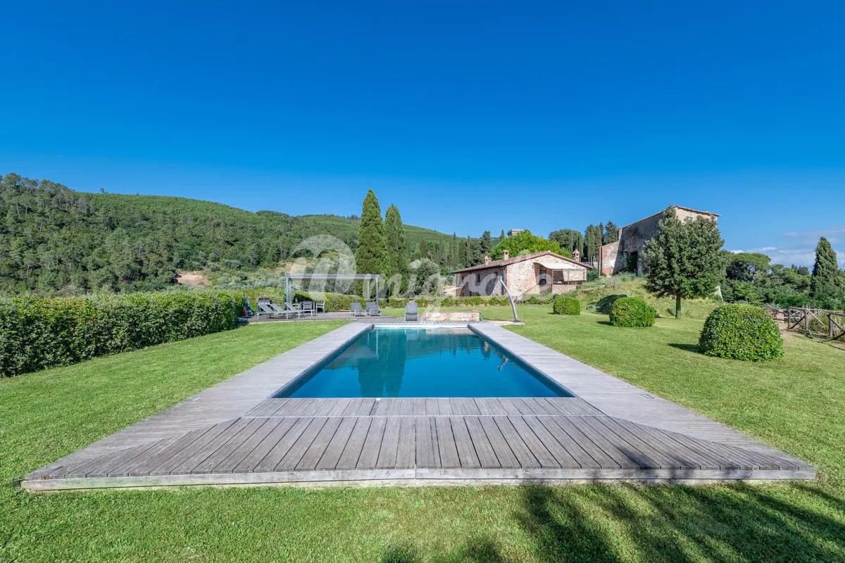 Недавно отремонтированная вилла, расположенная в тосканской коммуне Монтайоне, находится на участке площадью 13 га, основная часть этой площади используется под возделываемую землю с оливковыми деревьями. На участке расположена большая вилла площадью около 400 кв. м, башня площадью около 60 кв. м, которая нуждается в ремонте, и прекрасный бассейн 11,5х4,5 м.