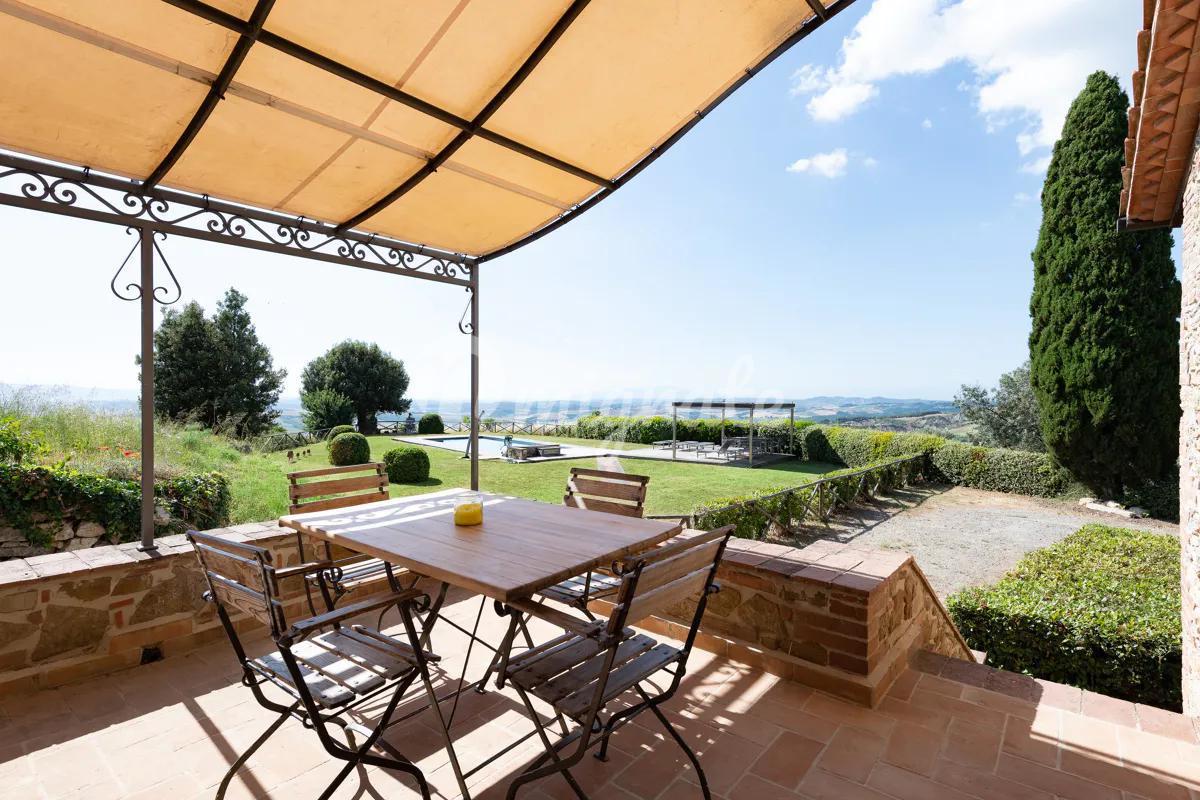 На просторной естественной террасе расположен бассейн, откуда открывается захватывающий вид на долину и холмы. Несмотря на свое уединенное расположение, вилла находится всего в 1 км от деревеньки со всей необходимой инфраструктурой.