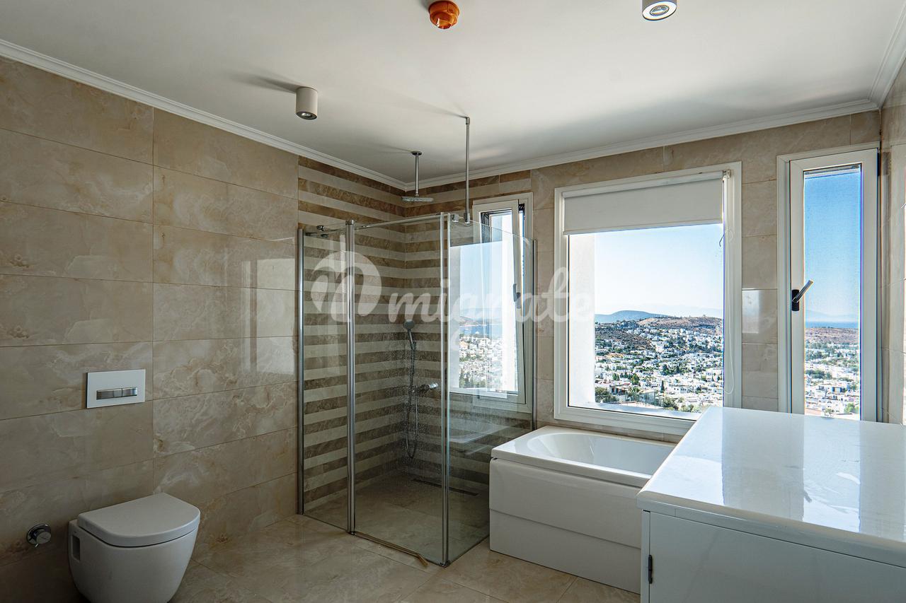 Вилла представляет собой трехэтажную виллу в центре города с видом на город и море. Она расположена в безопасном и благоустроенном месте. На участке есть общий бассейн с видом на море, услуги охраны и садоводства. В шаговой доступности магазины, банки, рынки и школы. Можно приятно провести время в саду и на балконе дома, построенного в стиле оригинальной архитектуры Бодрума. Трехэтажная частная вилла с садом 330 кв.м. - 5 спален, 1 гостиная, 4 ванные комнаты, 1 основная кухня, 1 мини-кухня, пол с подогревом, в большой спальне ванная с джакузи, гардеробная, керамическое напольное покрытие, балкон, техническое помещение. Центр Бодрума и пляж - 3 км, аэропорт Бодрума 39 км, Ялыкавак Марина 16 км.