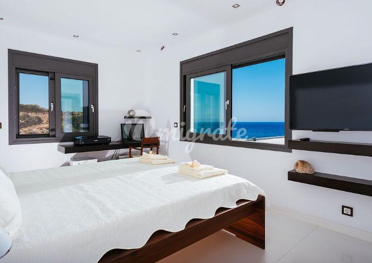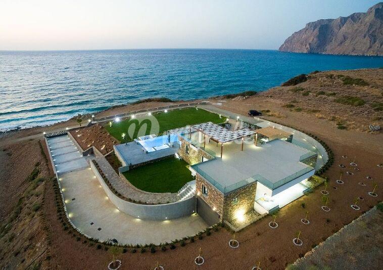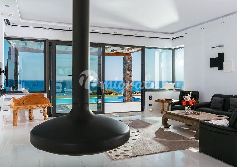 Двухуровневая вилла площадью 340 кв. м расположена на первой линии побережья небольшого острова Мохлос, который административно относится к Криту. Вилла включает шесть спальных и пять ванных комнат, гостиную с камином и оборудованную кухню. На плоской крыше имеется дополнительная терраса, где можно наслаждаться романтическим ужином под звездным небом.